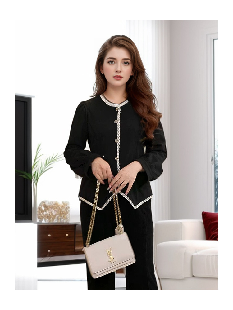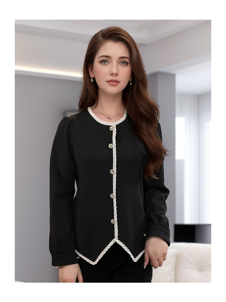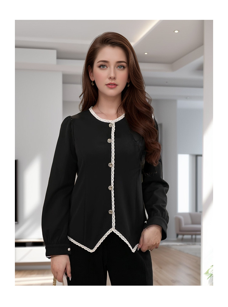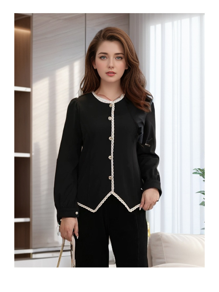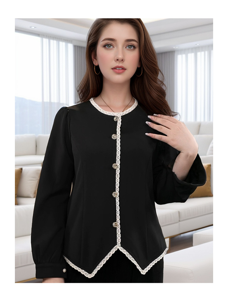 8/26奢姿大码女装2024秋冬纽扣装饰简约T恤胖妹妹减龄花边时尚上衣9944226773