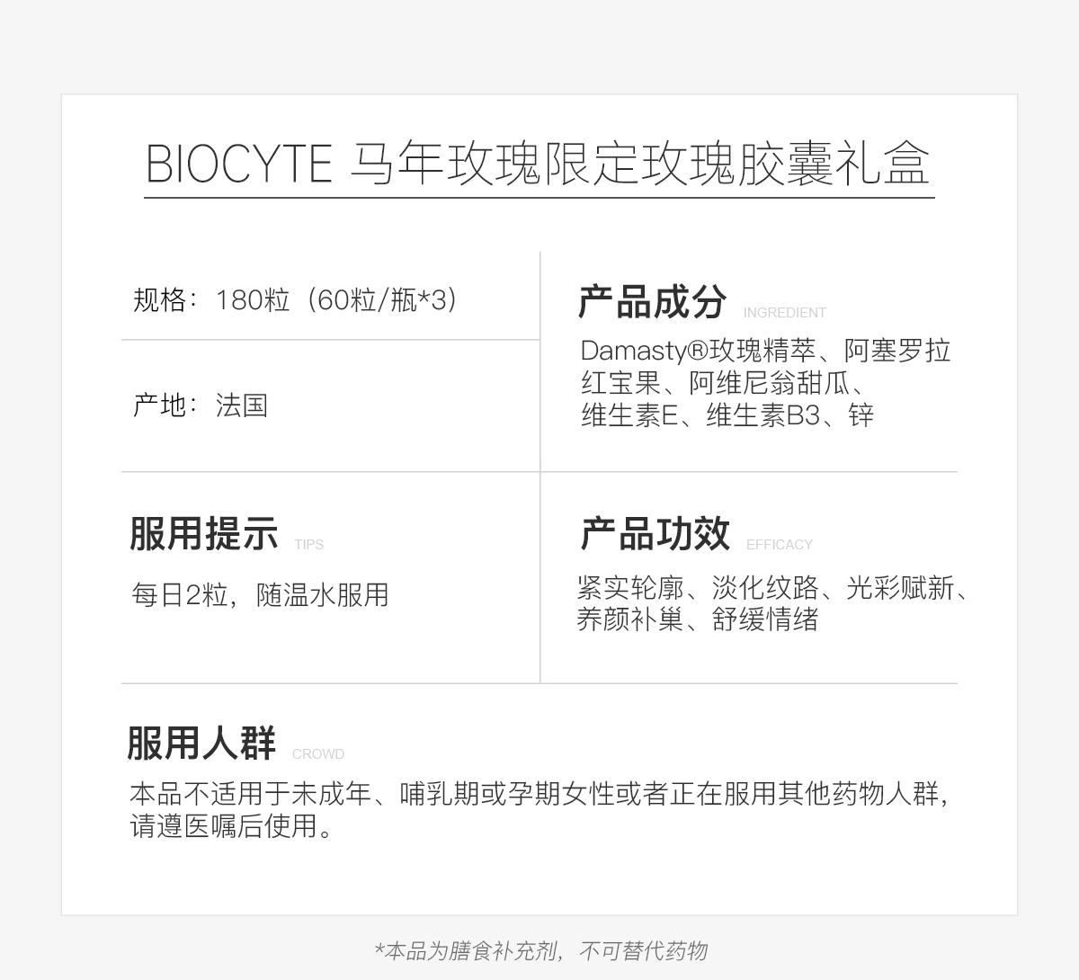 保税直发 Biocyte x Espace Grange Galerie 马年限定 复兴玫瑰胶囊礼盒 BIOCYTE 碧维斯 复兴玫瑰胶囊 60粒/瓶x3