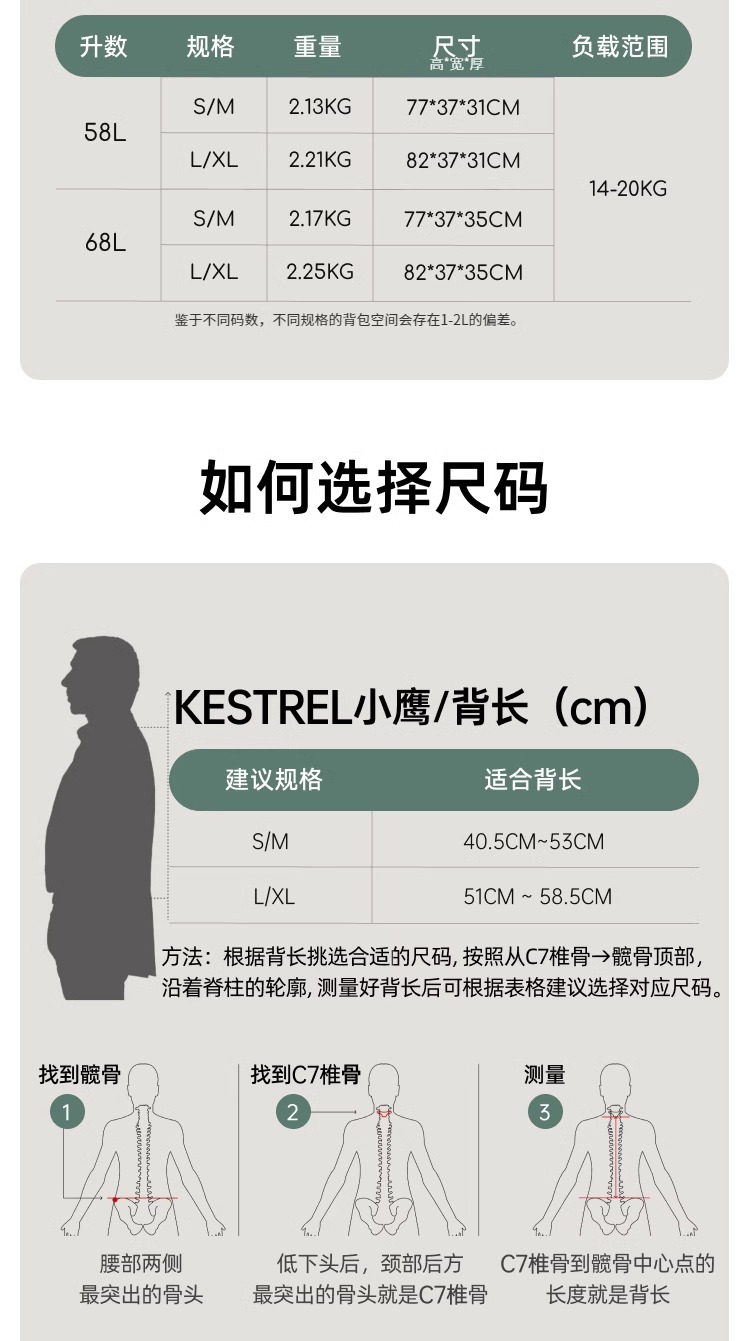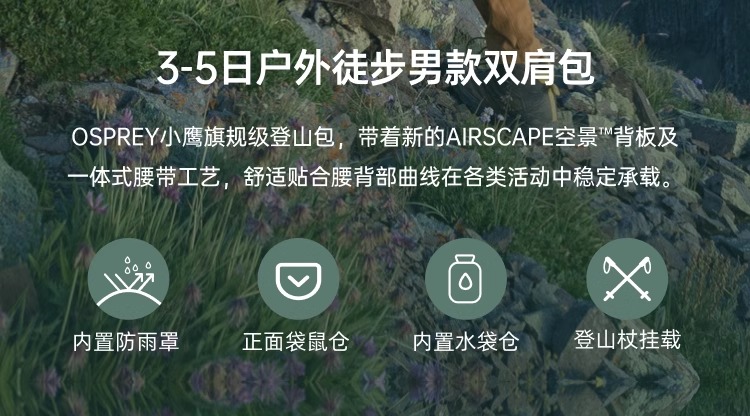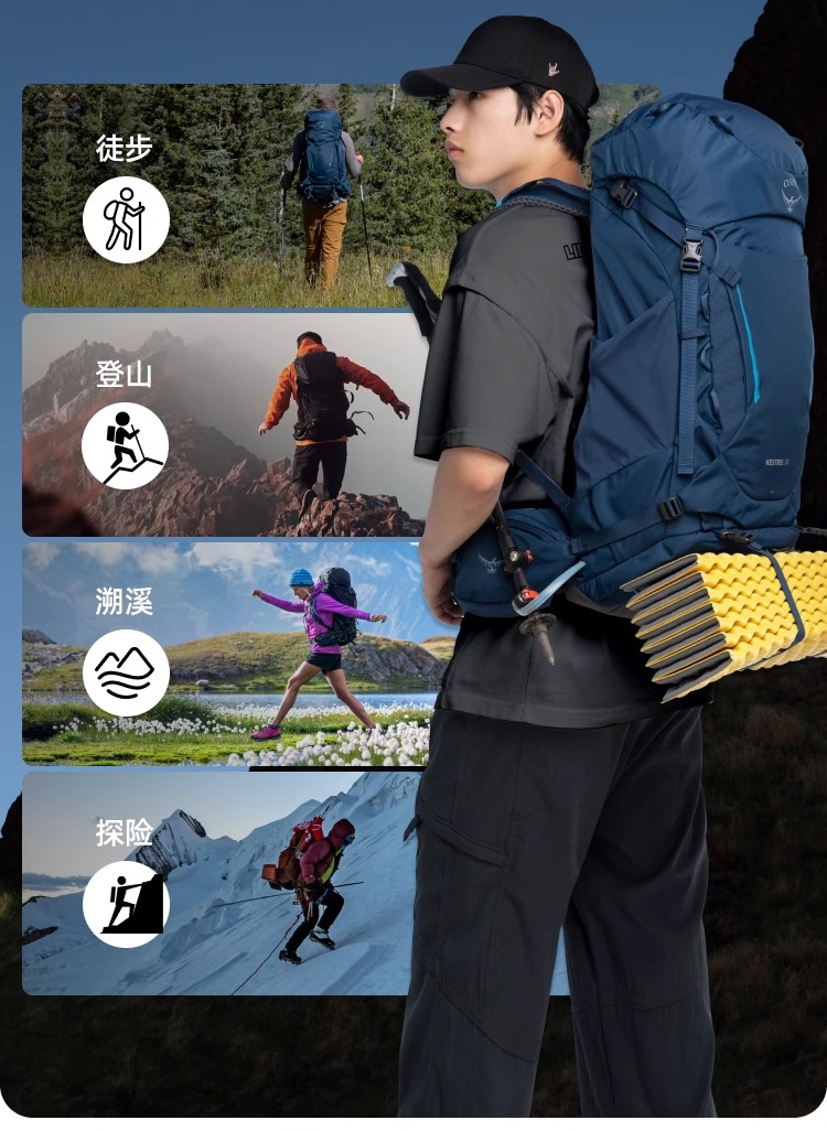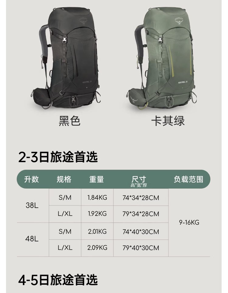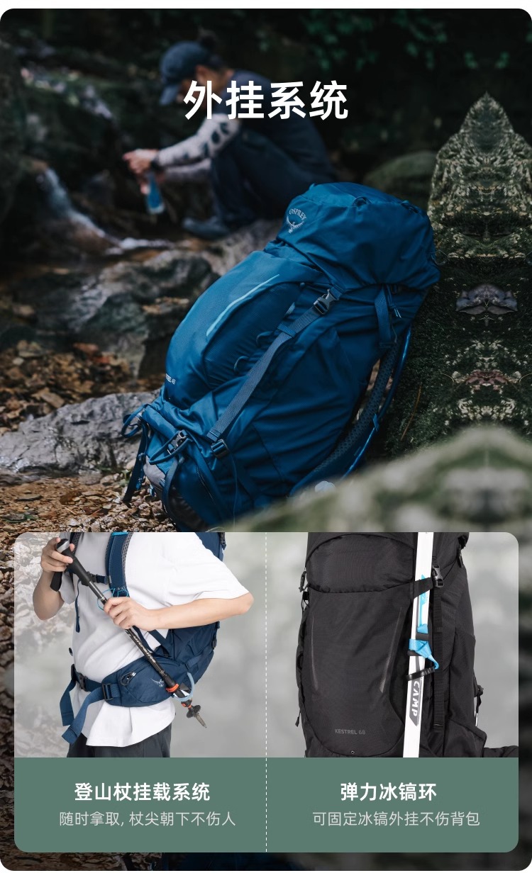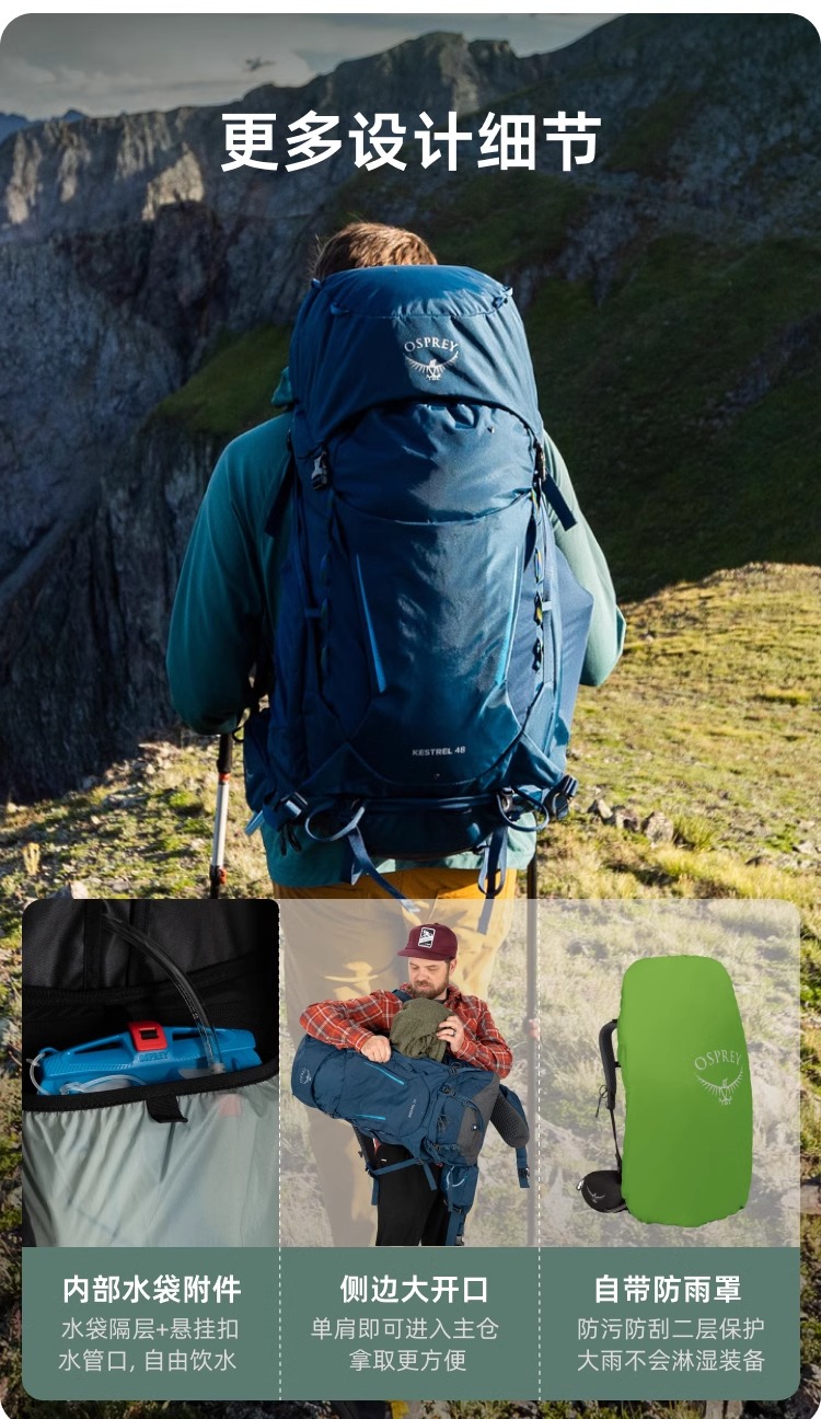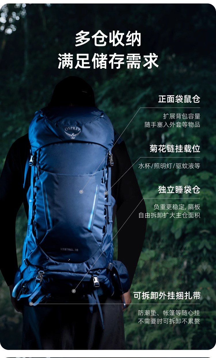 OSPREY KESTREL小鹰新款户外双肩背包重装登山徒步男轻大容量多仓