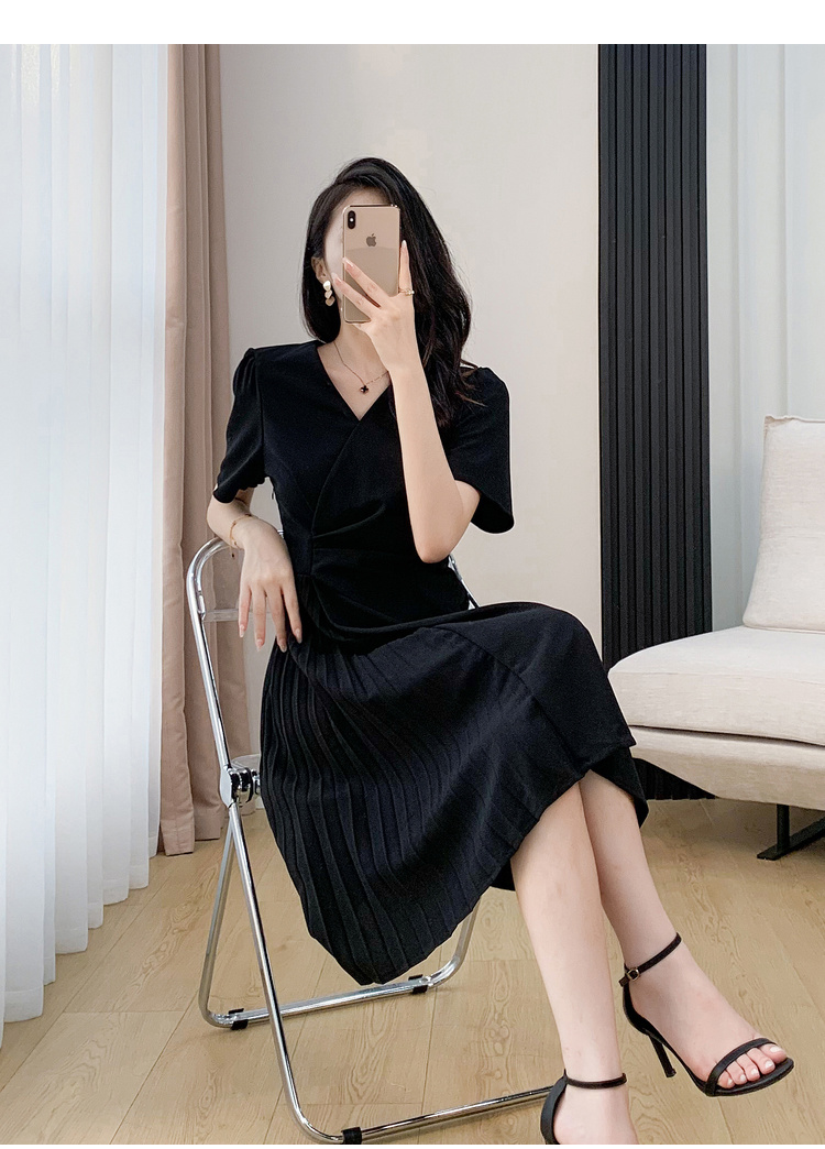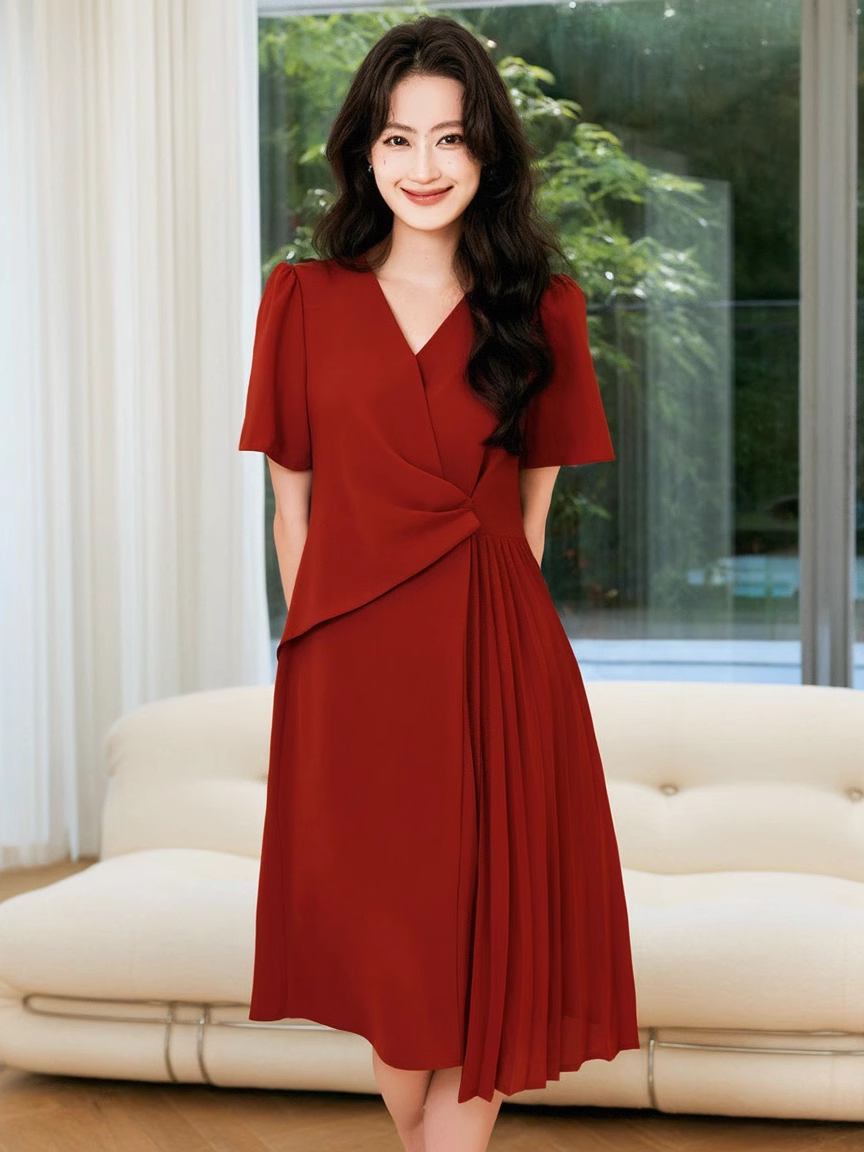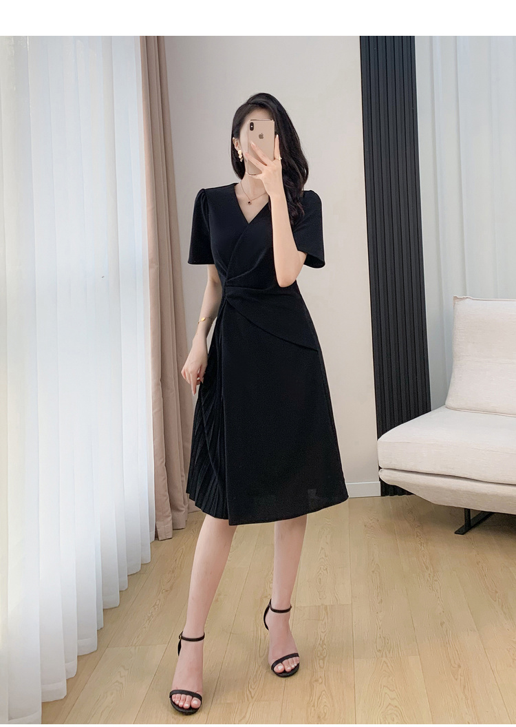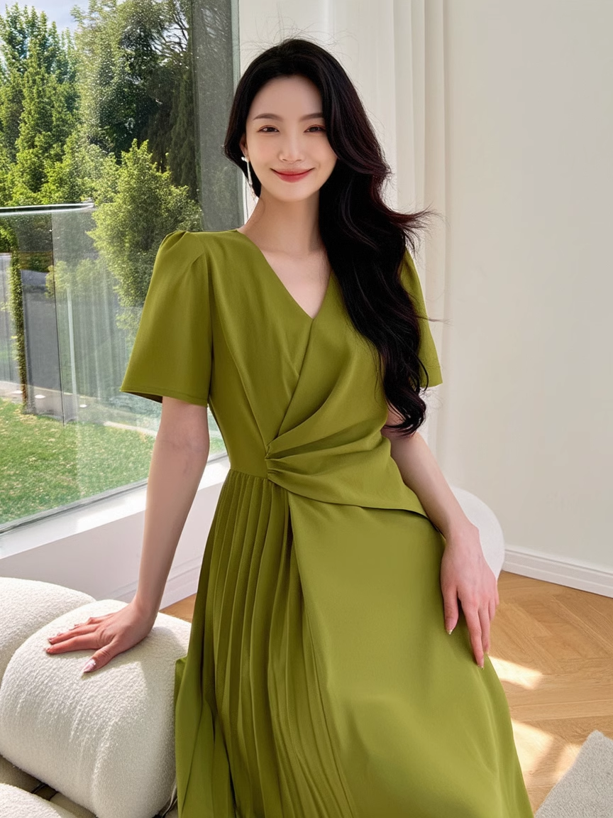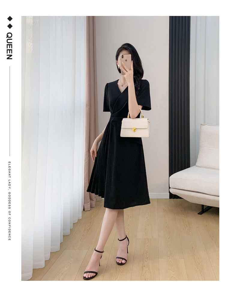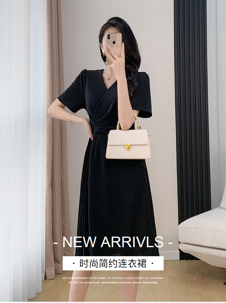 奢姿2025年夏季新款大码女装气质V领简约连衣裙百搭休闲裙子9932825559