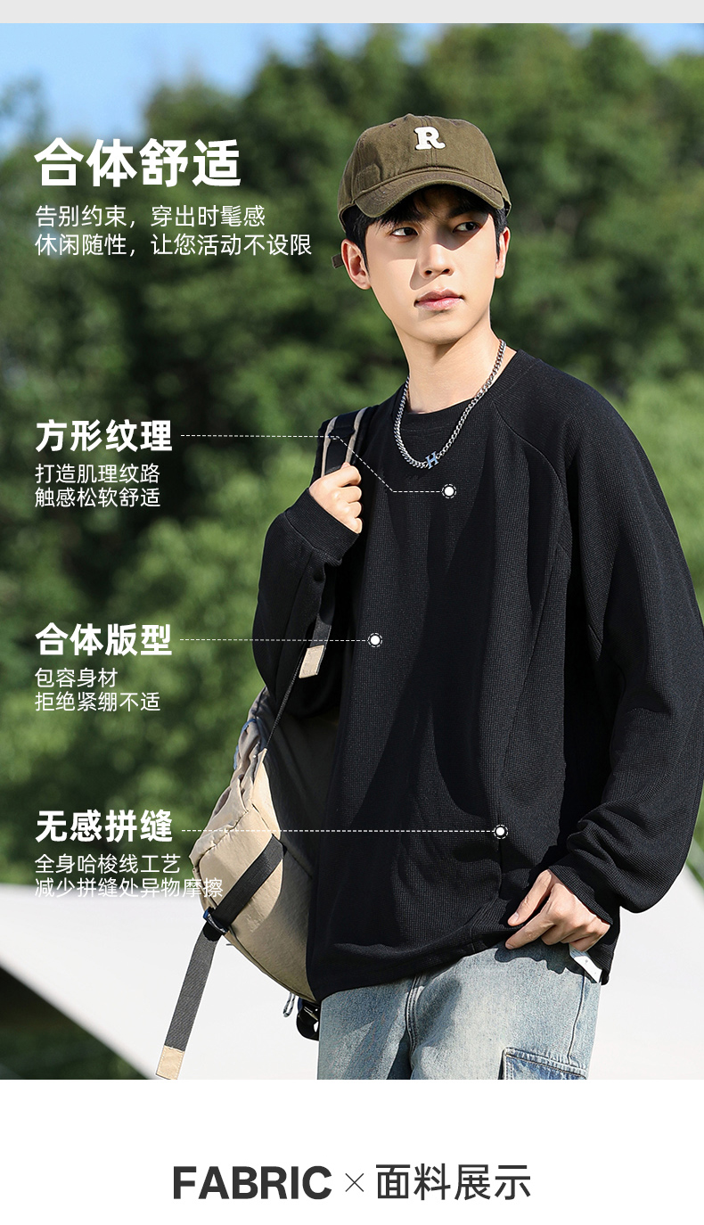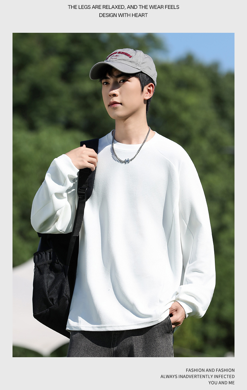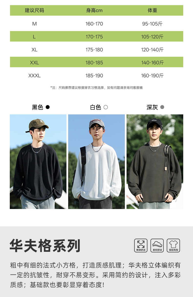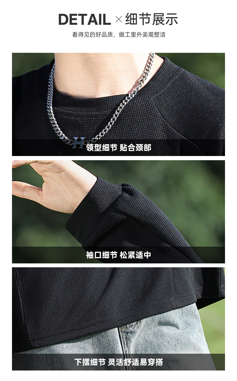 回力2025秋季新款华夫格长袖T恤男百搭吸湿速干运动内搭打底T恤衫