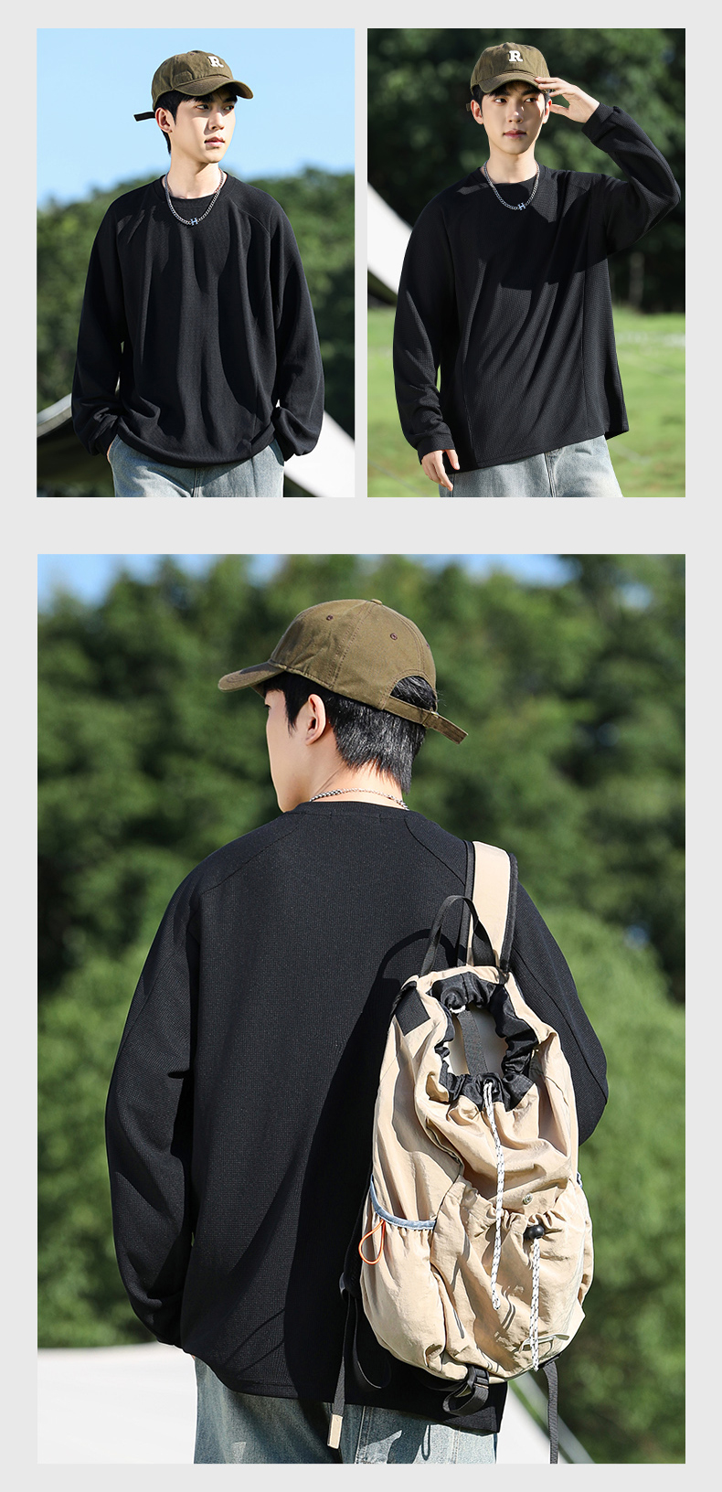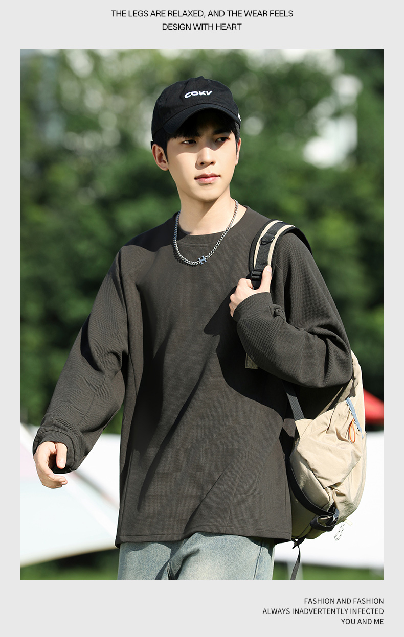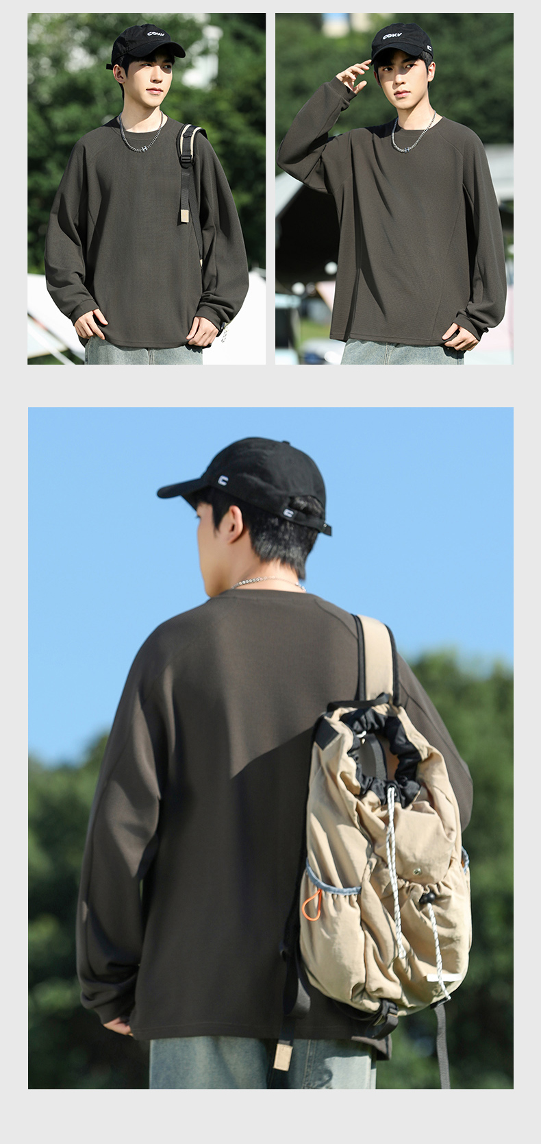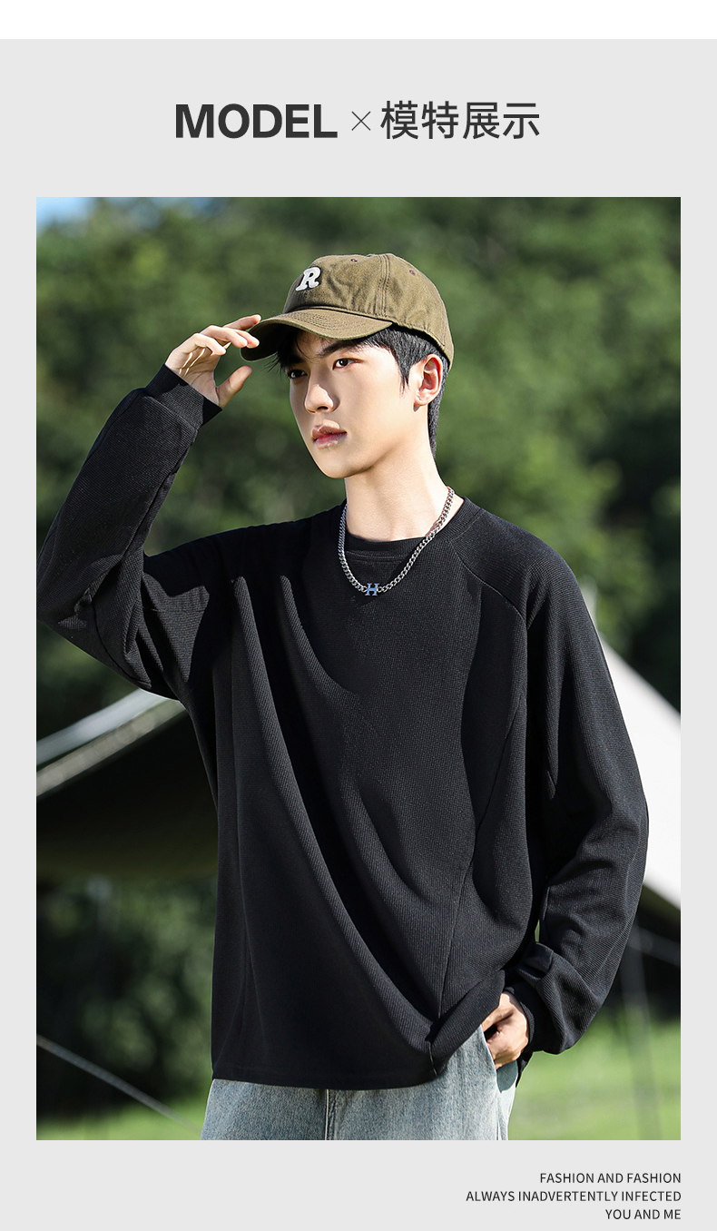 回力2025秋季新款华夫格长袖T恤男百搭吸湿速干运动内搭打底T恤衫