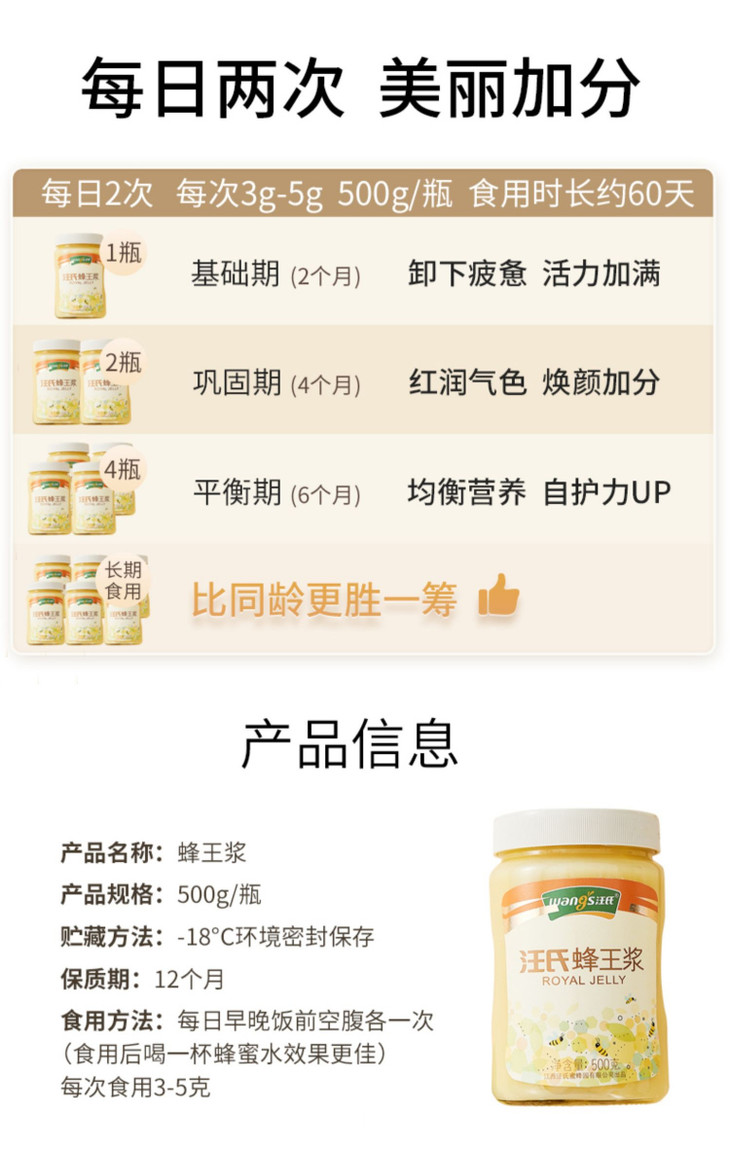 【汪氏】新鲜蜂王浆500g*5瓶装
