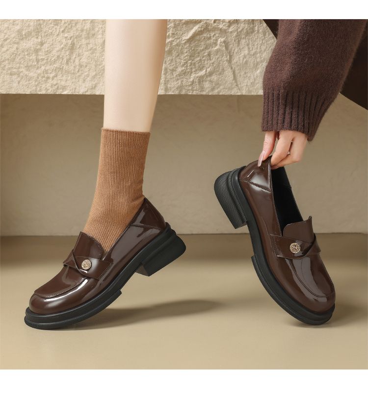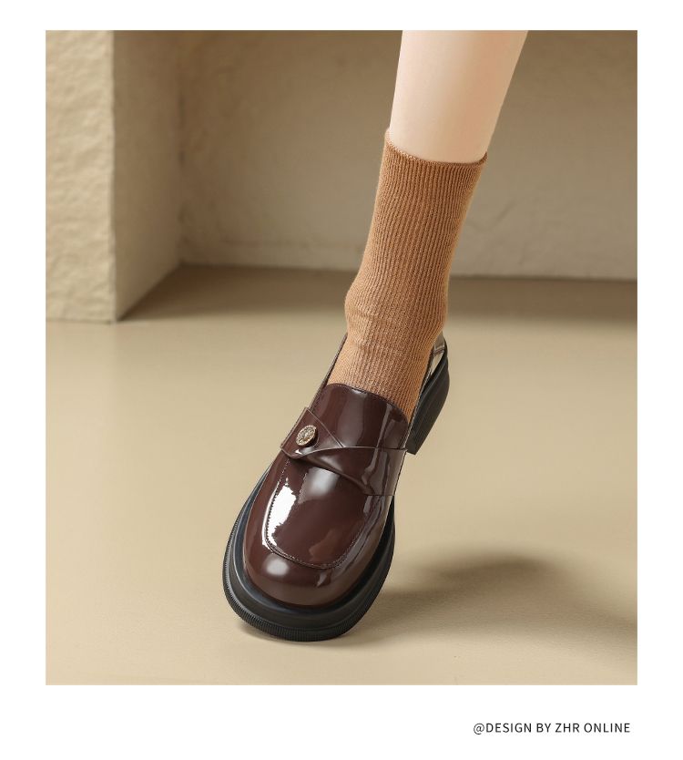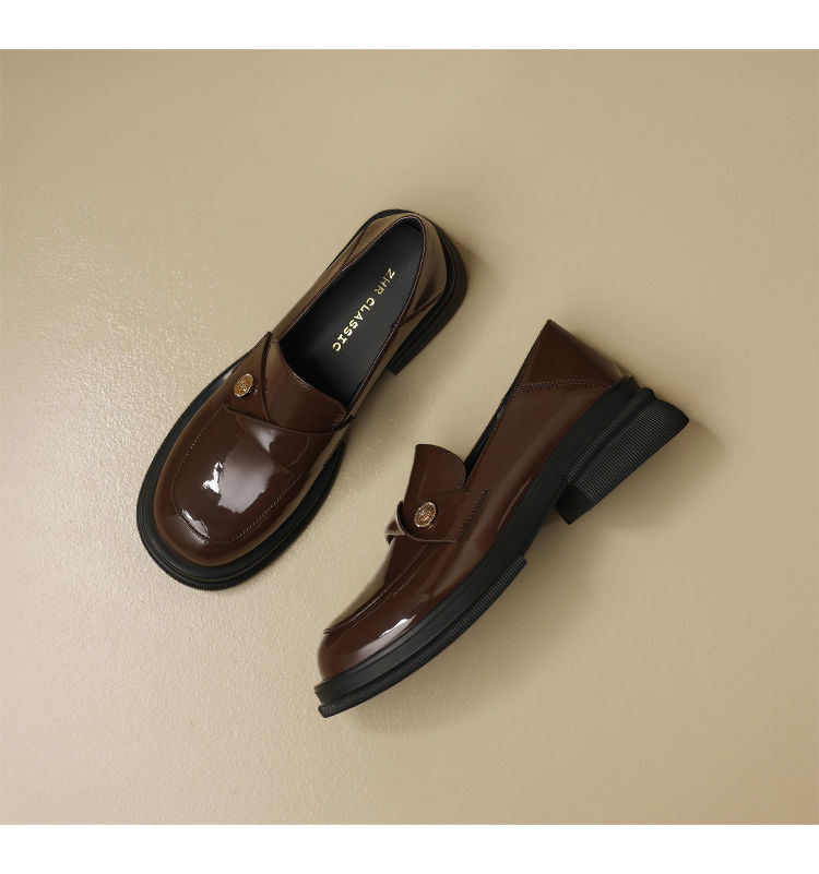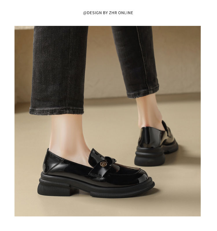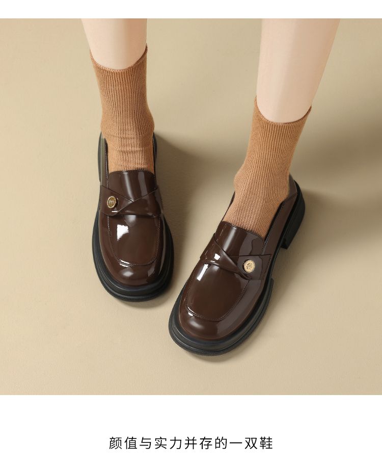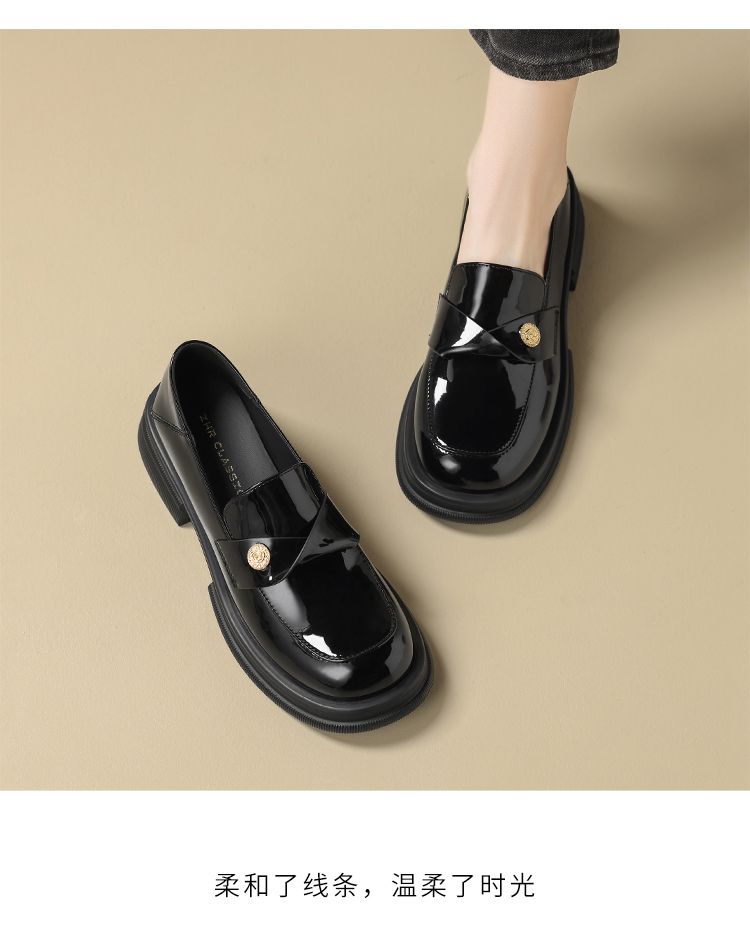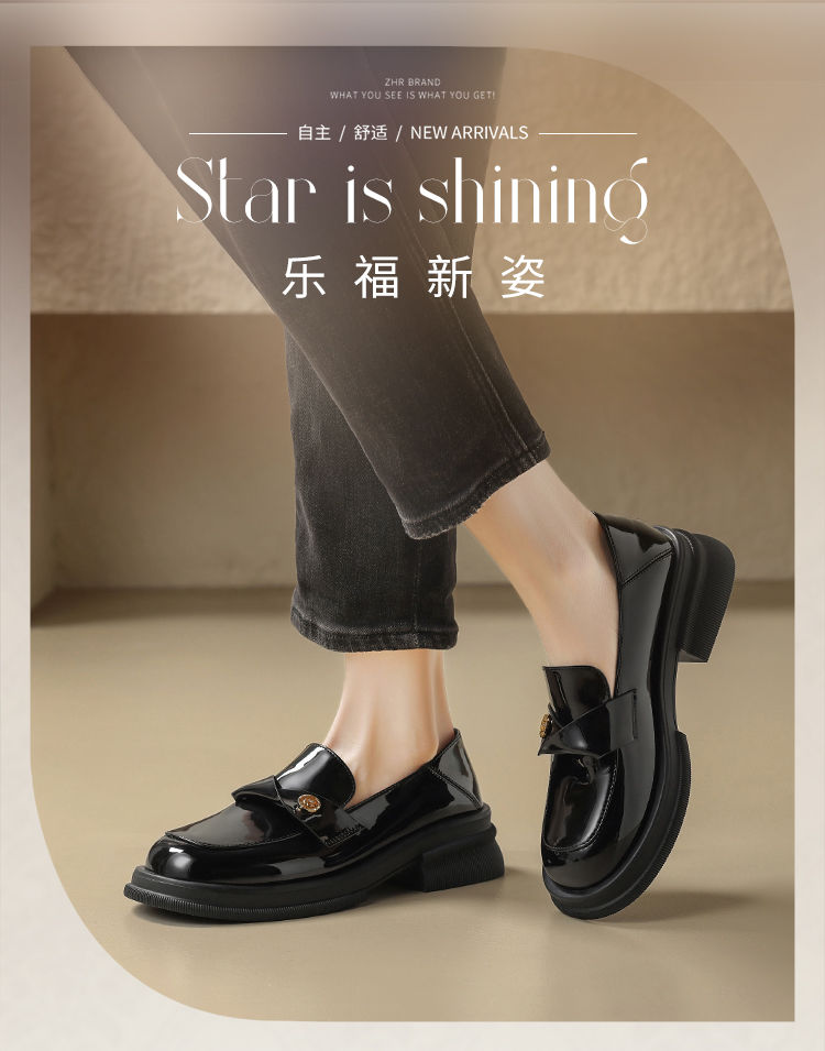 ZHR美拉德风乐福鞋2024新款时尚小金币一脚蹬单鞋ins山茶花小皮鞋