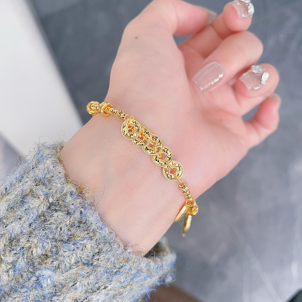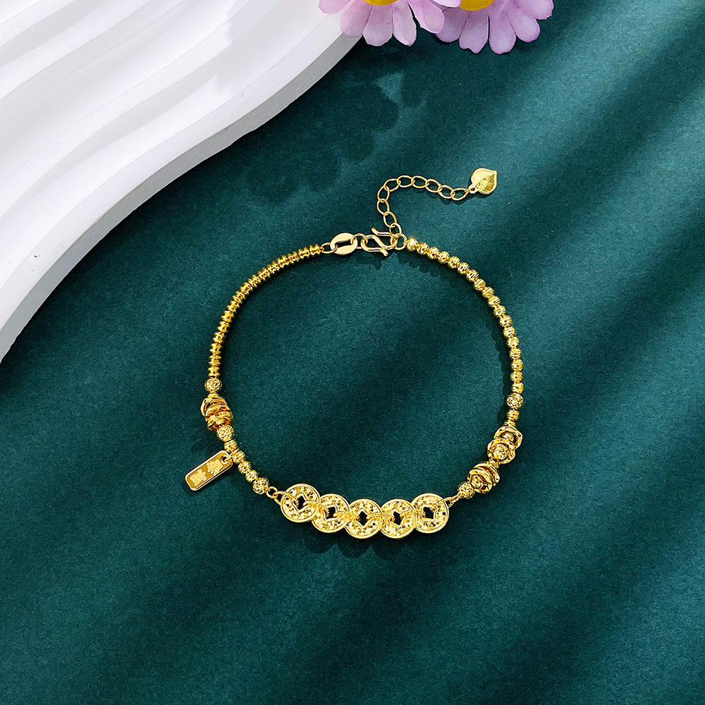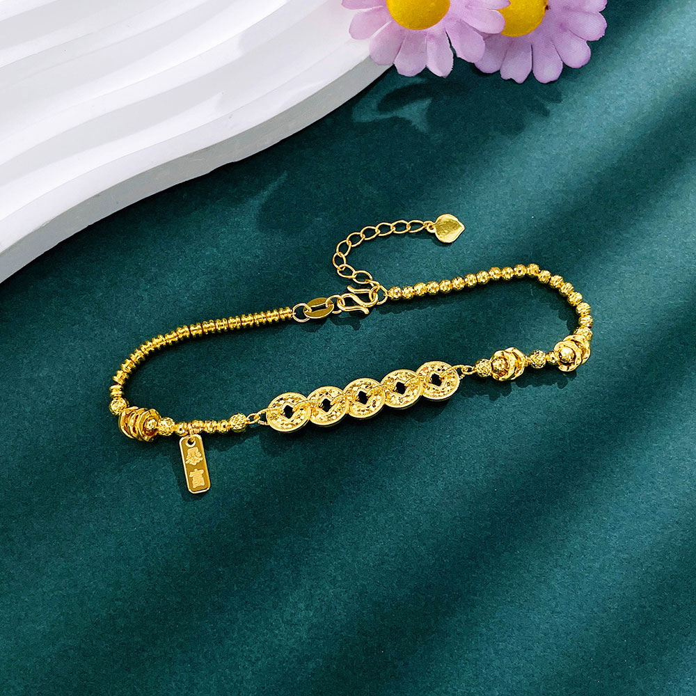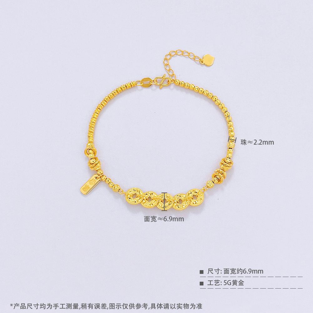 【限时克减128元】足金999#碎碎冰 #招财进宝 5G黄金碎闪金招财铜钱造型金币手链光芒闪耀暴富方牌吊饰金币跑环AB调节手链(AE5GSL00189)预售产品下单后不退款不退货不换货不补差价