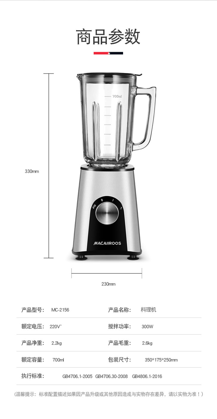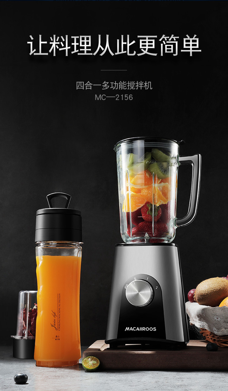 【迈卡罗】迈卡罗多功能料理机迷你榨汁机干磨机四合一MC-2156