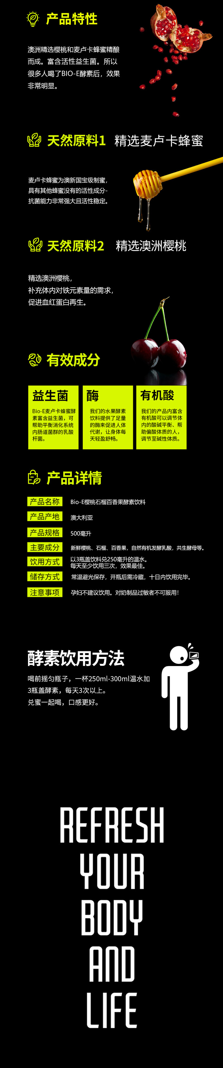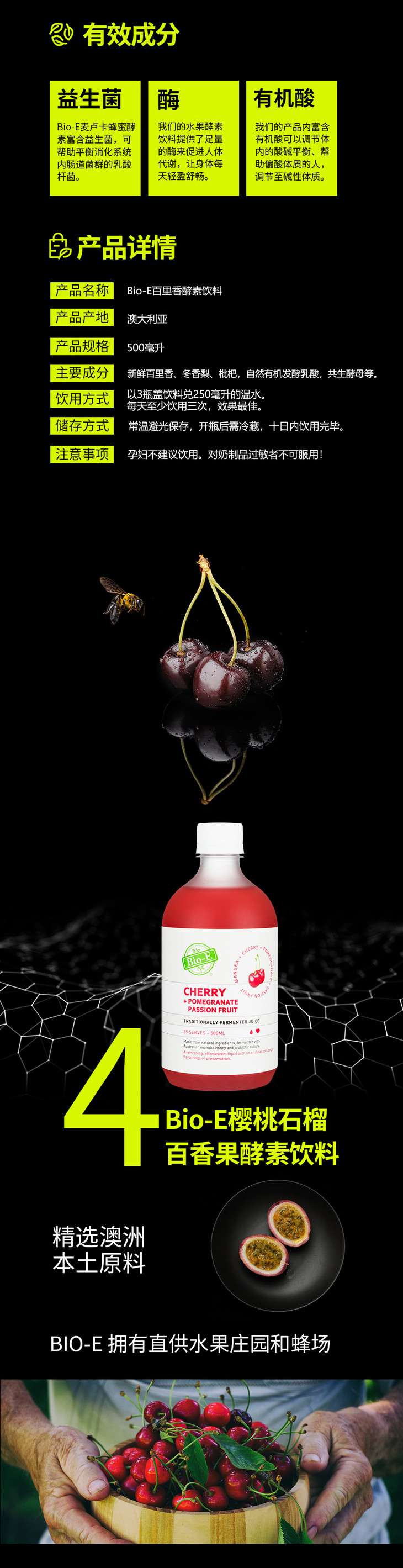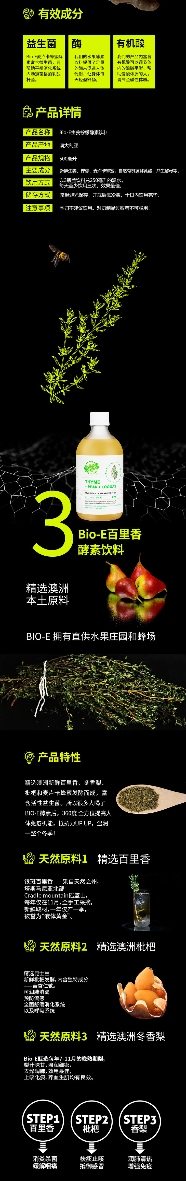 【bio-e】澳洲进口Bio-E柠檬百里香生姜樱桃酵素原液天然益生菌水果酵素水500ml