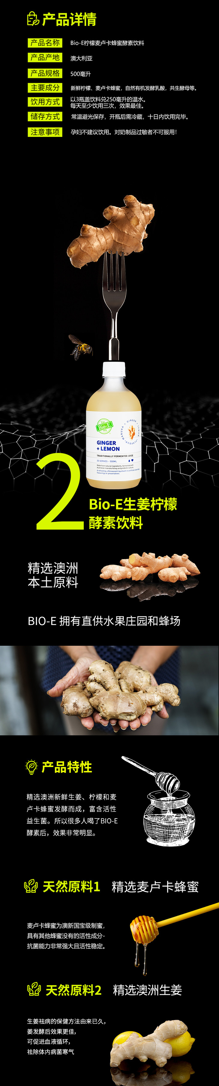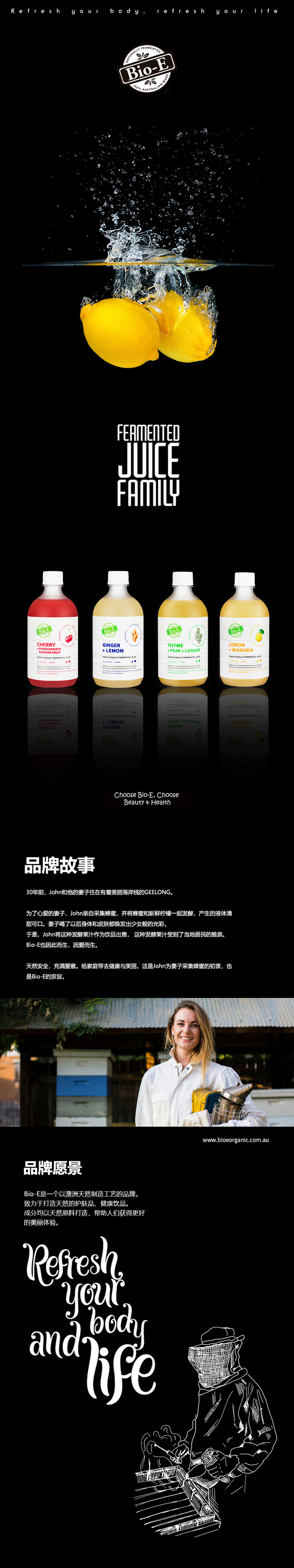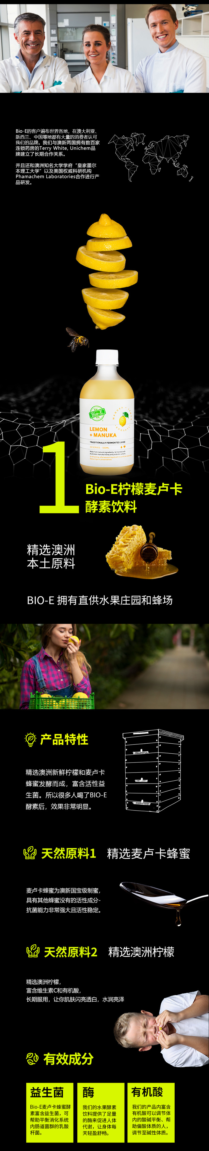 【bio-e】澳洲进口Bio-E柠檬百里香生姜樱桃酵素原液天然益生菌水果酵素水500ml