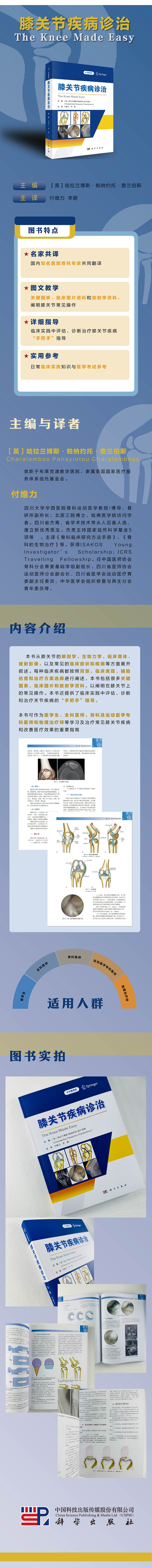 本书从膝关节的解剖学、生物力学、临床查体、放射影像,以及常见的临床症状和疾病等方面展开叙述。每种临床疾病都按照背景、临床表现、辅助检查和治疗方案选择进行阐述。本书包括很多关键图表、临床图片和放射学资料,以阐明在膝关节上的常见操作。本书还提供了临床实践中评估、诊断和治疗膝关节疾病的“手把手”指导。