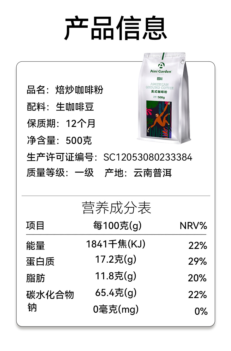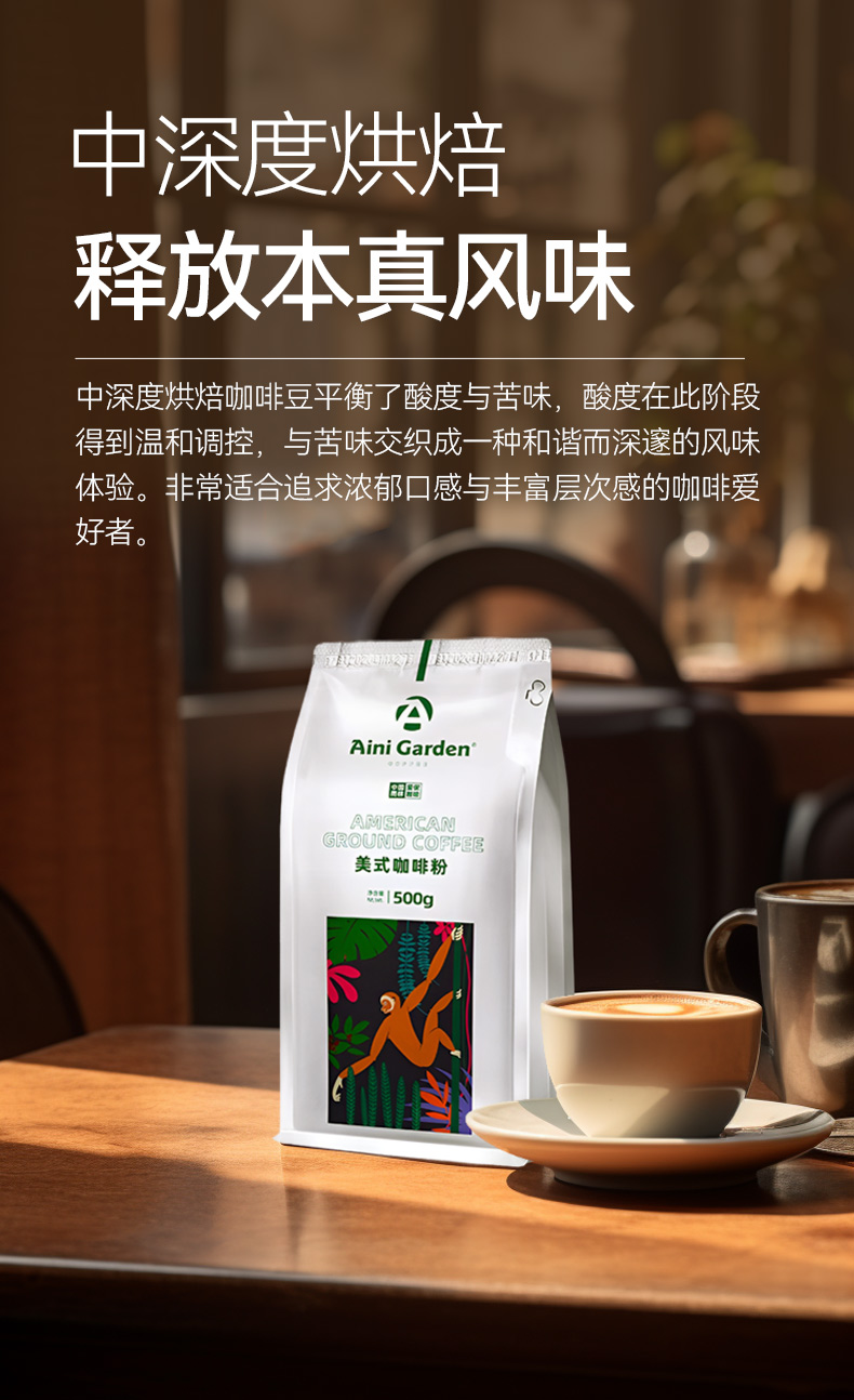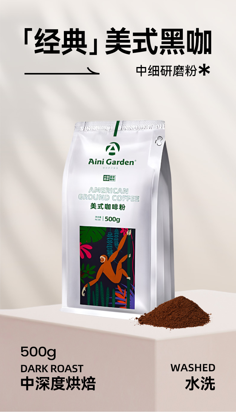 爱伲庄园 美式咖啡粉 中度烘焙 中细粉 云南小粒咖啡阿拉比卡 手冲粉非速溶 500g