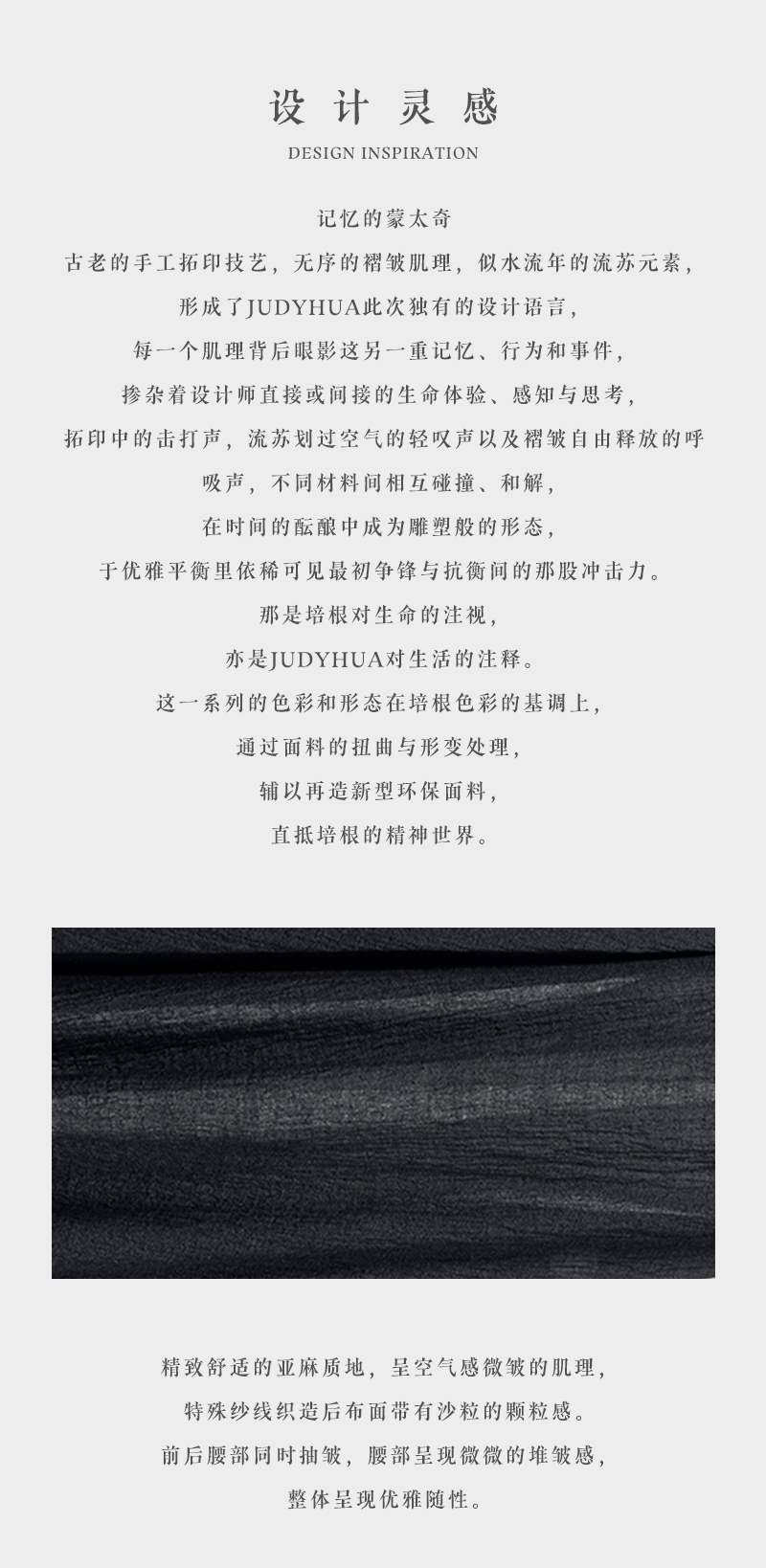 以极简建筑风格,诠释对生活美学之独特理解,JUDYHUA以作品触动您心。更多新款上架,请亲临JUDYHUA STUDIO试穿选购。预约电话:021-62663449,18201881913