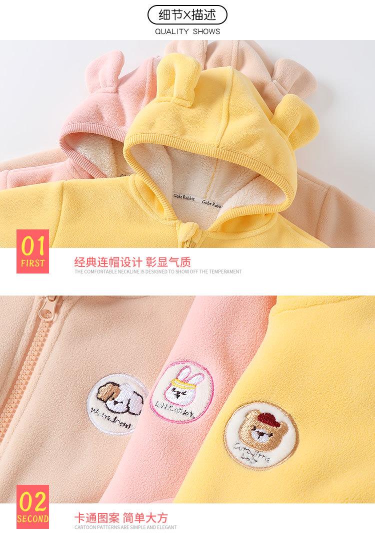 歌旗儿童加绒卫衣婴儿儿童连帽外套宝宝秋冬款保暖上衣加厚男女宝宝80-130