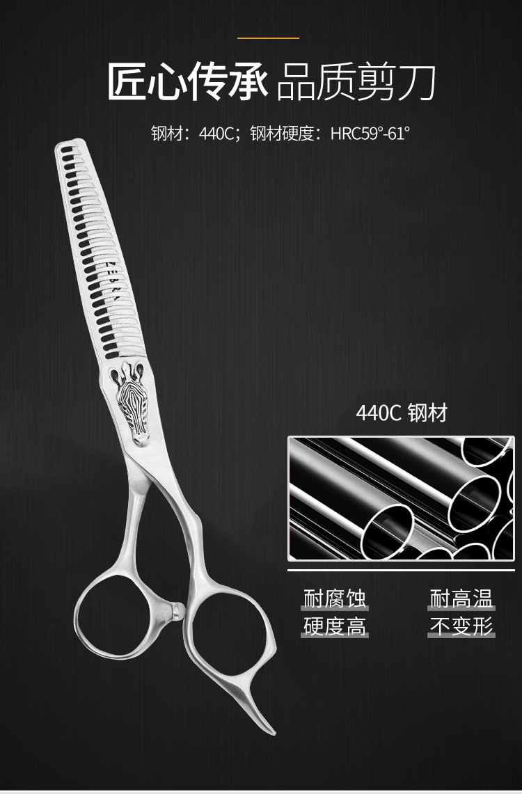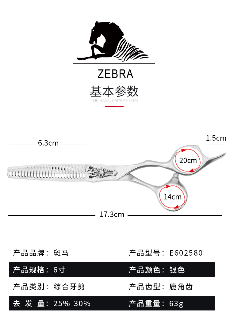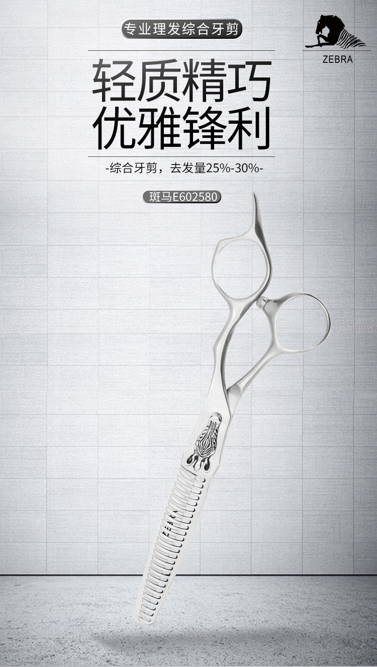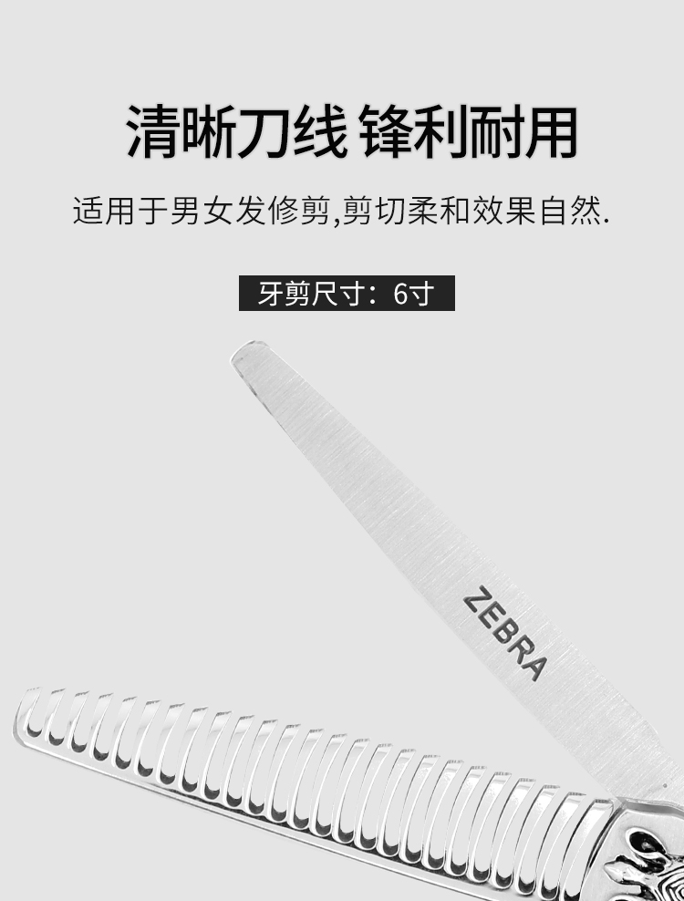 ZEBRA 斑马牙剪E602580 综合牙剪 6寸 去发量 25%-30%磨砂手柄鹿角齿设计适用于男女发修剪,剪切柔和效果自然