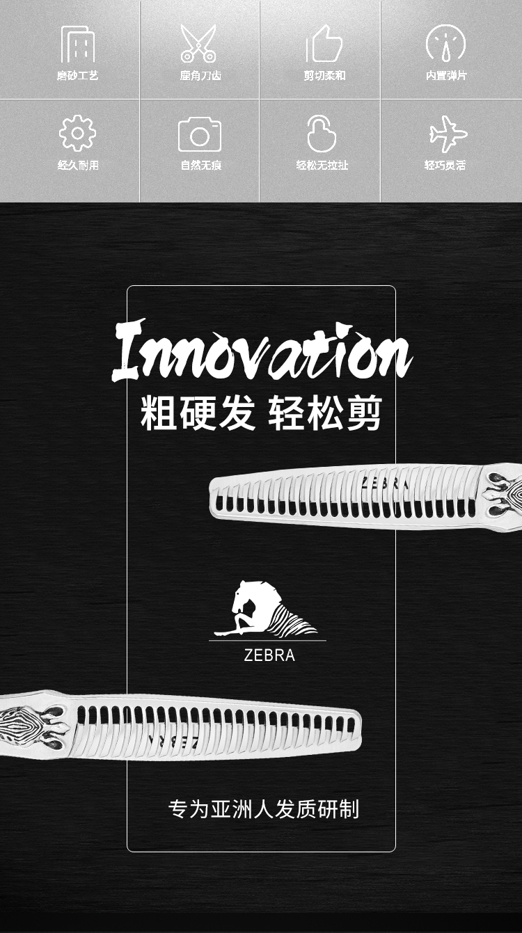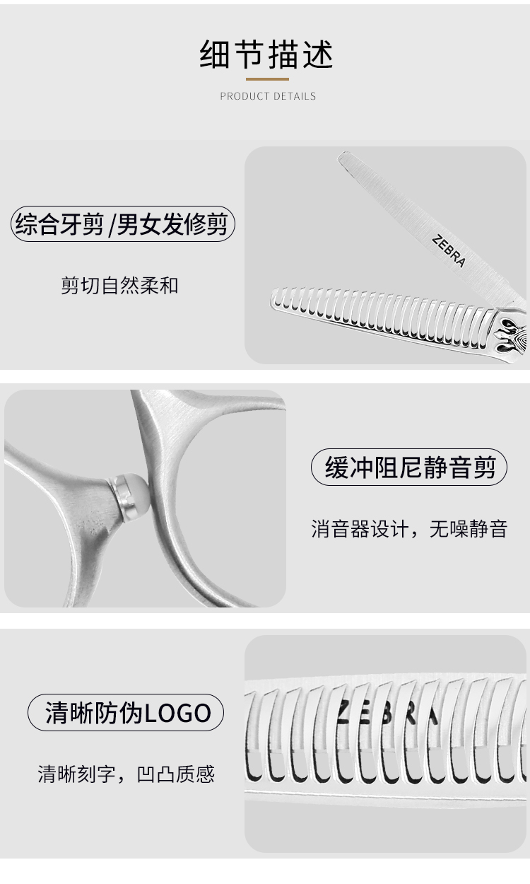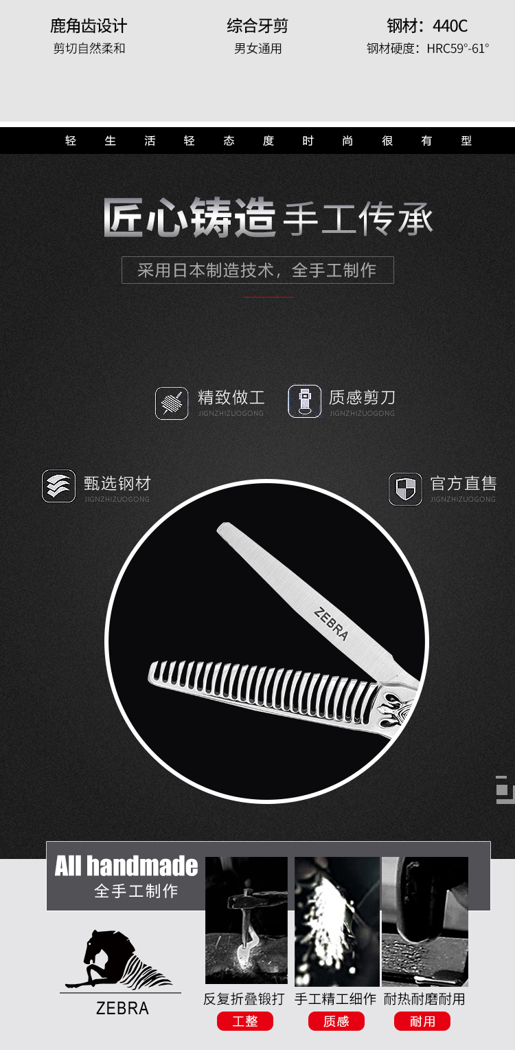 ZEBRA 斑马牙剪E602580 综合牙剪 6寸 去发量 25%-30%磨砂手柄鹿角齿设计适用于男女发修剪,剪切柔和效果自然