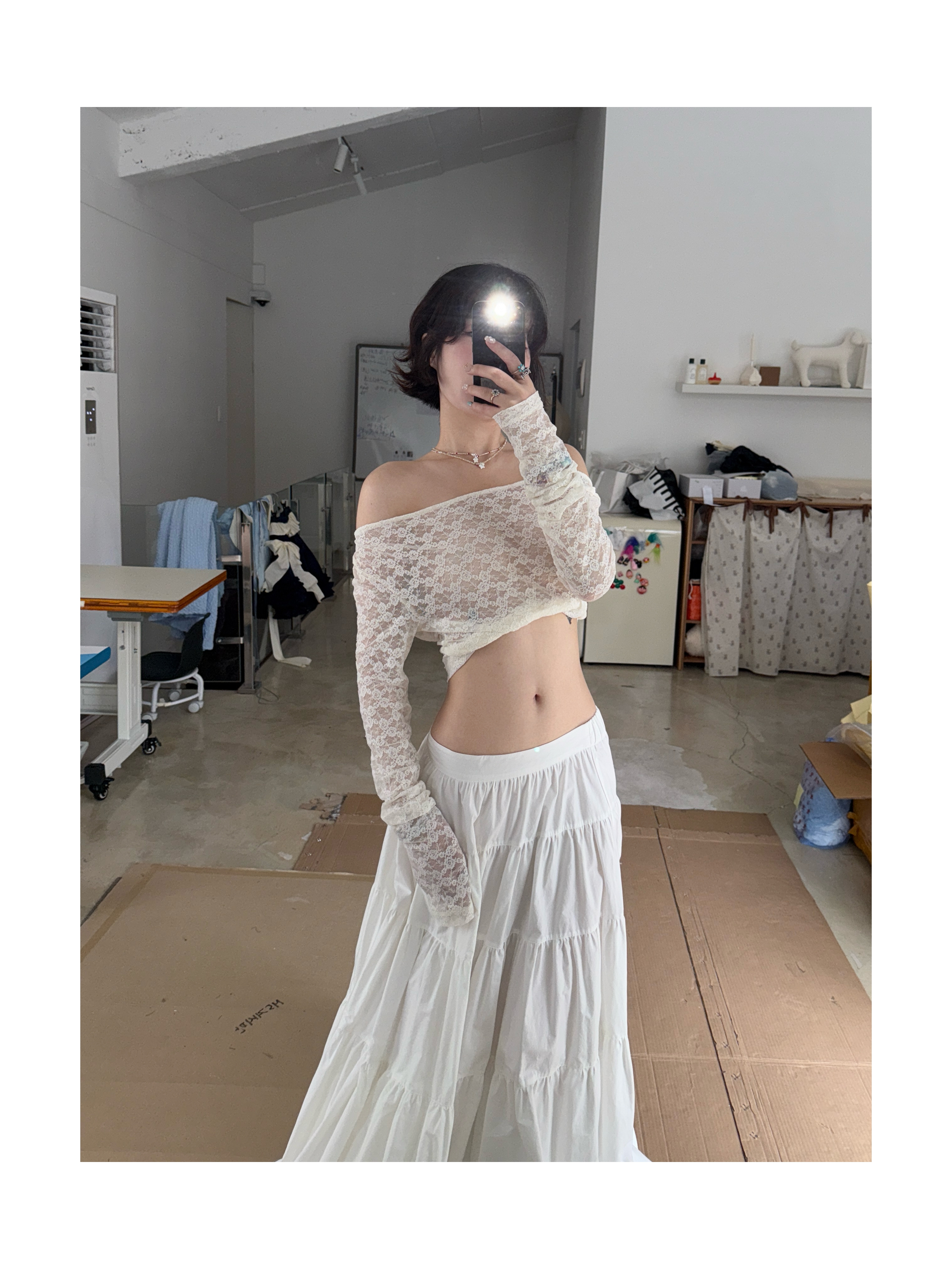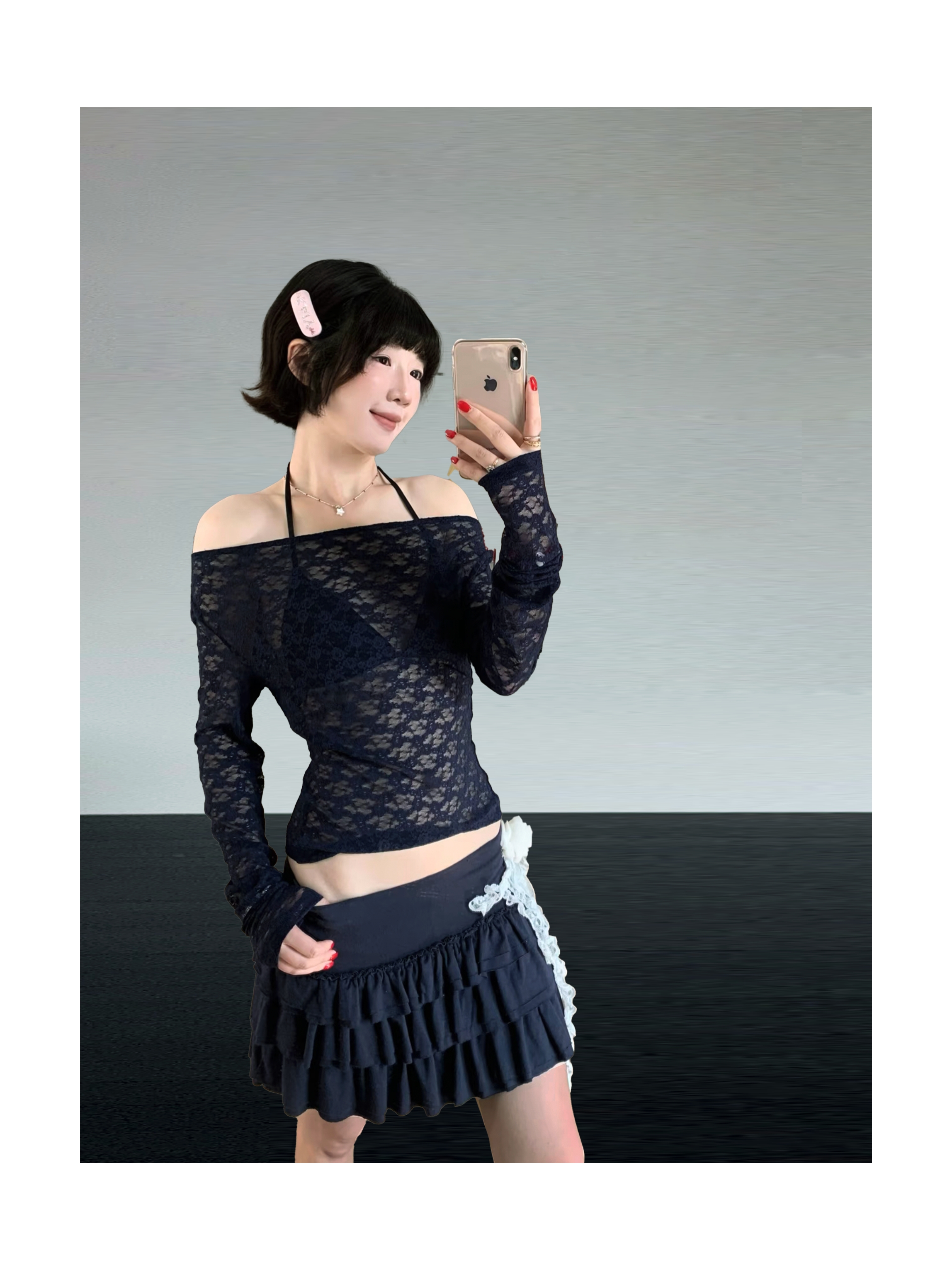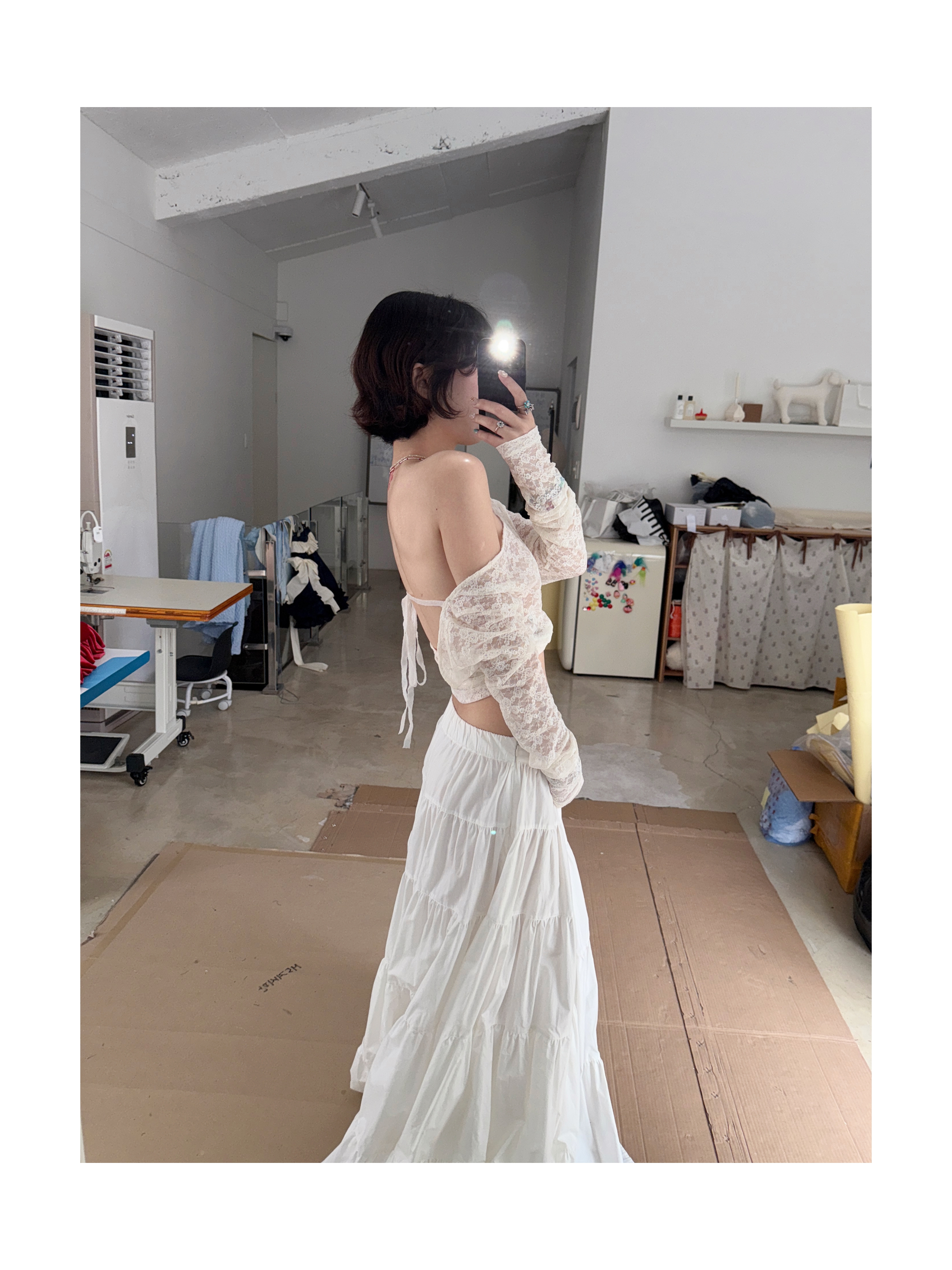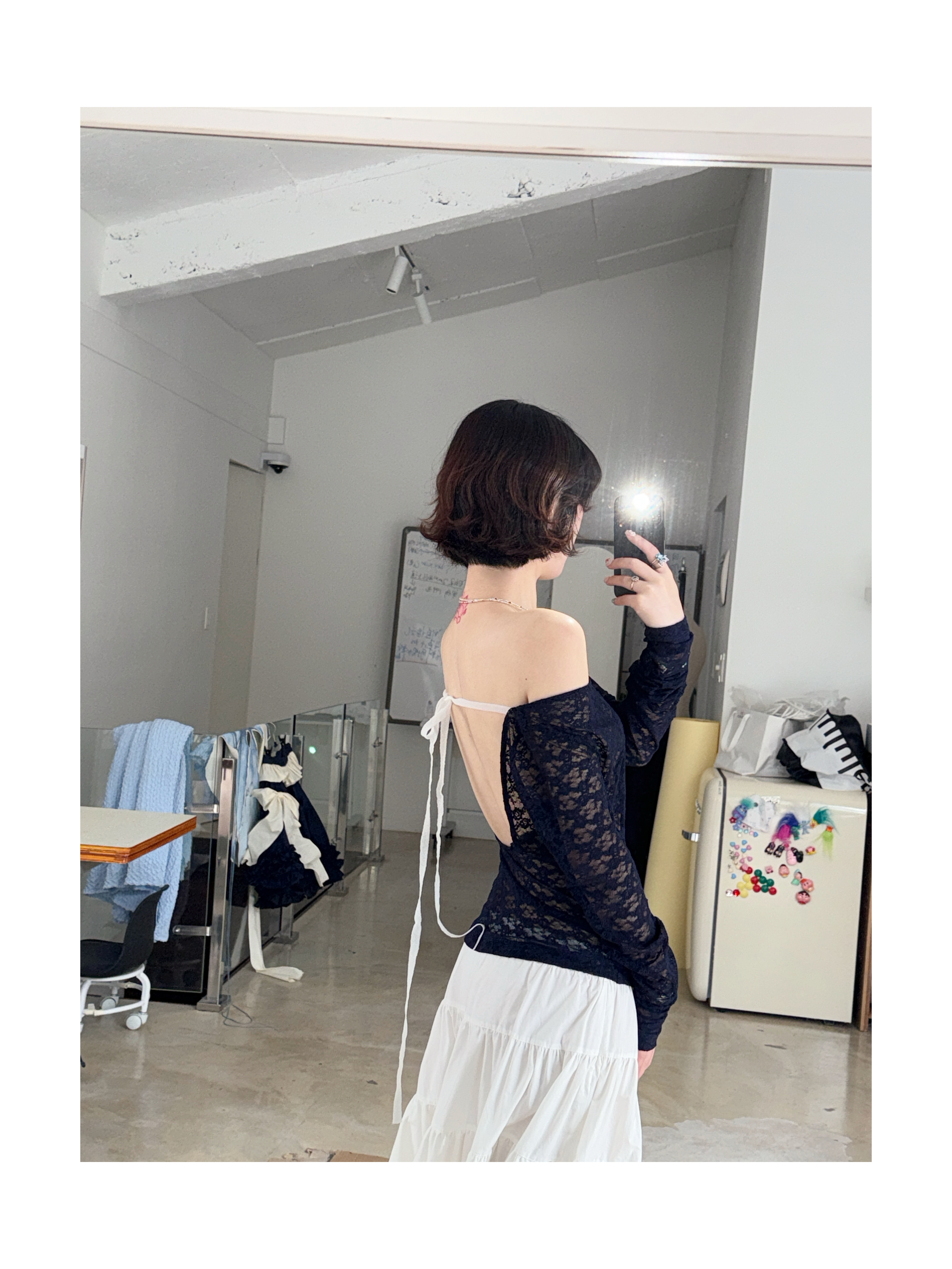 Kaiy Xiao 早秋系列 蕾丝露背系带上衣