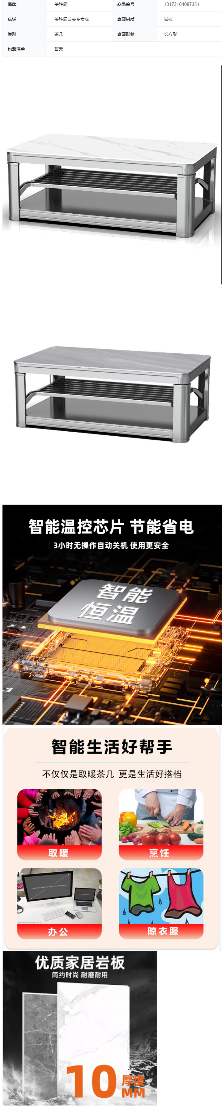 美胜辰 MC-A07 智能升降 取暖茶几 上下发热 家用取暖桌 拉链被+移动系统 MC-A07雅士白 1380*750