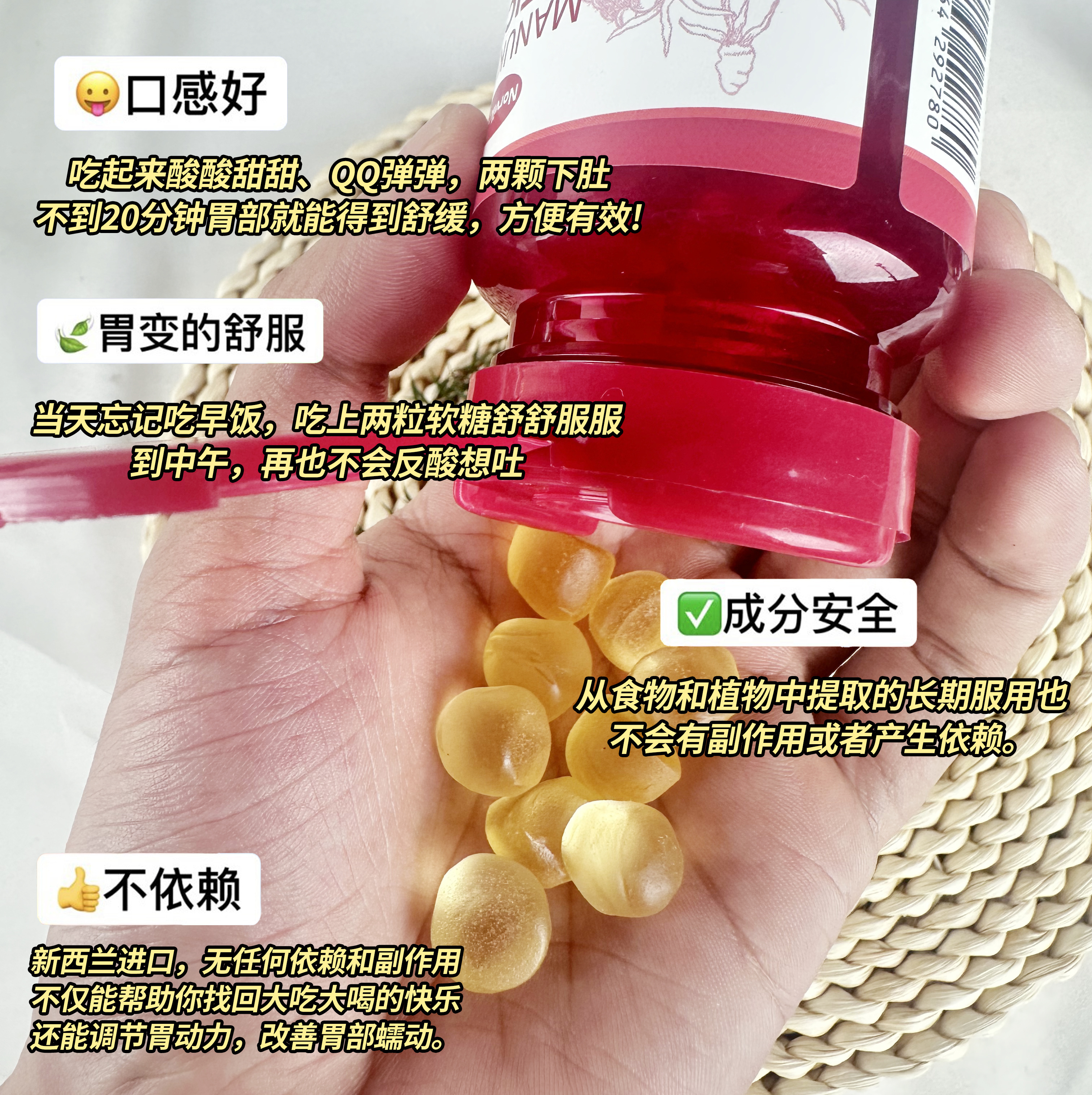 新西兰进口【诺维肯麦卢卡蜂蜜养胃糖】添加多种活性物质,呵护胃部健康