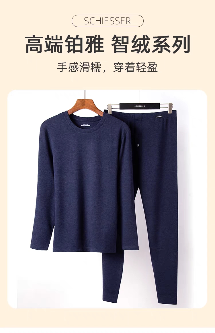【智绒3.0】SCHIESSER 德国舒雅 铂雅秋衣秋裤男士铂雅蚕丝羊绒单上衣 / 保暖裤 加绒保暖内衣打底厚款95/20588Q 95/21327Y