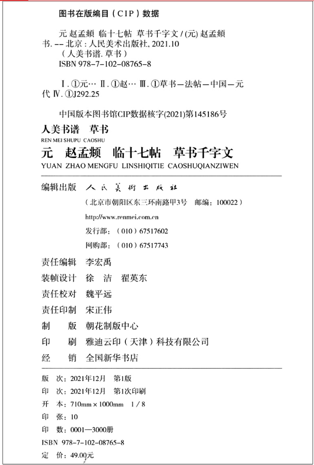 人美书谱 草书 元 赵孟頫 临十七帖 草书千字文【现货包邮】RM0071