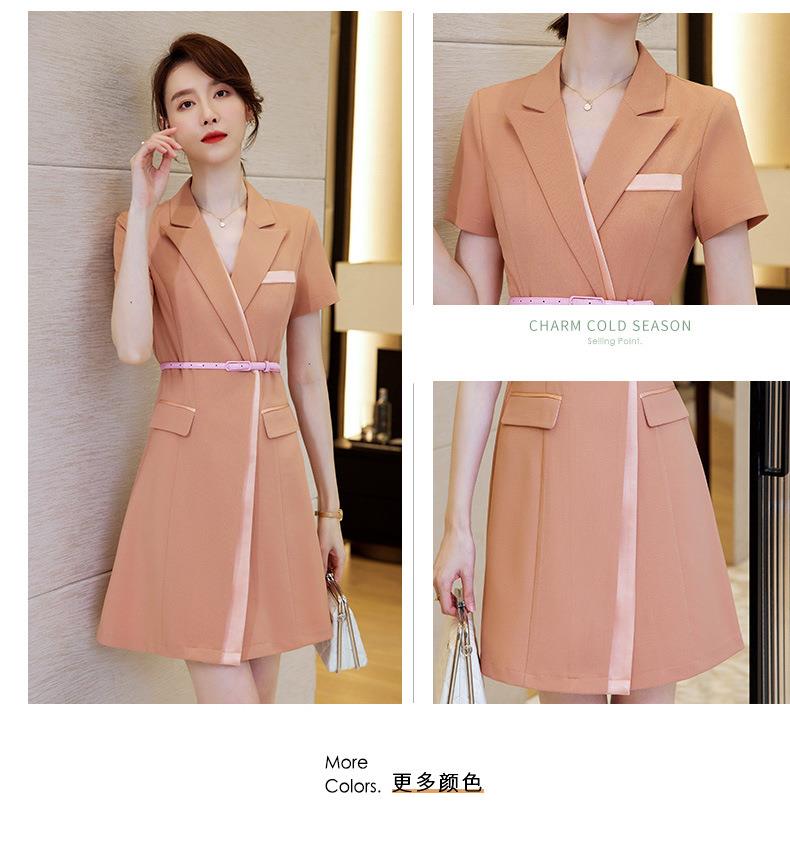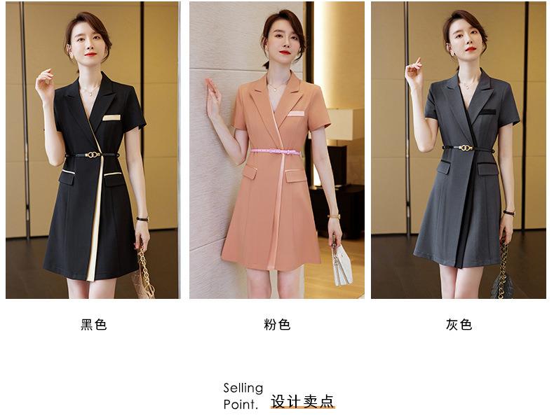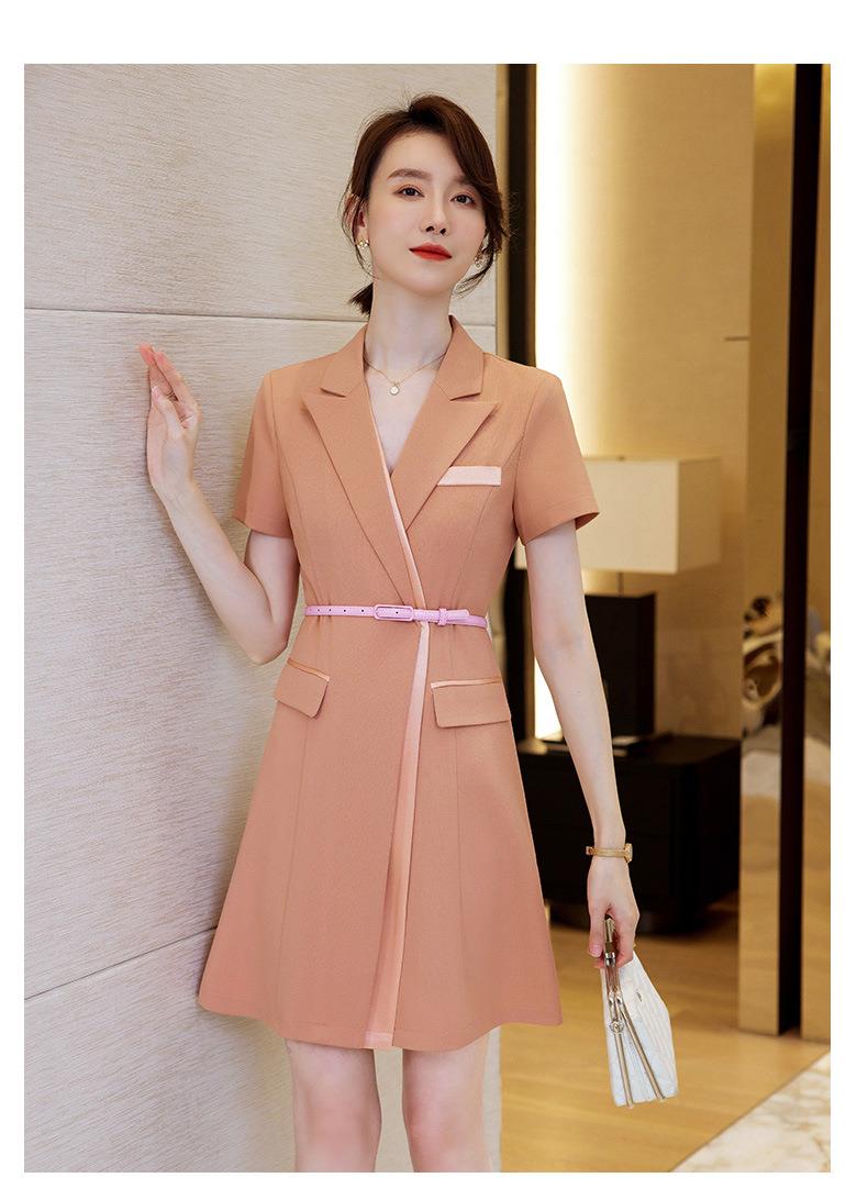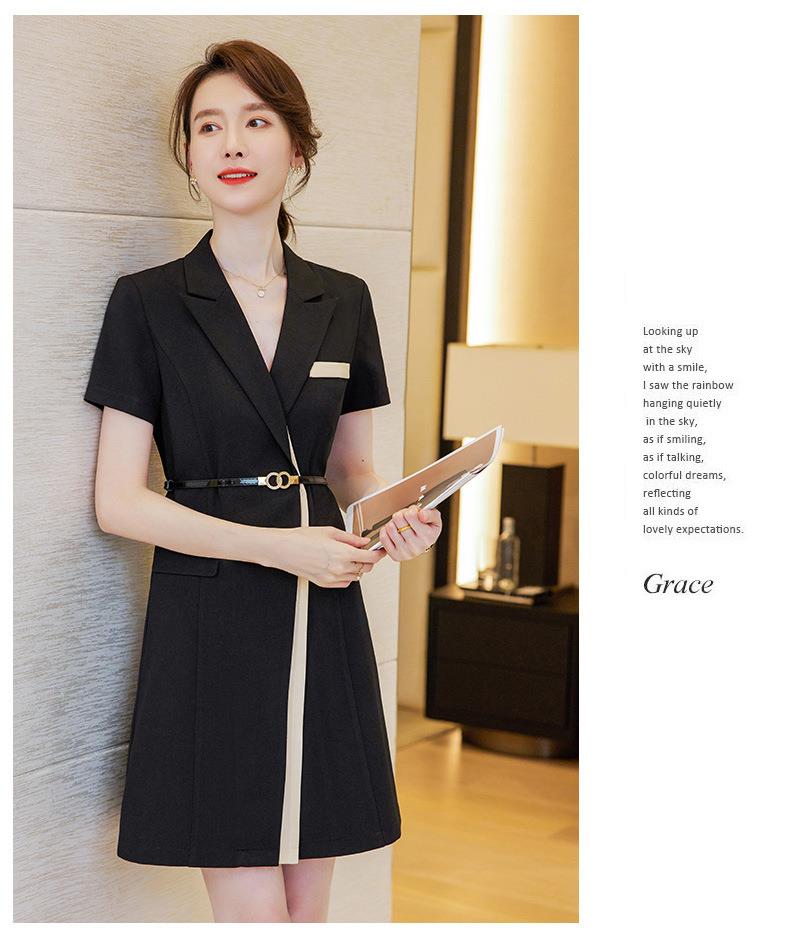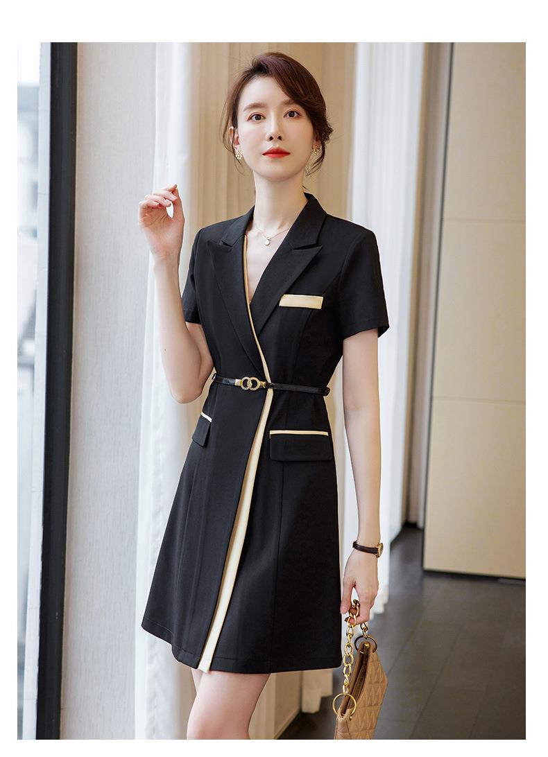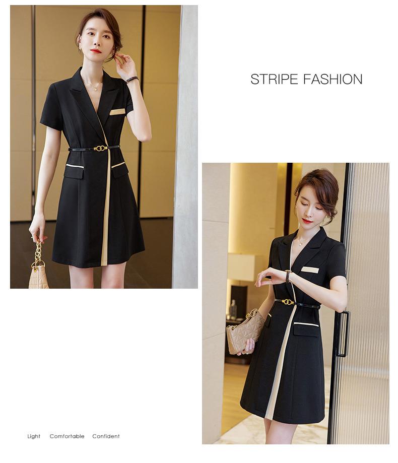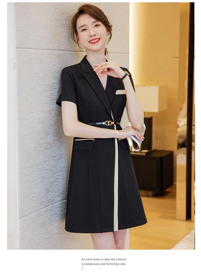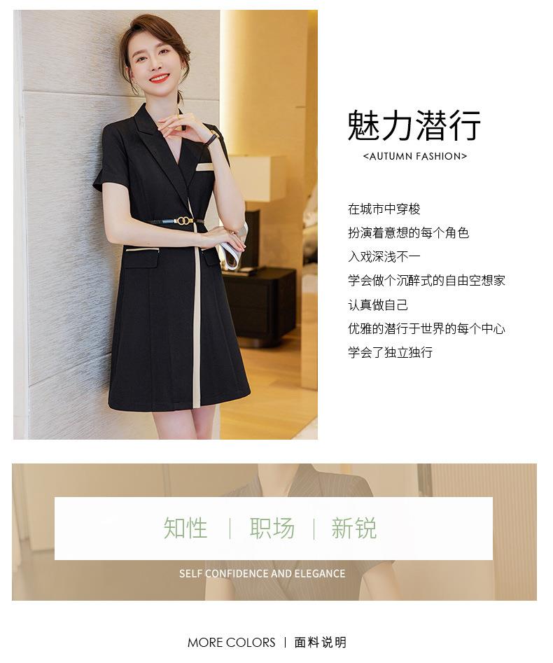 娜璐多 拼接撞色短袖西装连衣裙女夏季职业装气质女神OL2023新款裙子轻熟
