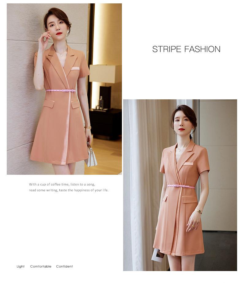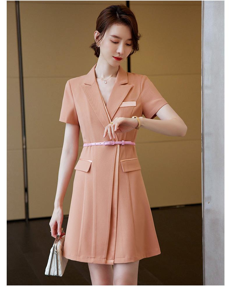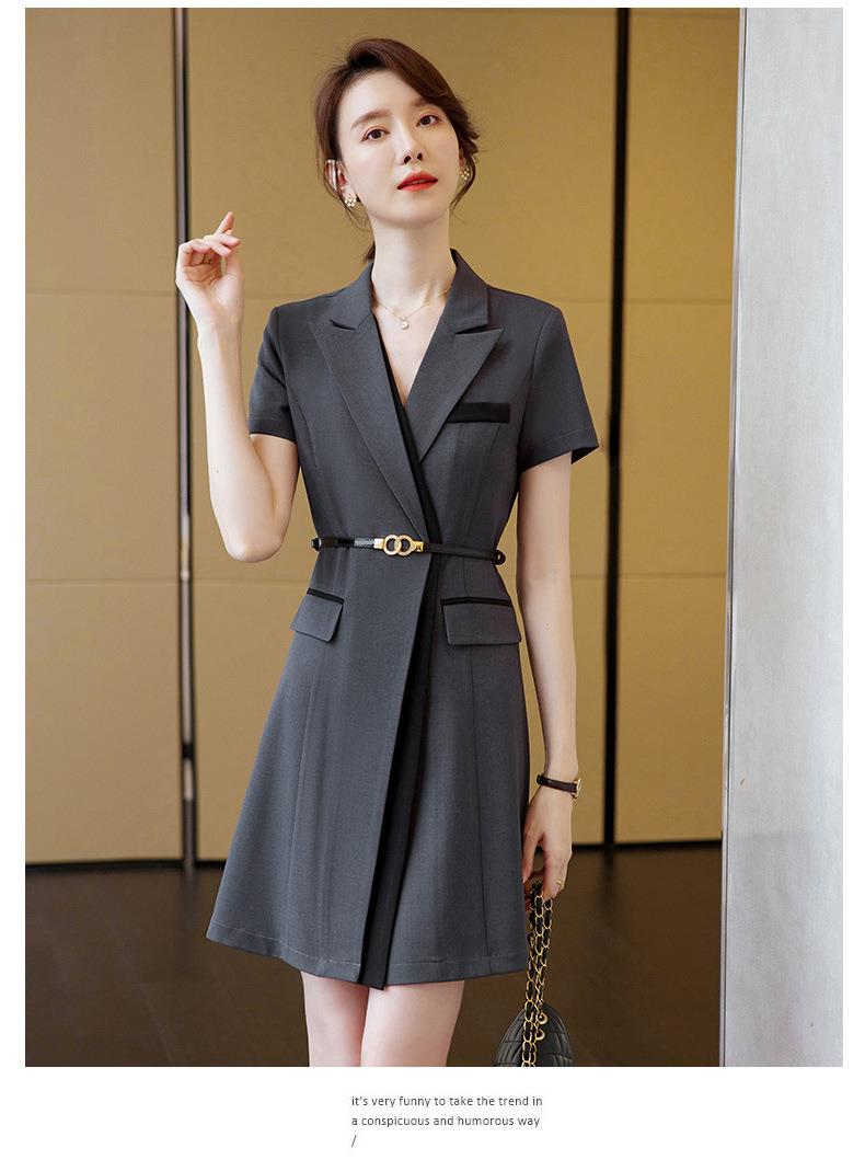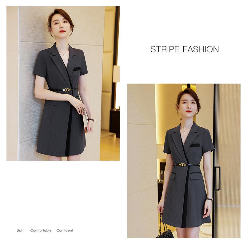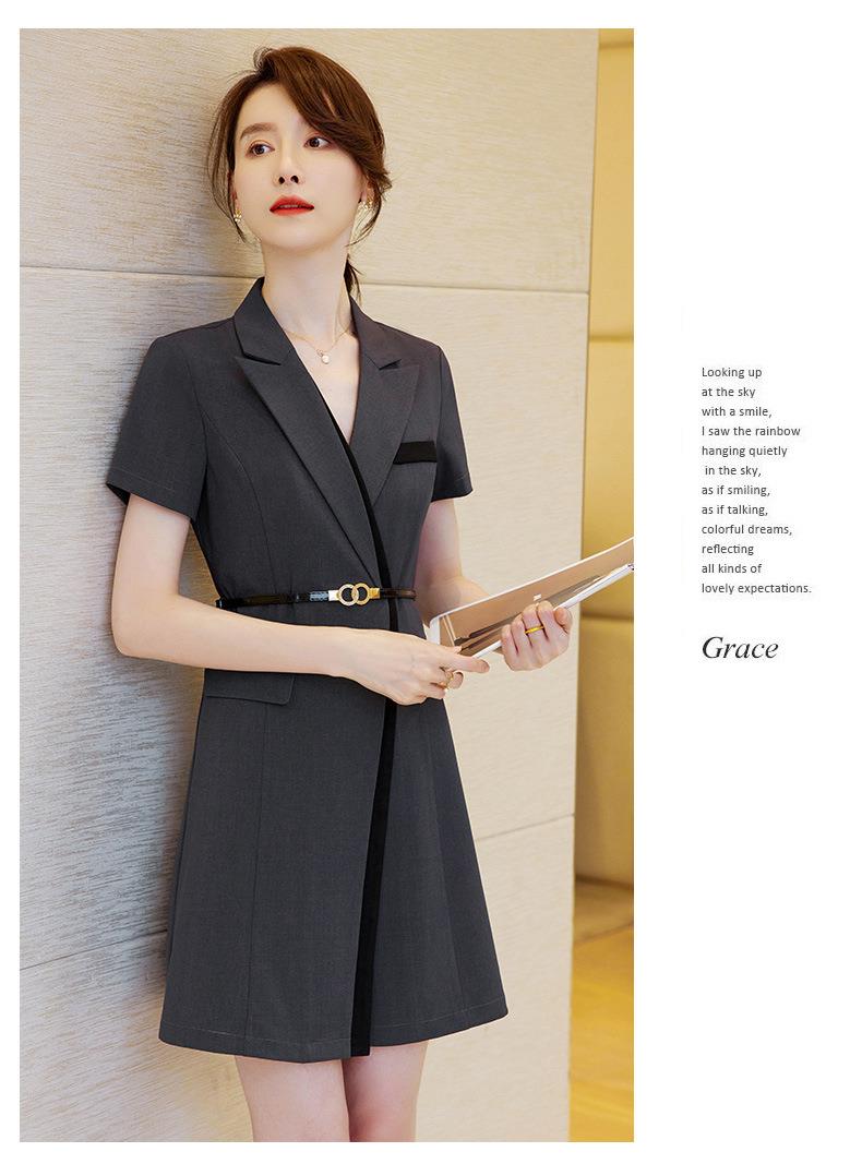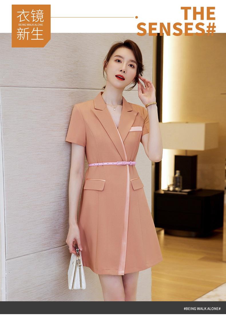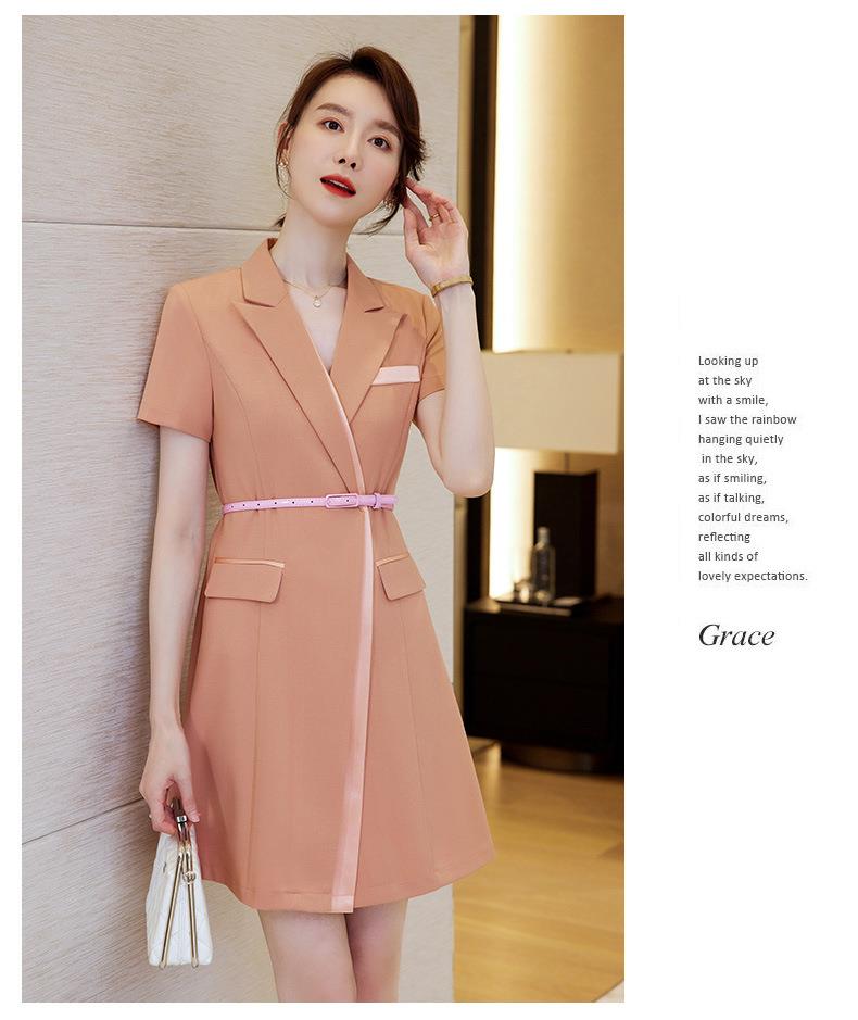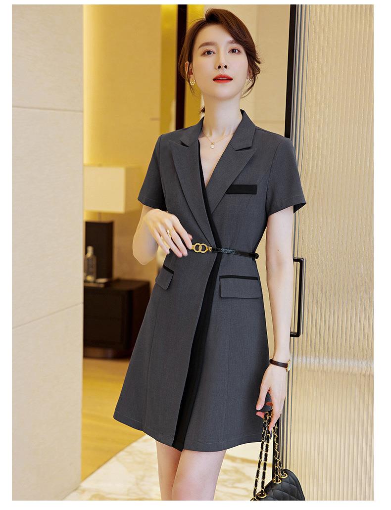娜璐多 拼接撞色短袖西装连衣裙女夏季职业装气质女神OL2023新款裙子轻熟