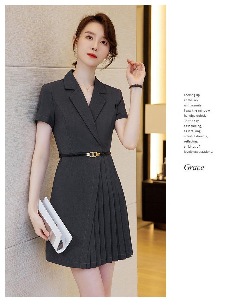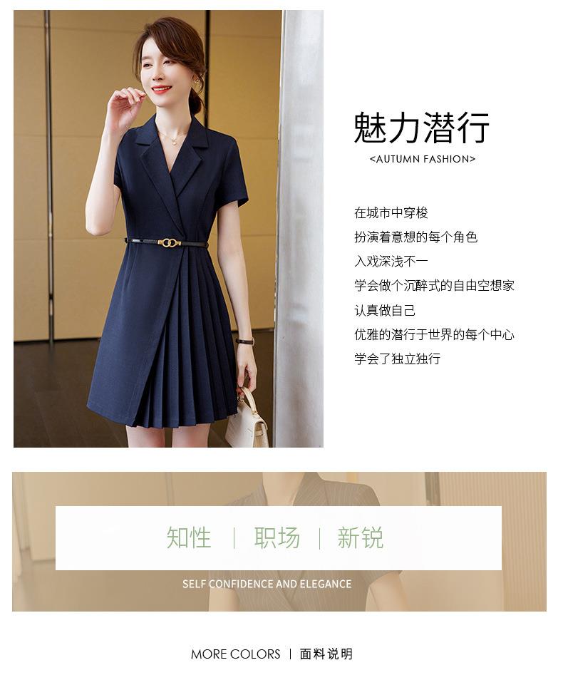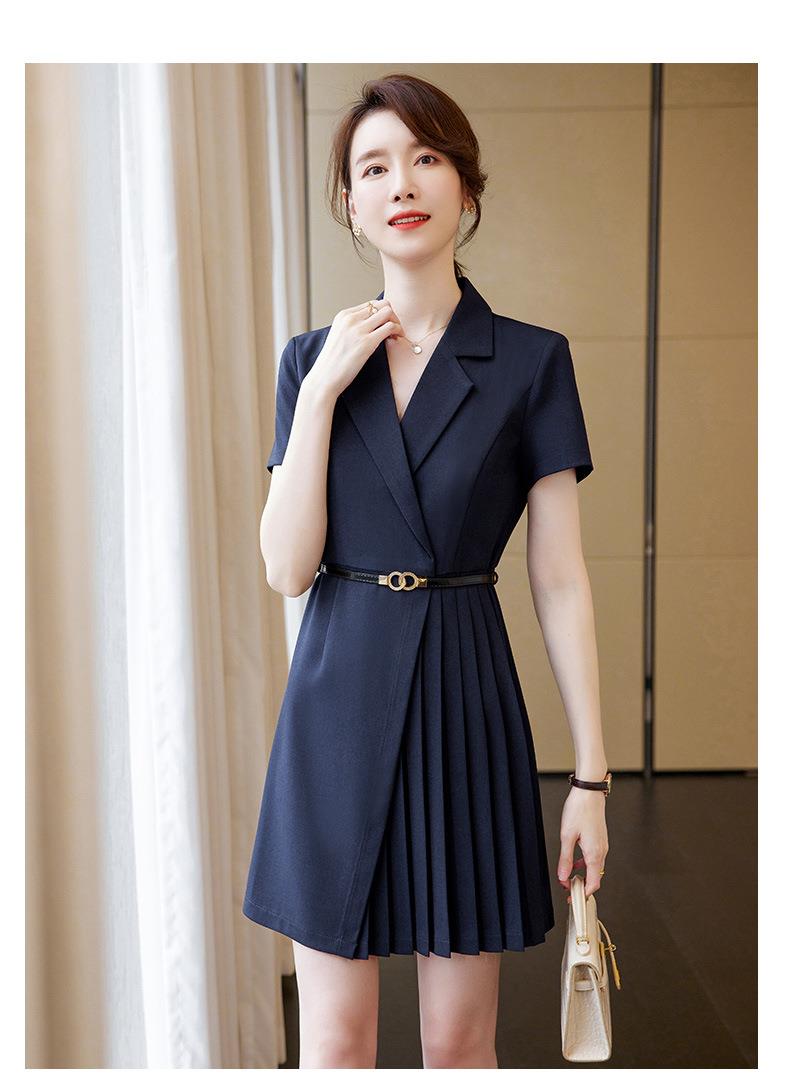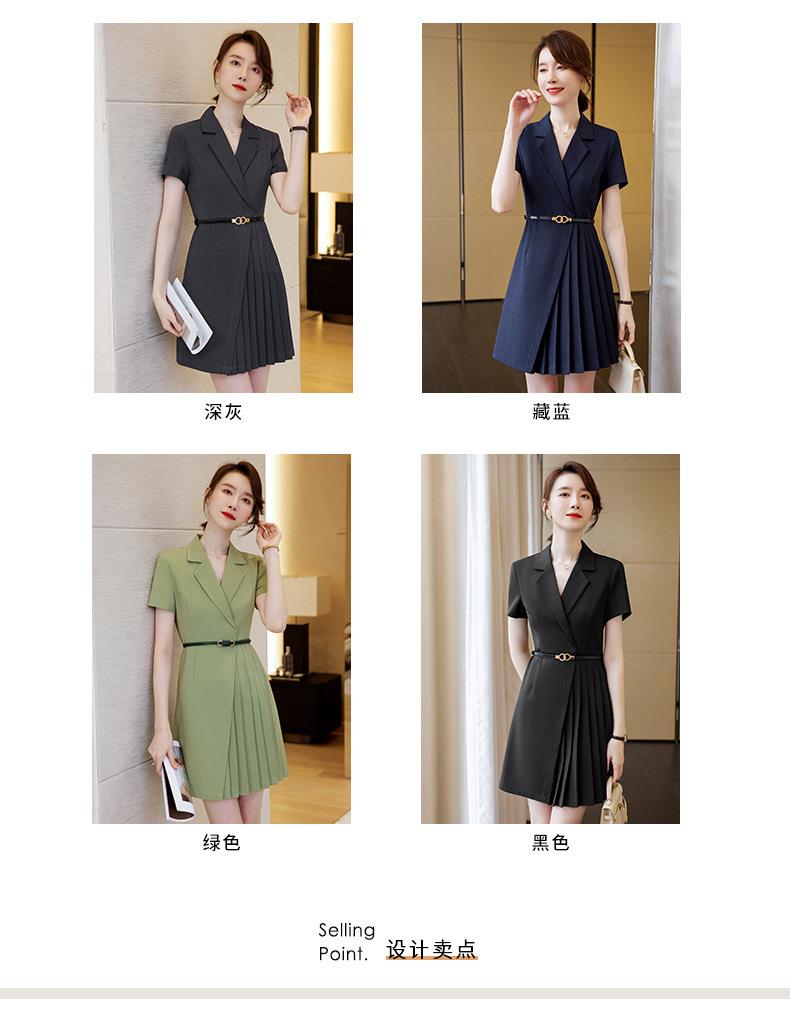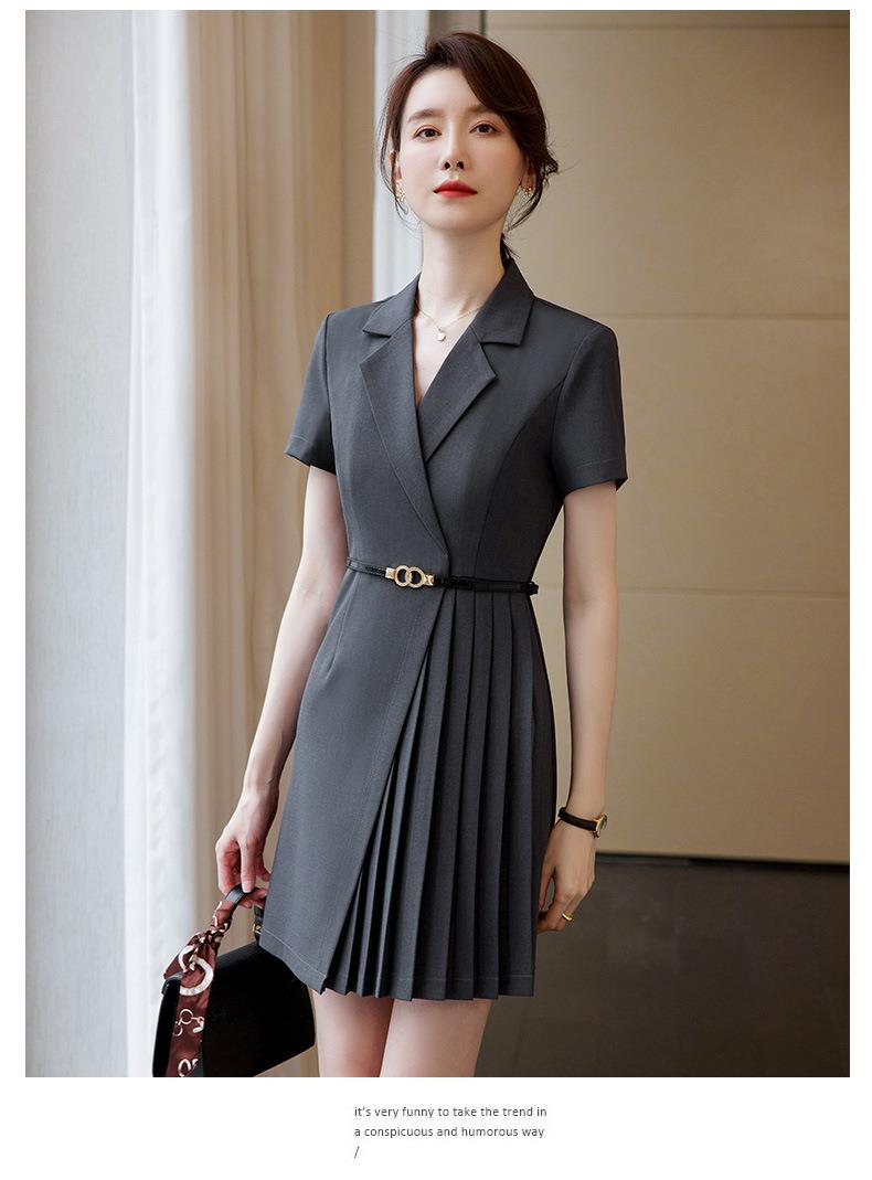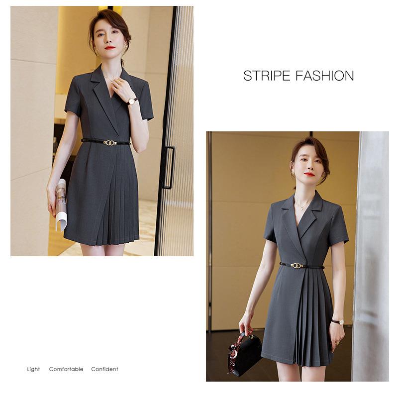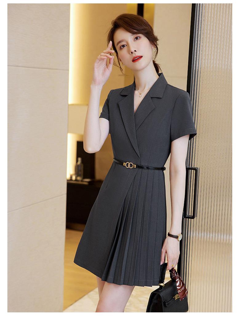 娜璐多 通勤短袖西装连衣裙女工作服OL气质职业裙收腰百褶裙高级感气质女