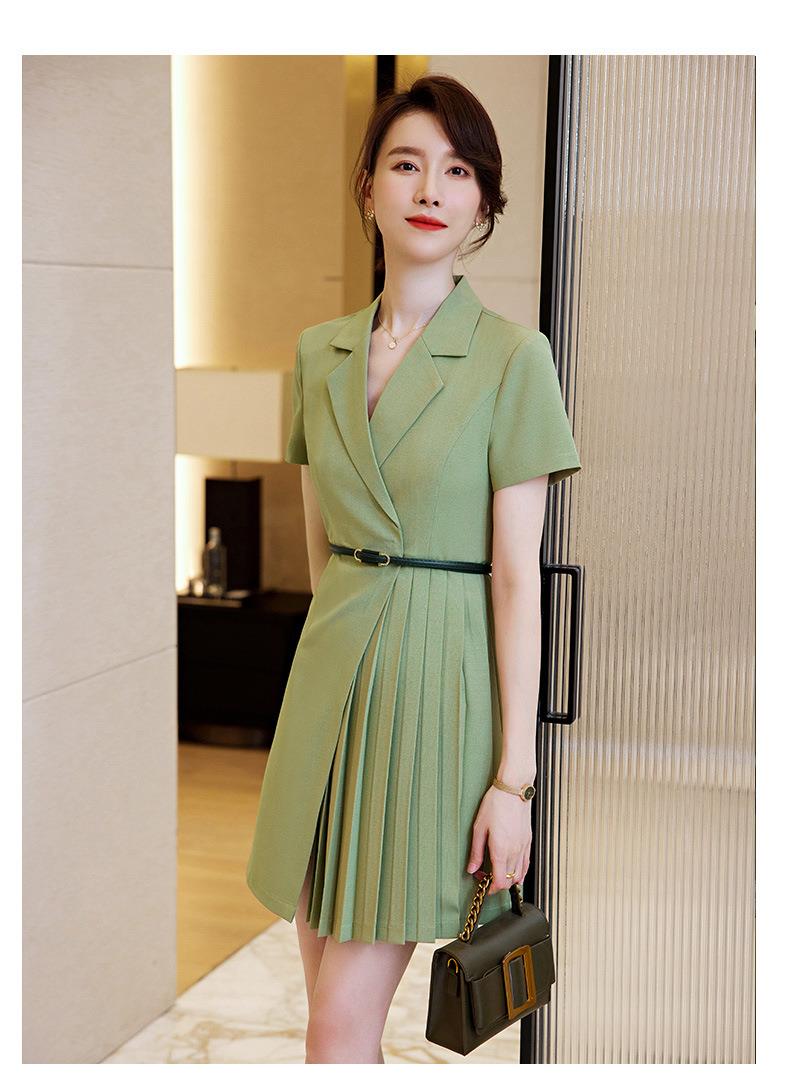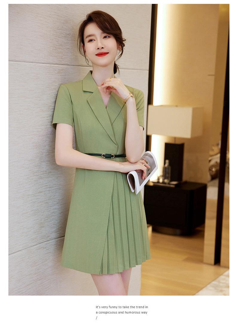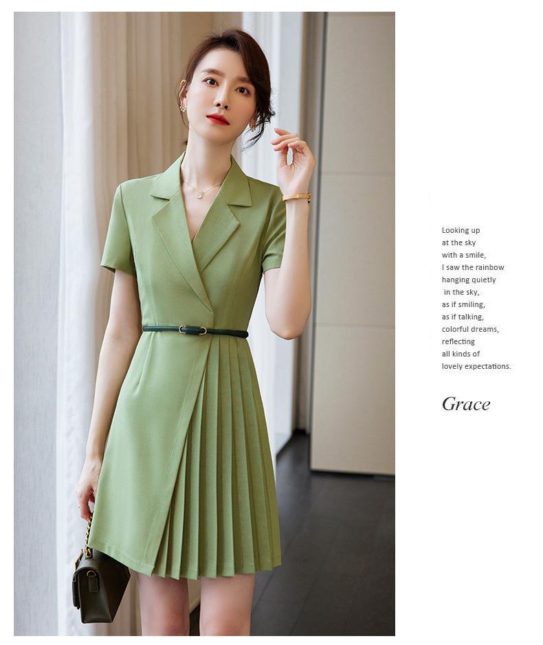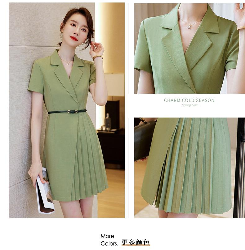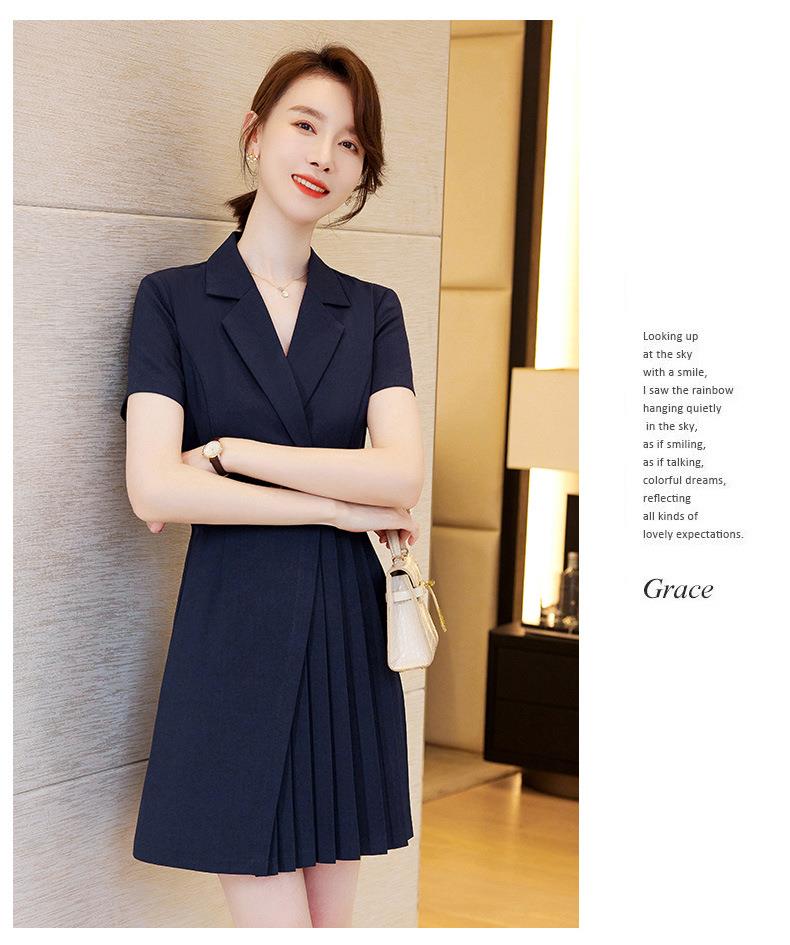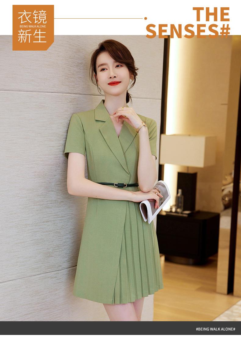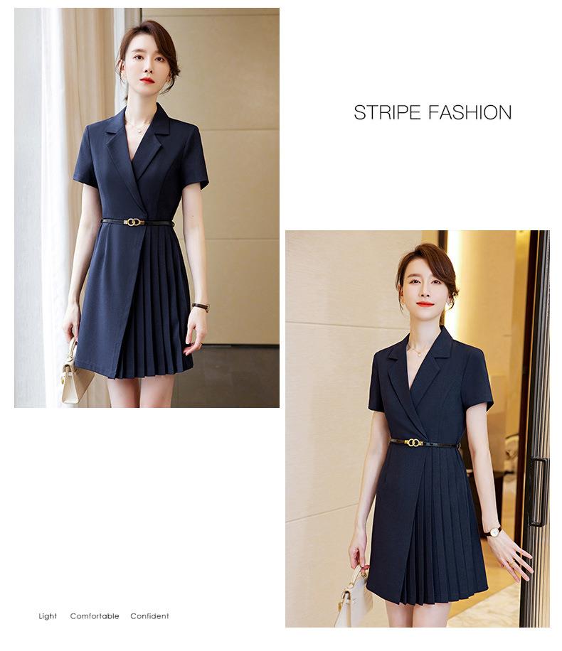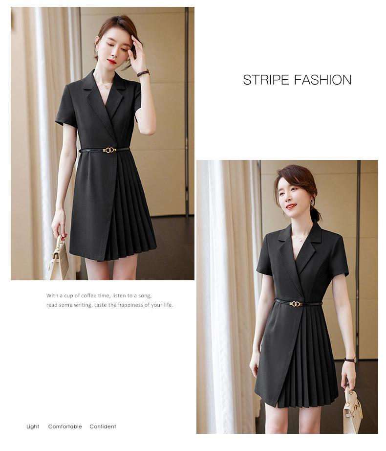 娜璐多 通勤短袖西装连衣裙女工作服OL气质职业裙收腰百褶裙高级感气质女