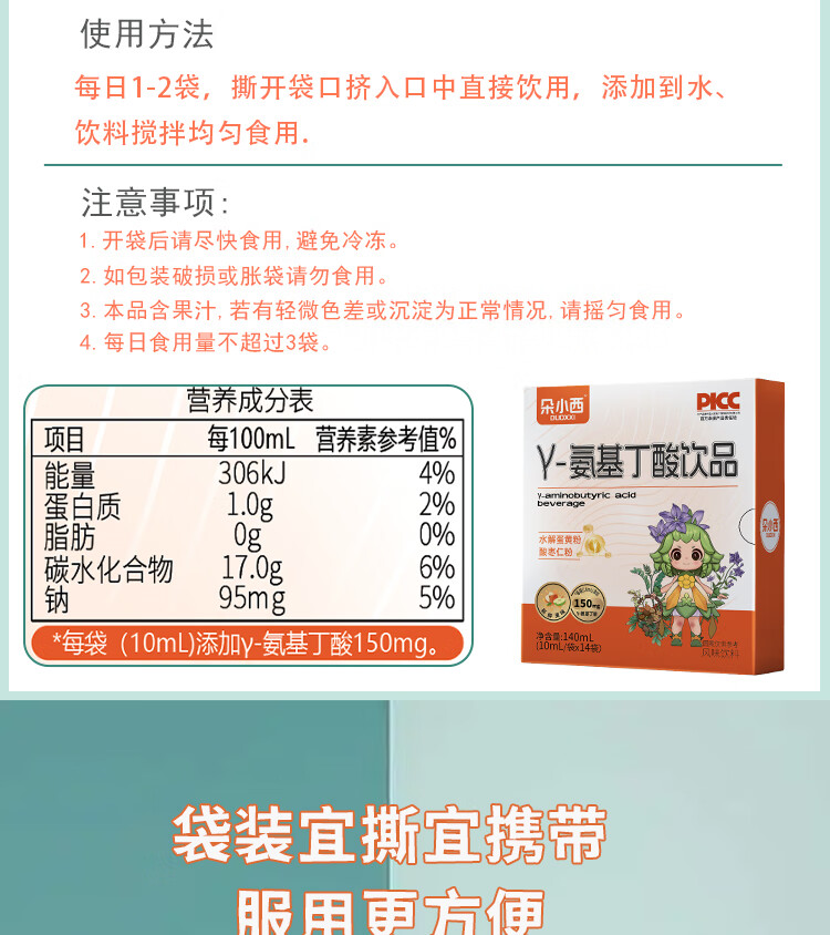²【小象儿童γ-氨基丁酸饮】γ-氨基丁酸150mg +水解蛋黄粉+酸枣仁粉+益生元/袋 10ml*14袋/盒 HM02-CRMM-YS