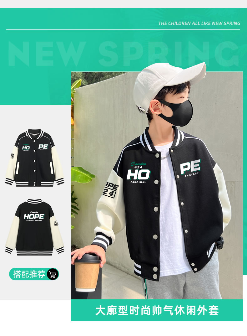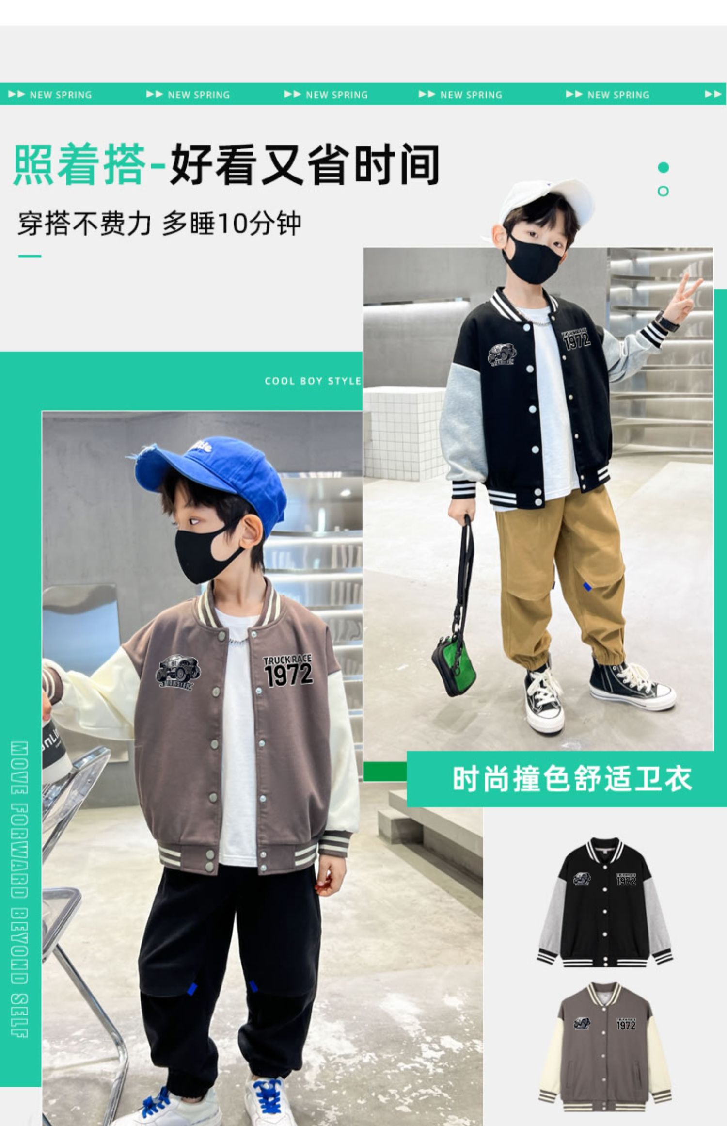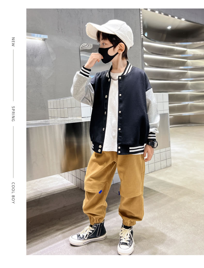 贝田2025新款冬季男童加绒加厚外套秋冬款儿童酷帅大童冬装棒球服