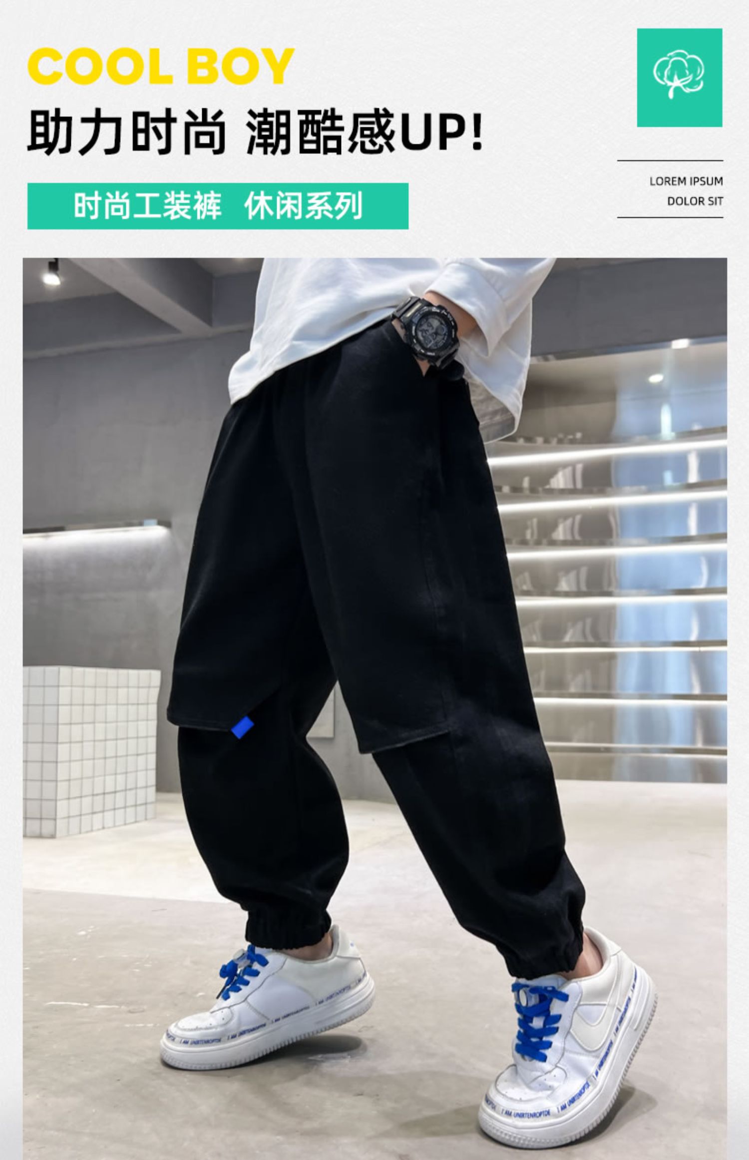 贝田男童裤子春秋款儿童工装裤2024新款春季休闲裤男孩中大童长裤