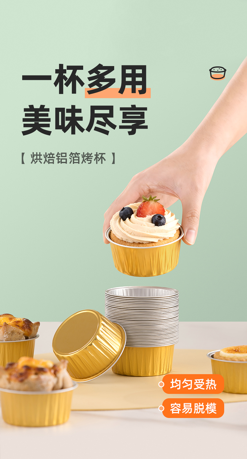 【茶花】空气炸锅专用铝箔烤杯厨房烘焙烤箱家用烧烤铝箔纸烤箱烤肉