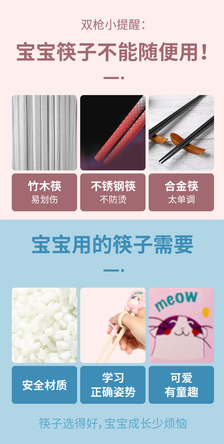 双枪儿童筷子训练筷一段2 3 6岁宝宝练习学习筷二段小孩家用辅助
