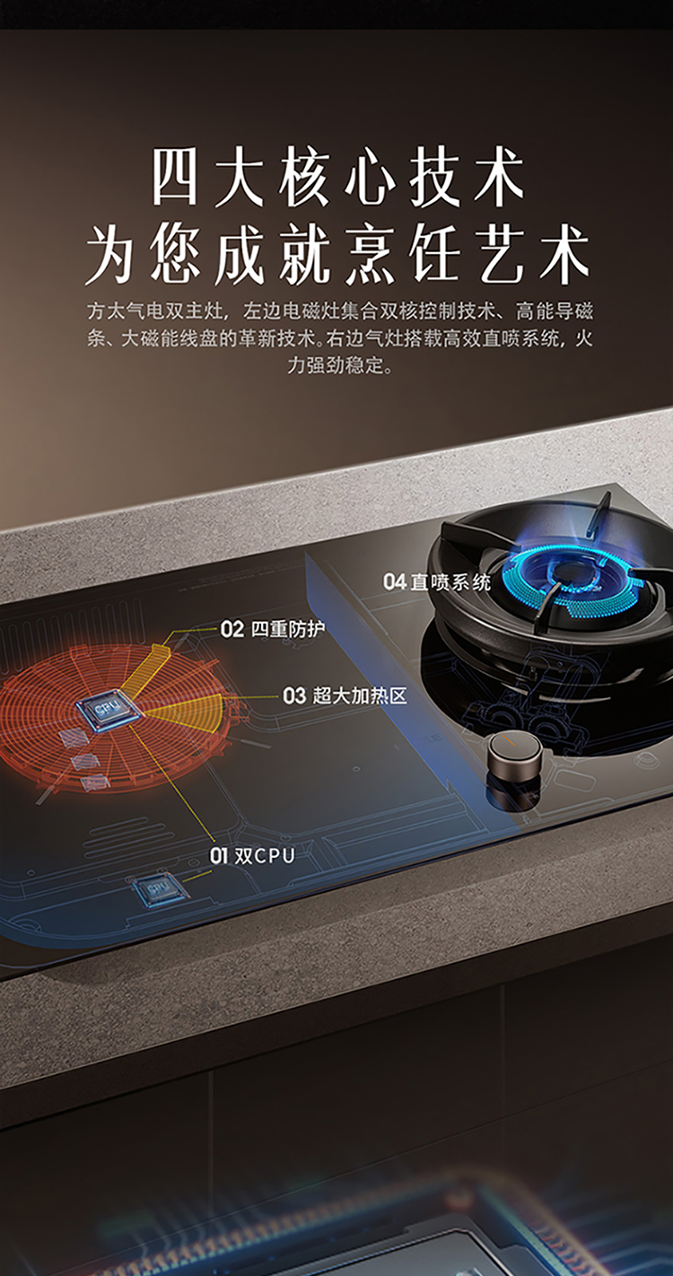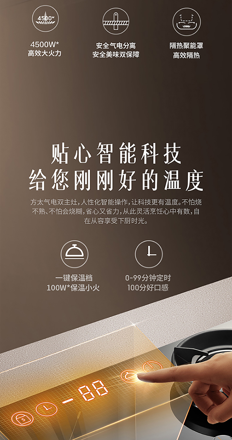 方太(11797)【门店同款】方太气电双主灶家用厨房燃气灶具4.5kw灶具JZDT-DA9B天然气