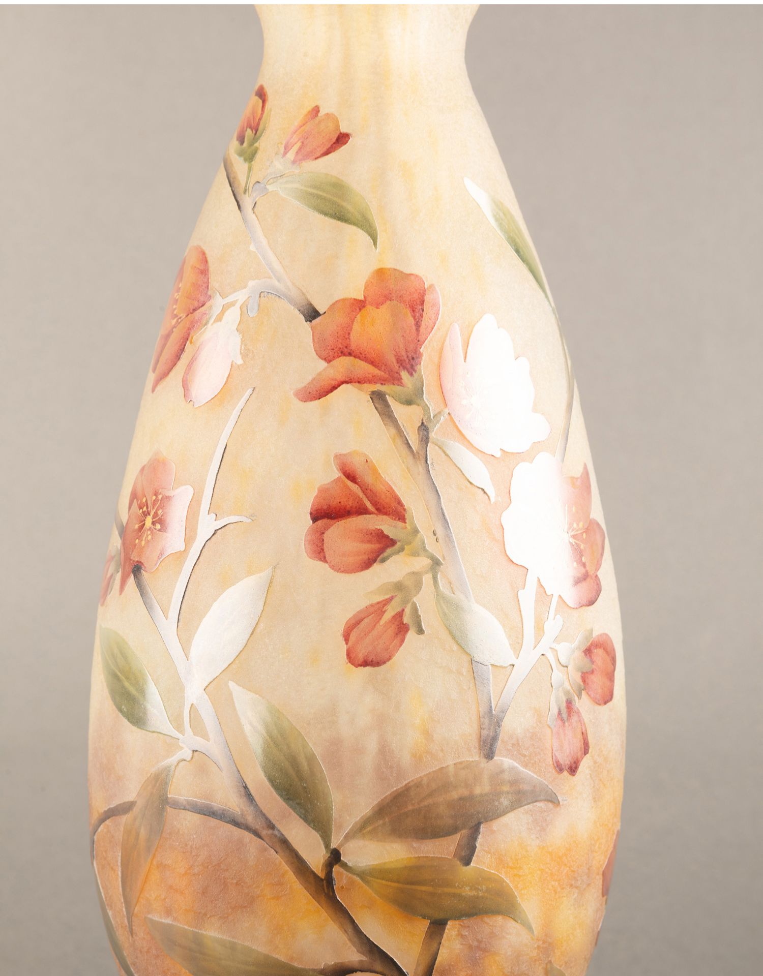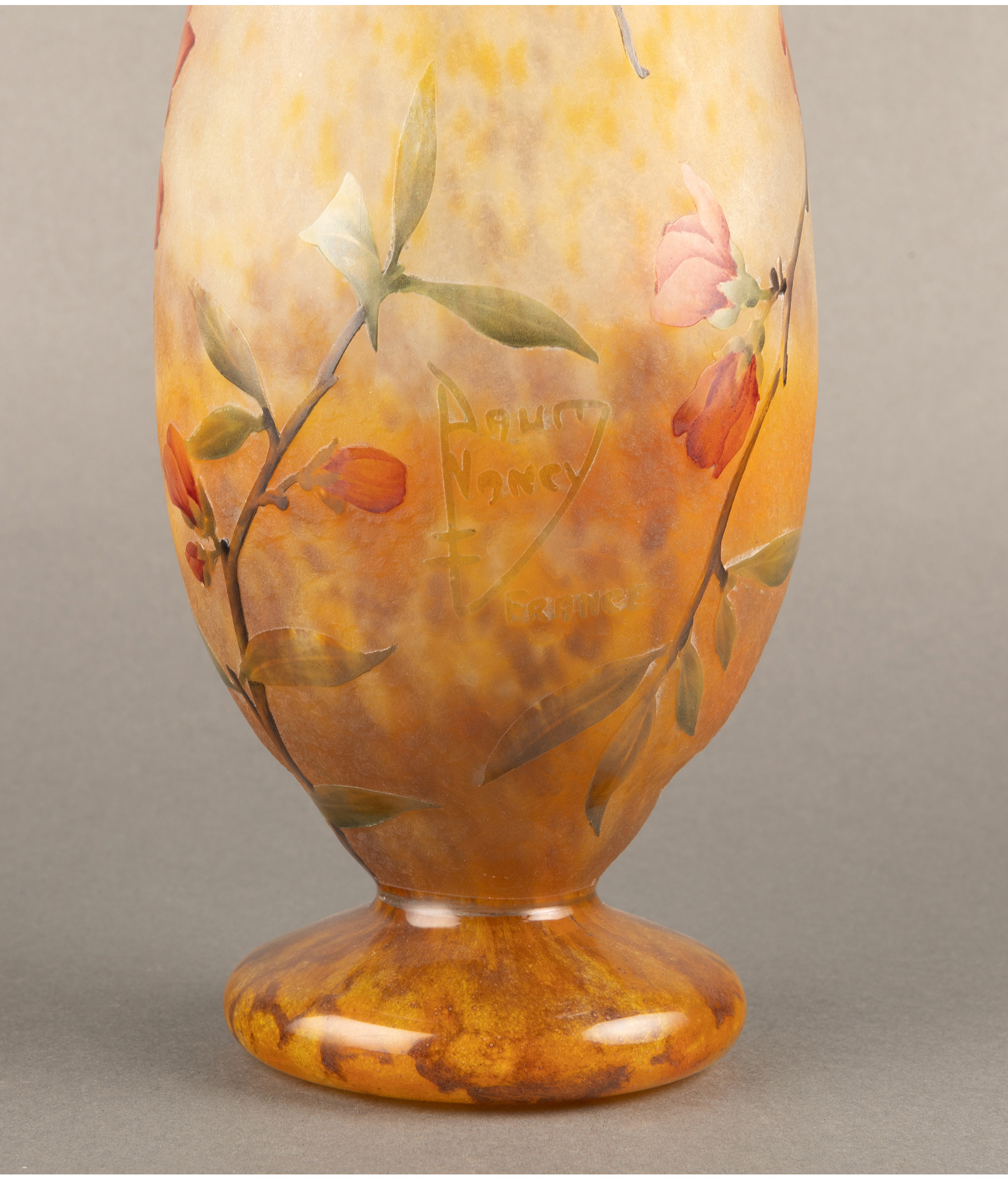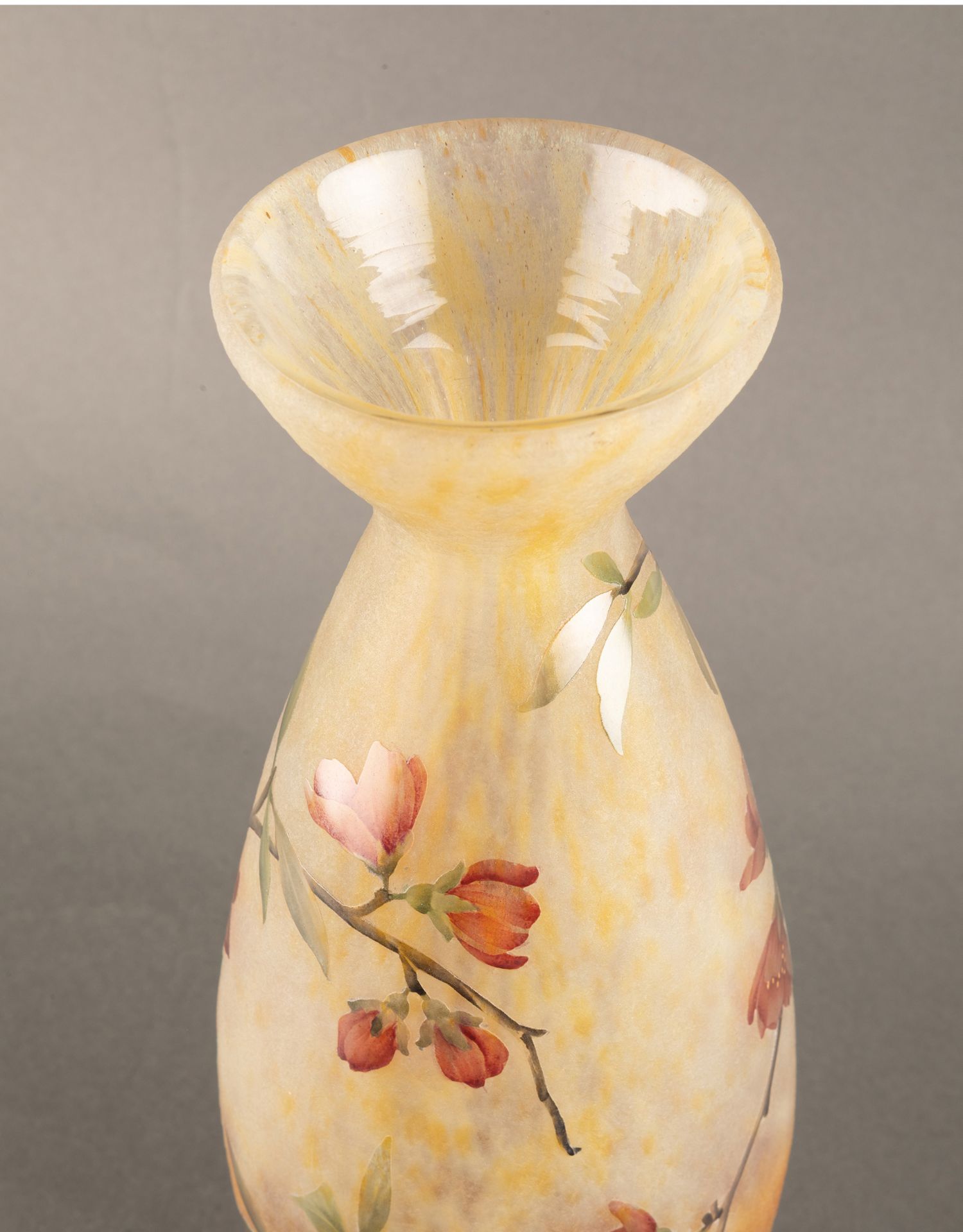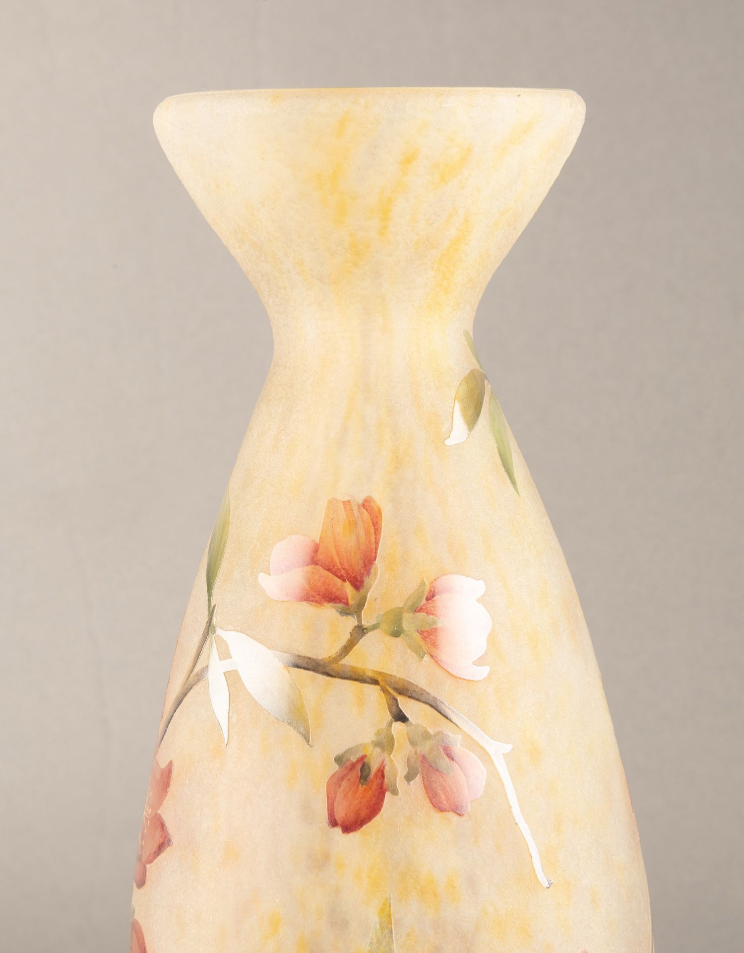 独角鹿西洋古董法国南锡派Daum工坊花卉主题多层水晶花瓶摆件