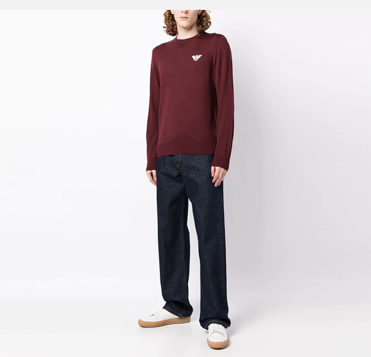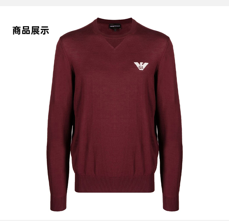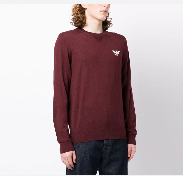 EMPORIO ARMANI 阿玛尼 男士徽标印花羊毛圆领长袖针织衫 紫红色 6L1MXG 1MJVZ 0397