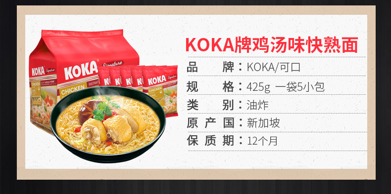 新加坡 KOKA鸡汤味快熟面(油炸方便面)425g*2包