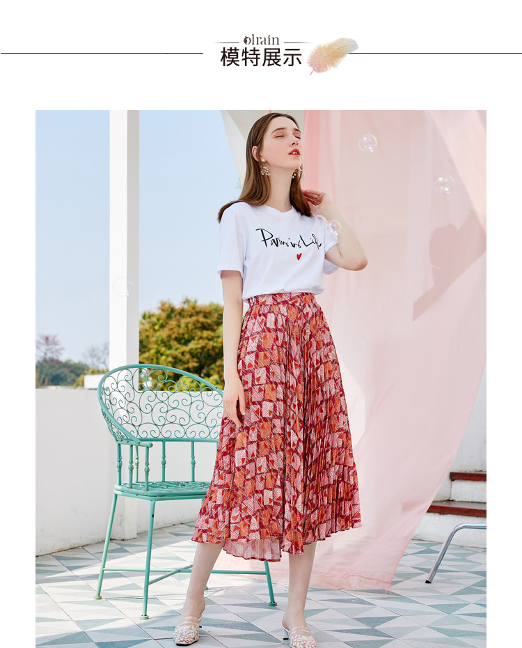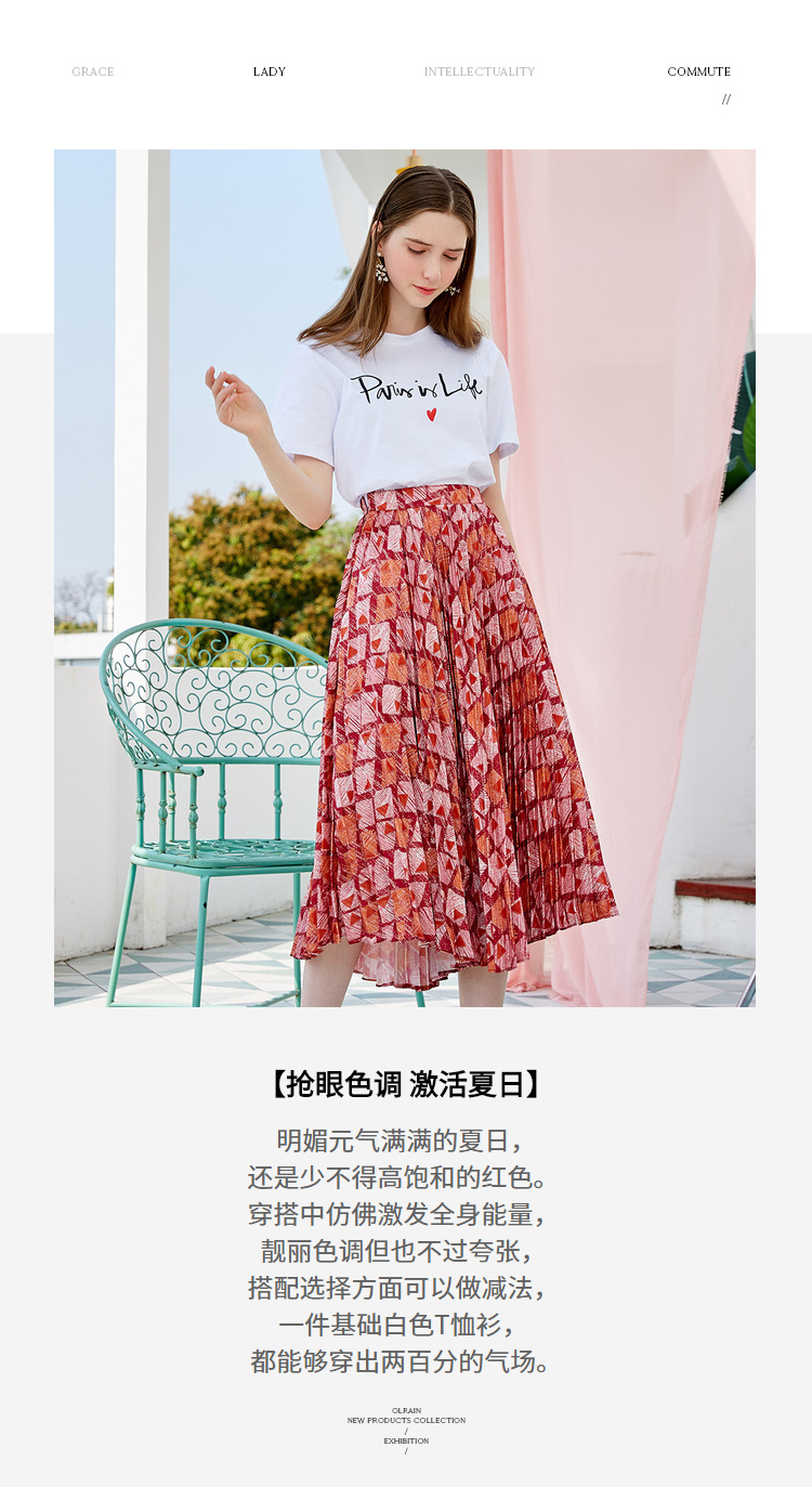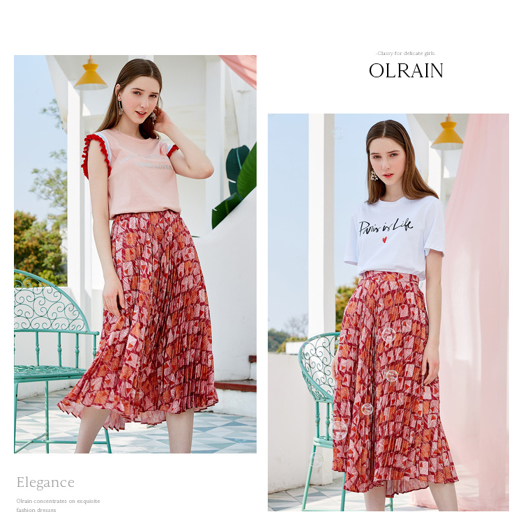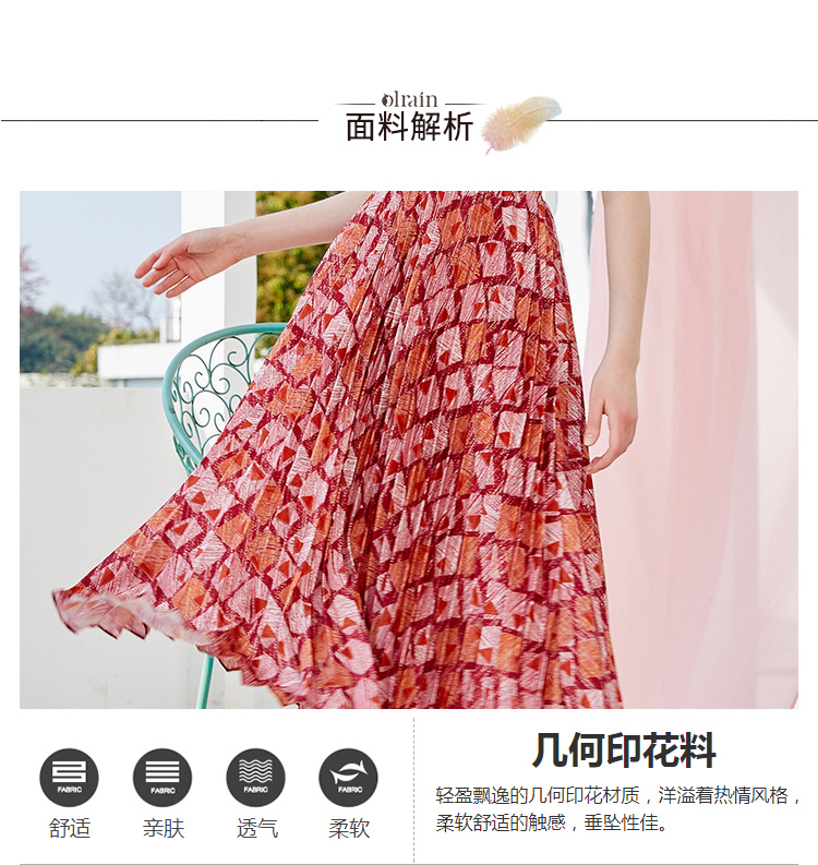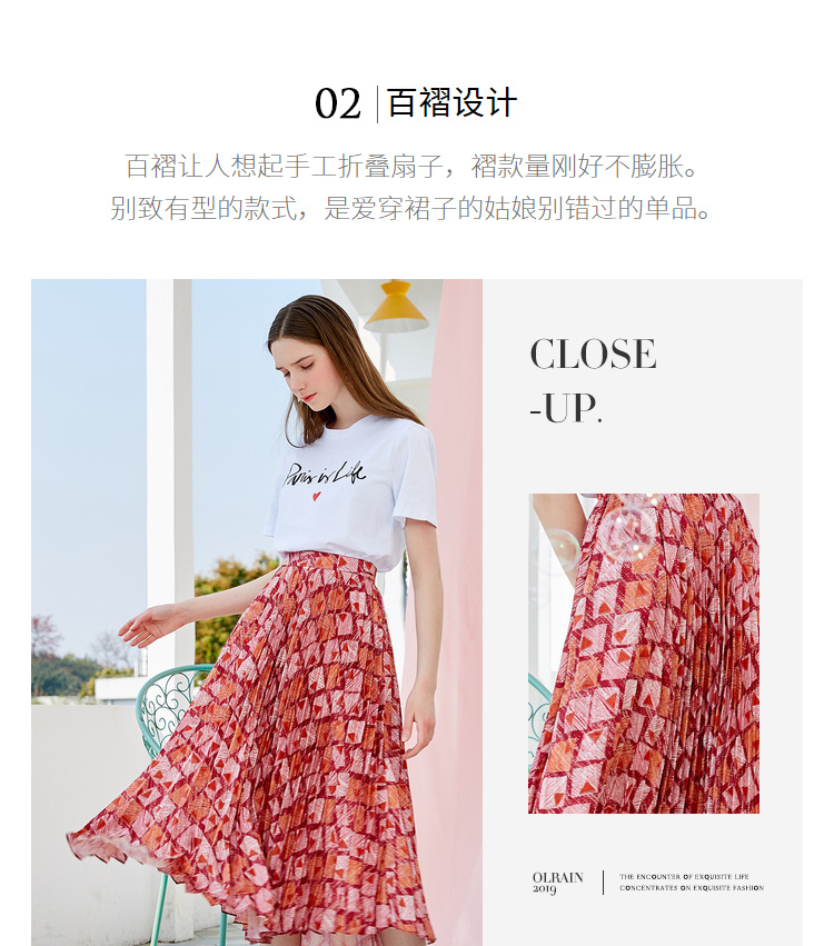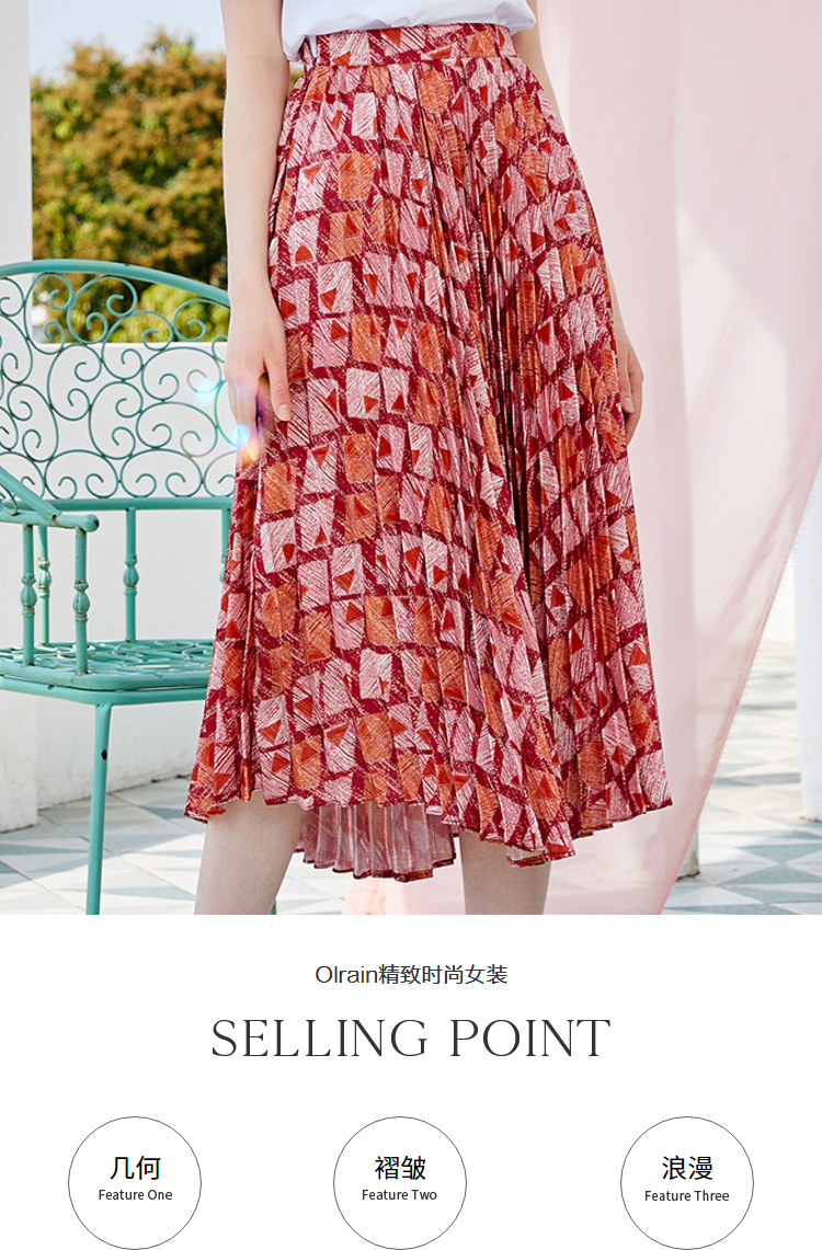欧芮儿2019新款女装夏装几何百褶半身裙女高腰显瘦不规则女裙子