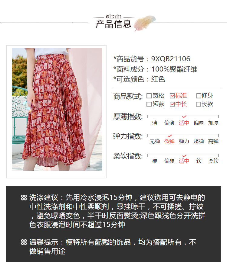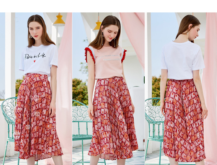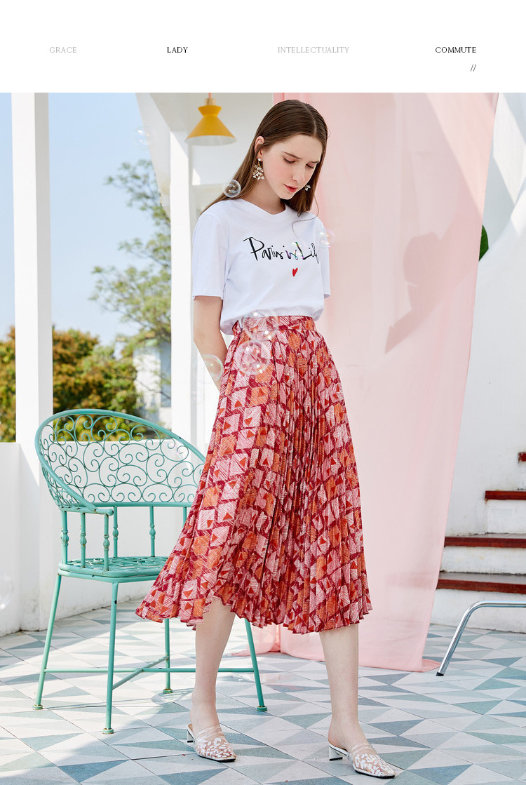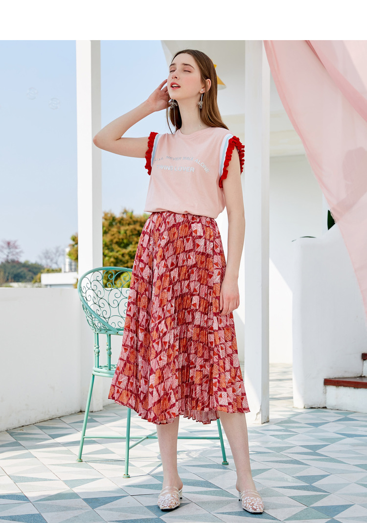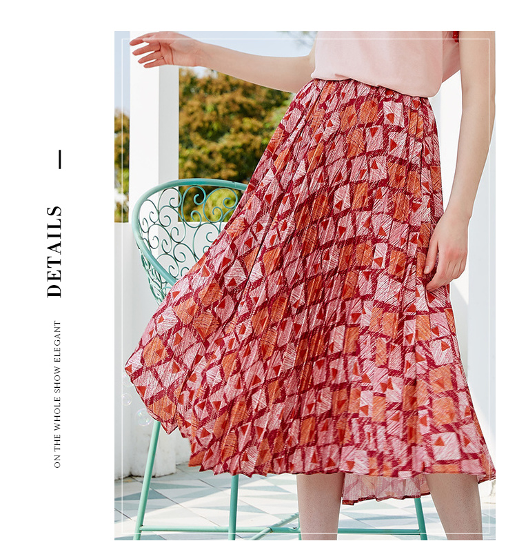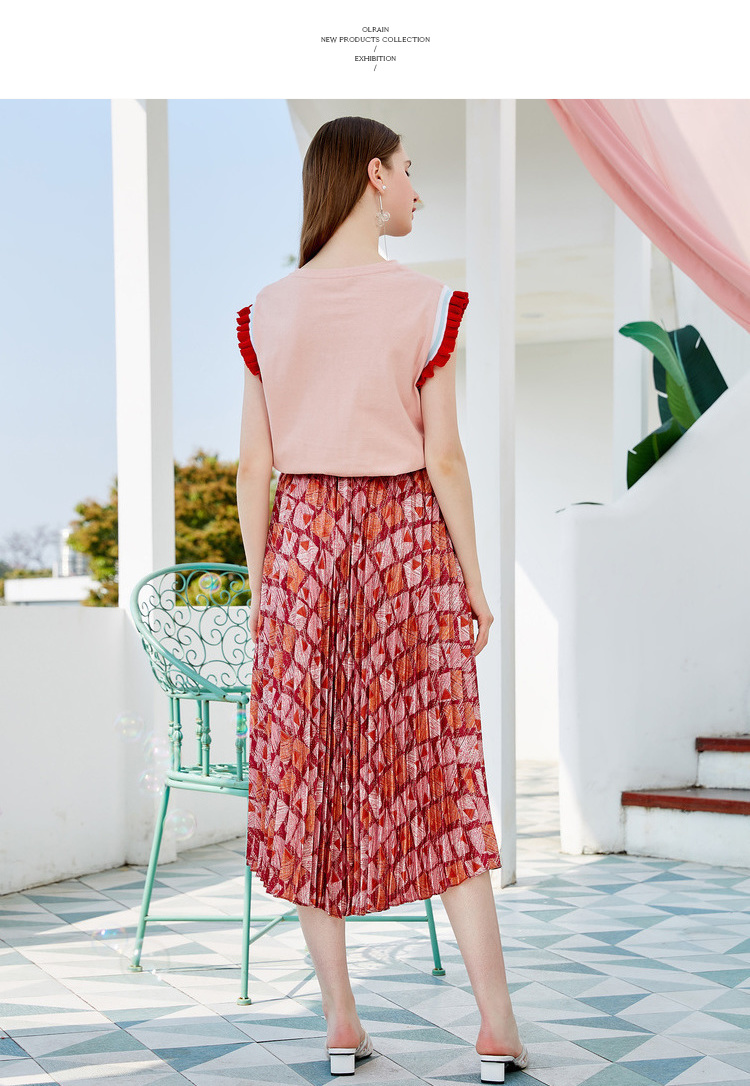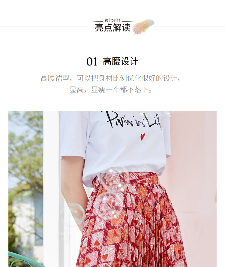 欧芮儿2019新款女装夏装几何百褶半身裙女高腰显瘦不规则女裙子