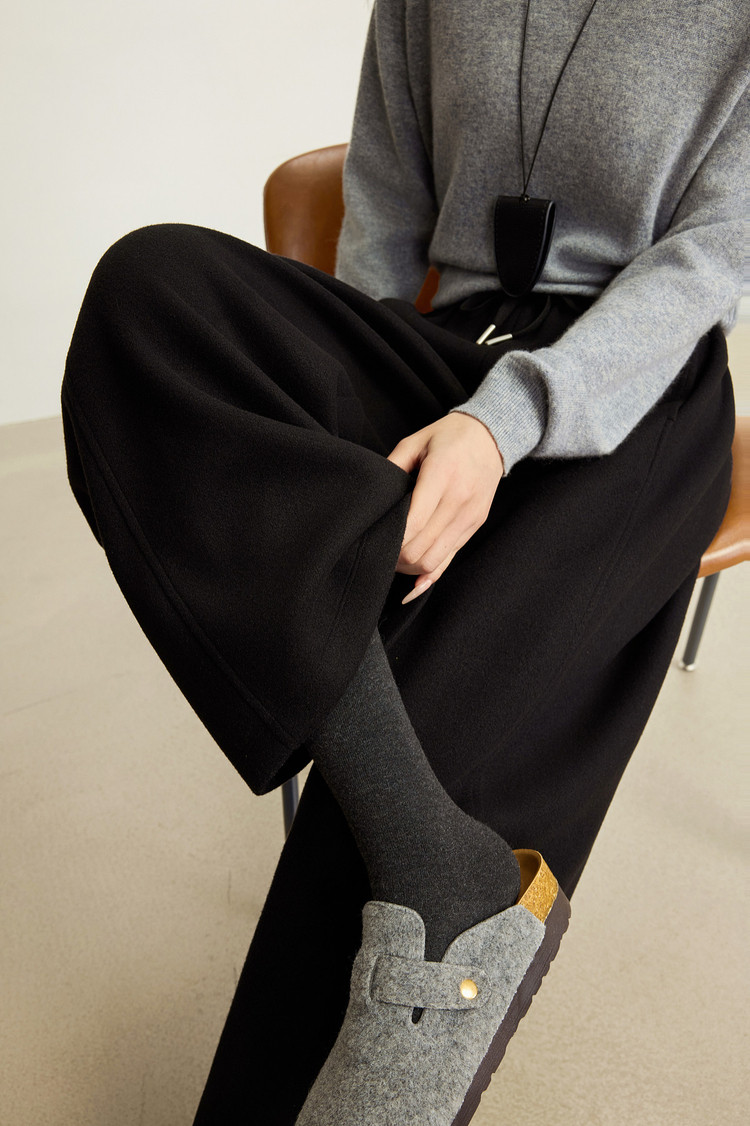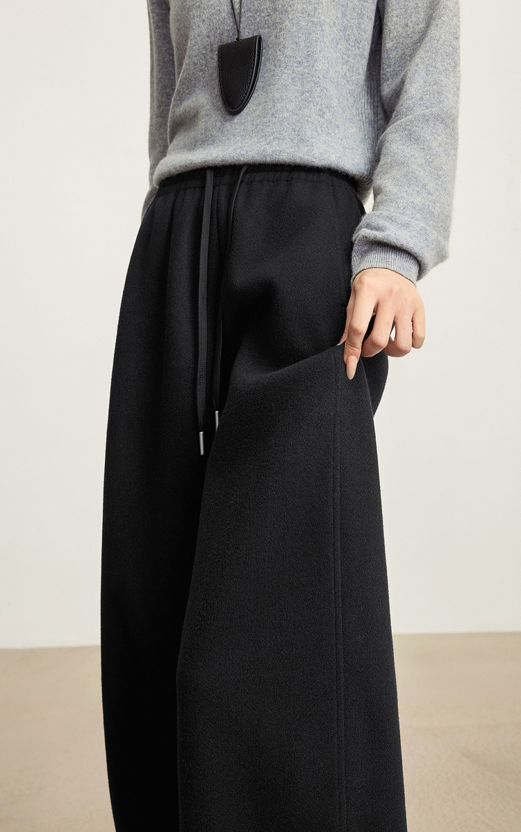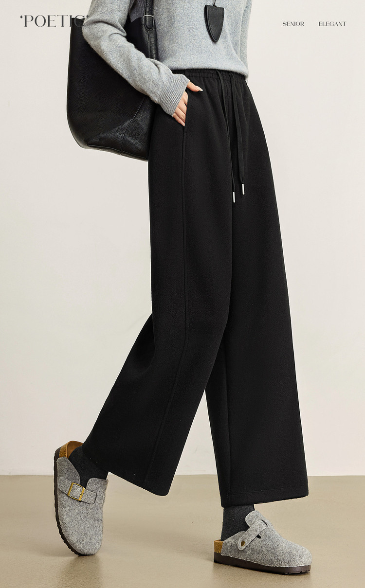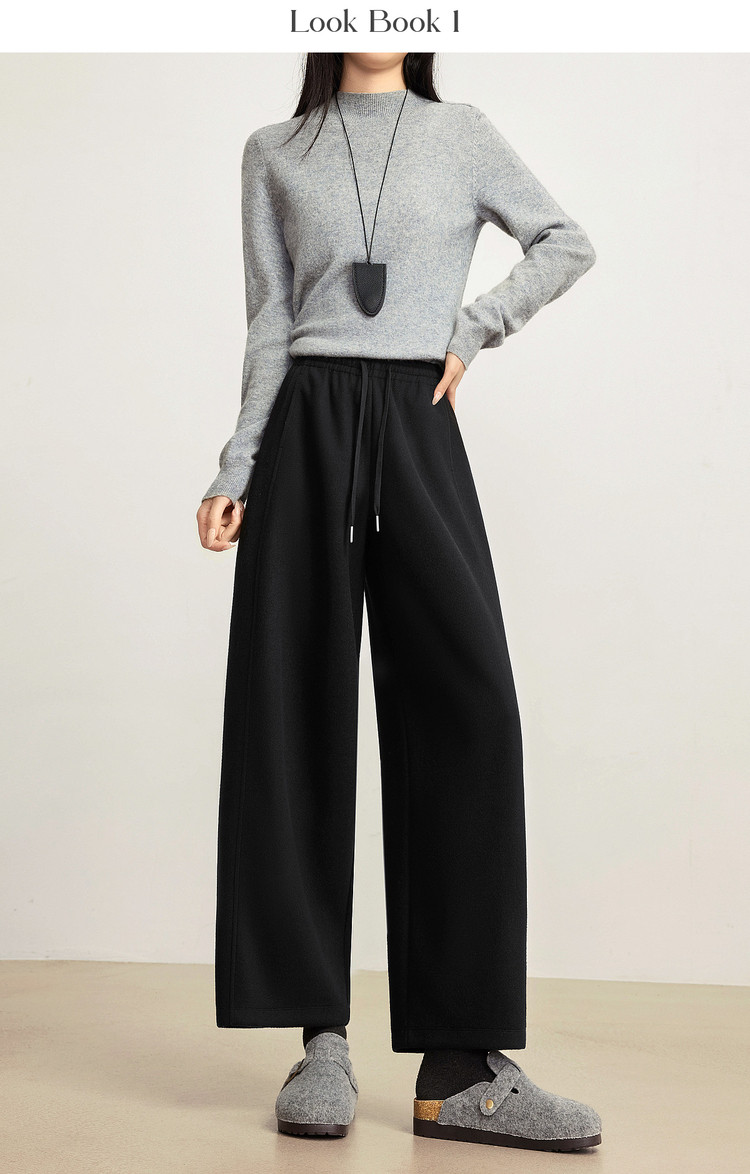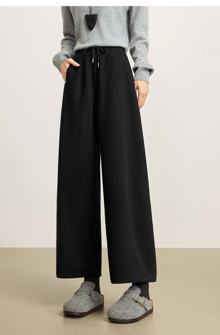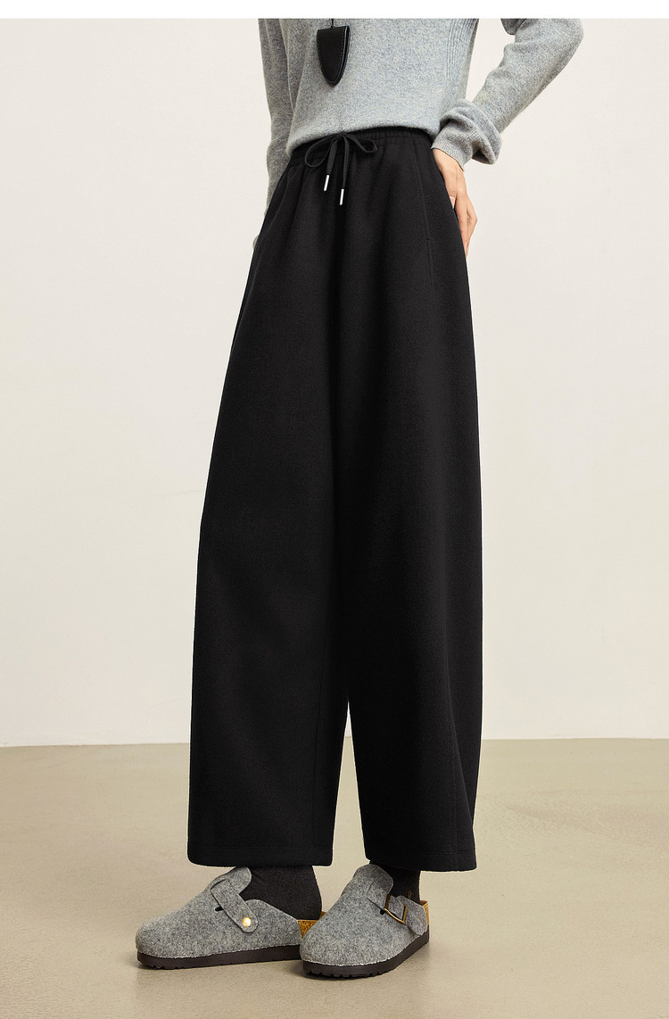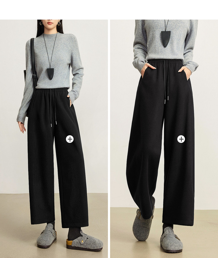 【1/21新品】熙世界黑色九分镰刀阔腿裤女秋冬季加厚休闲直筒卫裤高腰气球裤子