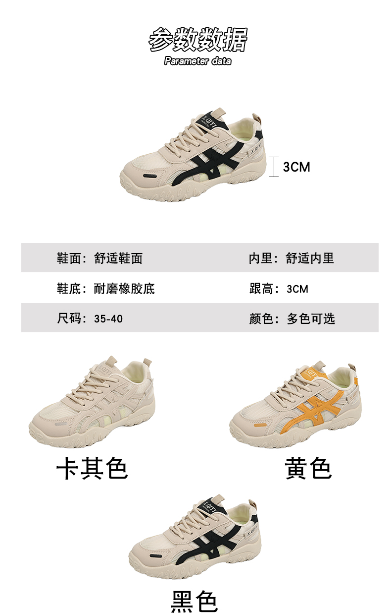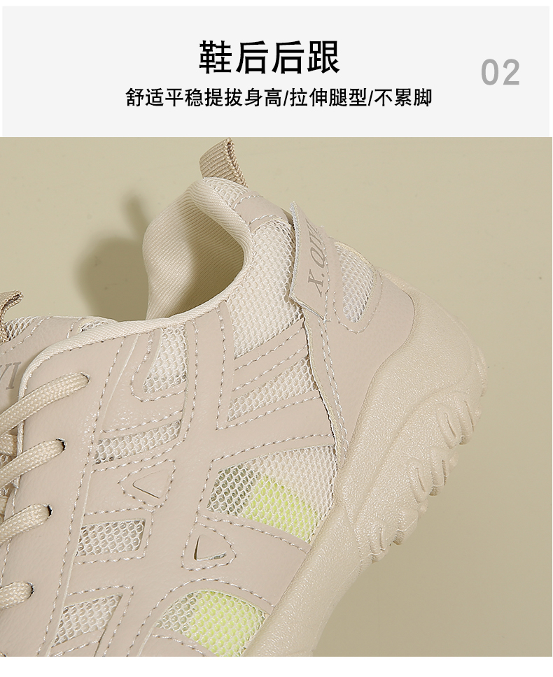 2个款式【轻梵 冰丝网面内增高老爹鞋】冰丝透气科技 双脚自由呼吸 创新冰丝网面材质 打造360循环透气系统 复刻经典老爹鞋廓形 复古拼色设计流畅线条 轻松驾驭潮流街头风格