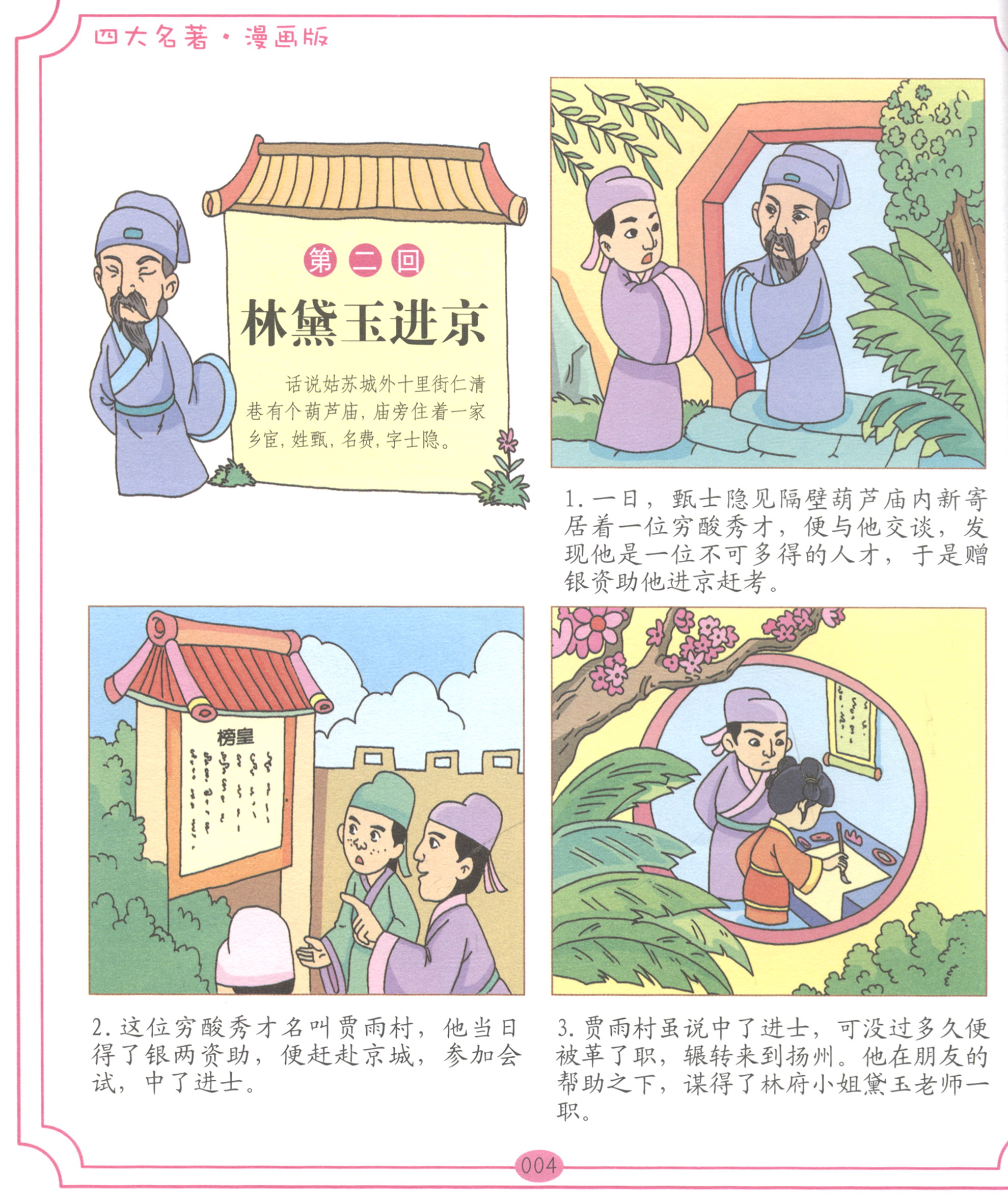 但是,传统的四大名著篇幅较长,很难引起小朋友们的阅读兴趣,于是我们以诙谐、幽默、搞笑的漫画形式对故事进行了精简改编,创作出形象直观、立体生动的人物形象,如:好吃懒做的猪八戒、聪明睿智的诸葛亮、豪气冲天的鲁智深、病如西子的美人林黛玉……