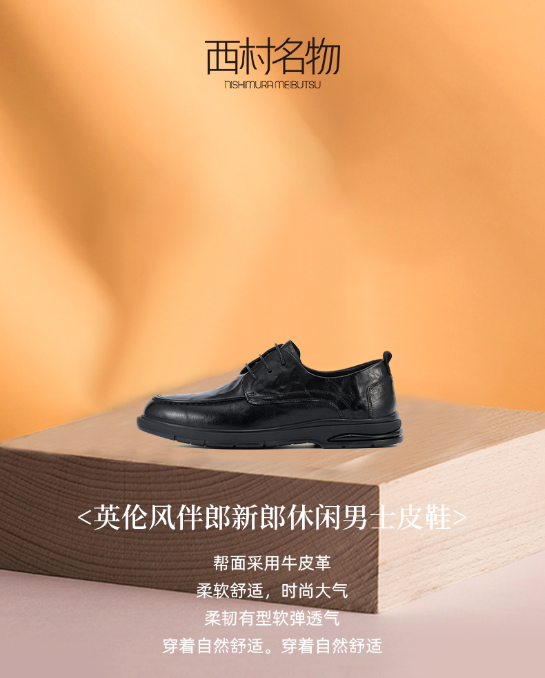 西村名物2024夏季新品亮面英伦风伴郎新郎休闲日常男士皮鞋真皮X15AW10818