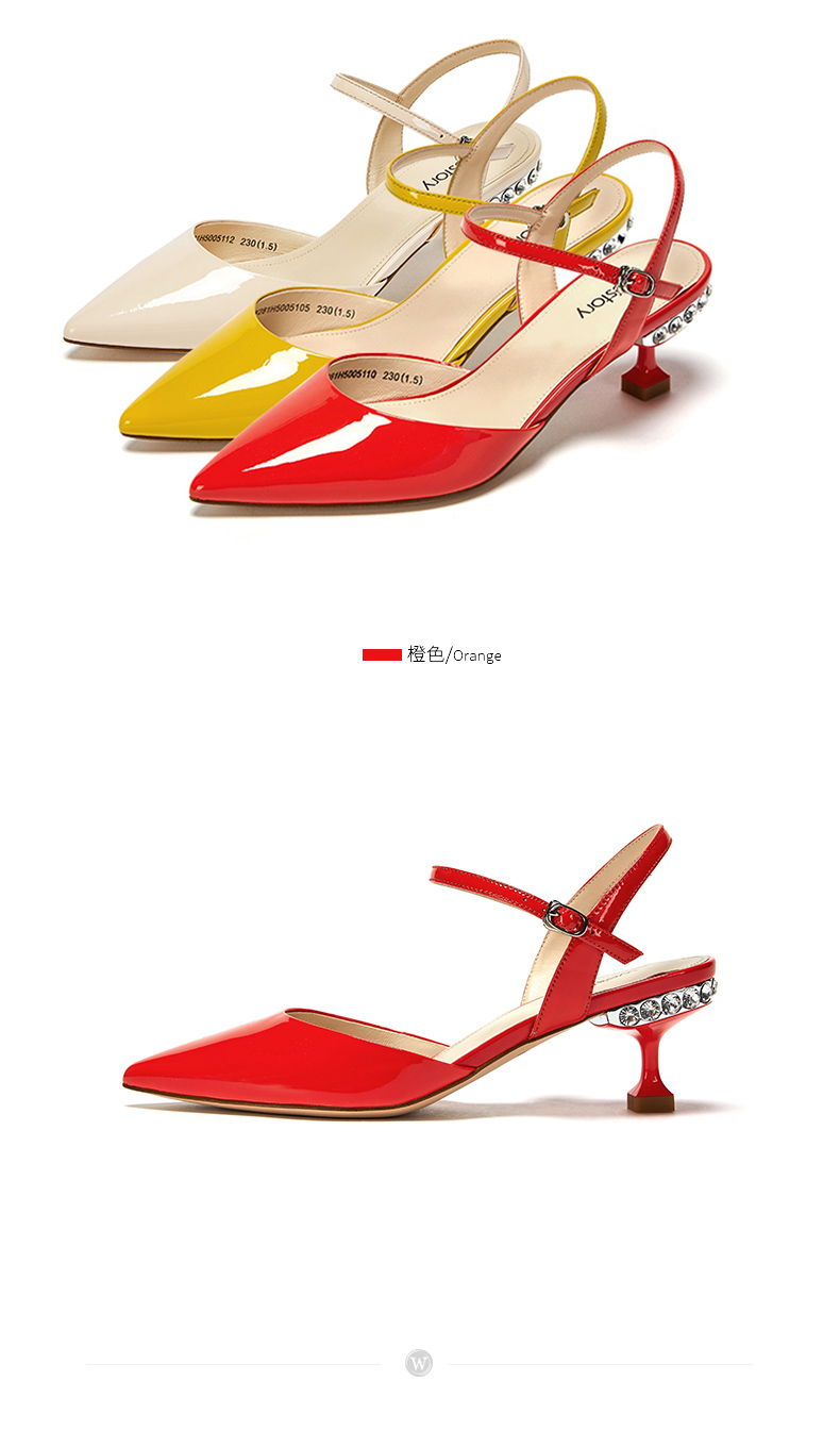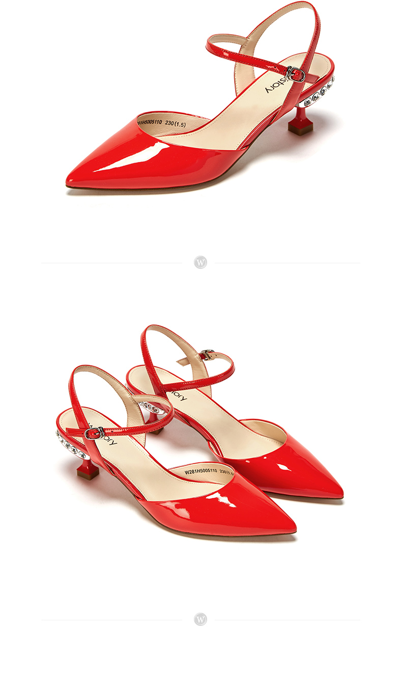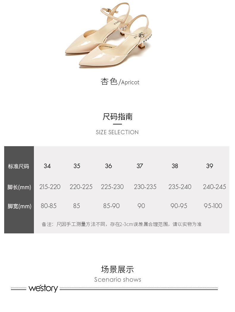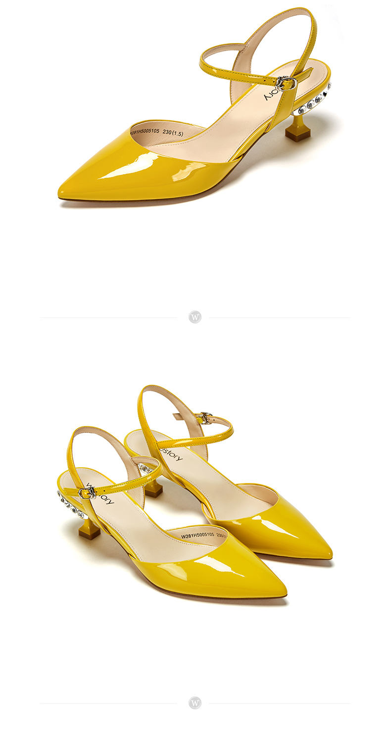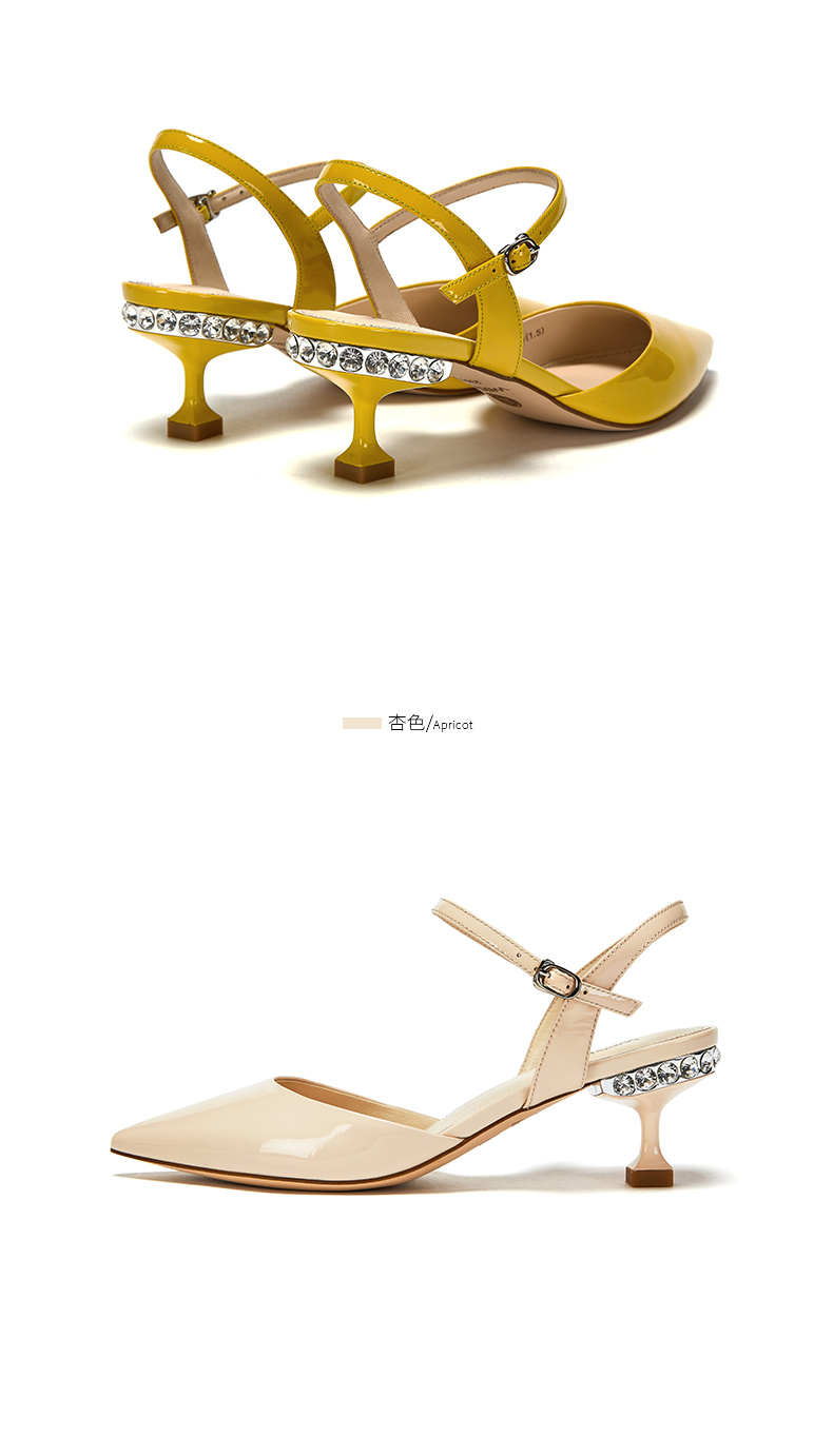westory23年春新款时尚尖头方形水钻扣高跟鞋细跟女气质名媛55381