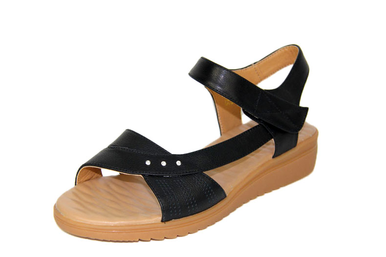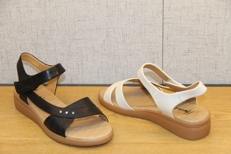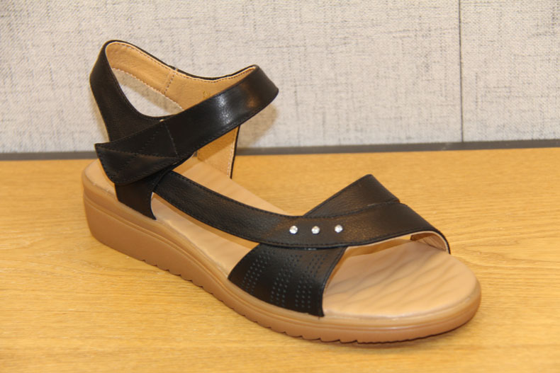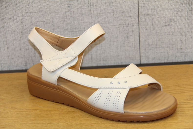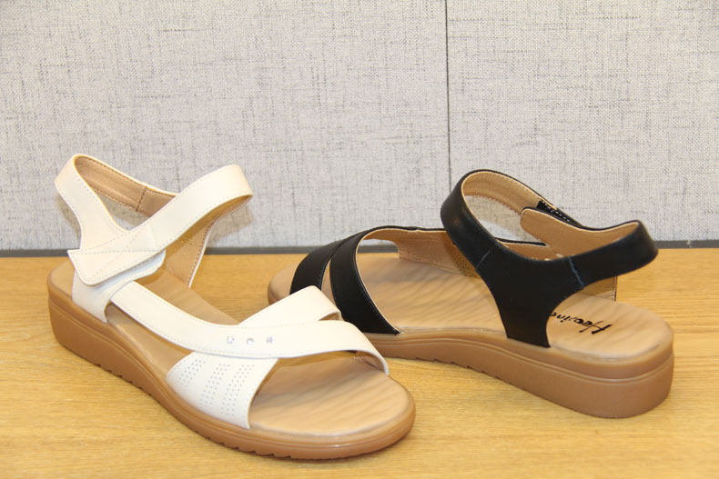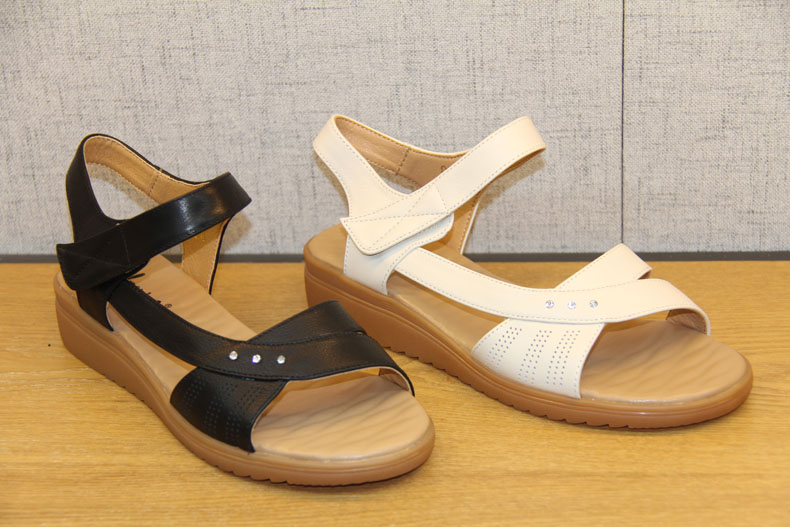 豪行女鞋夏新款21258032百搭坡跟一字带中跟皮凉鞋舒适软底妈妈鞋 专柜正品