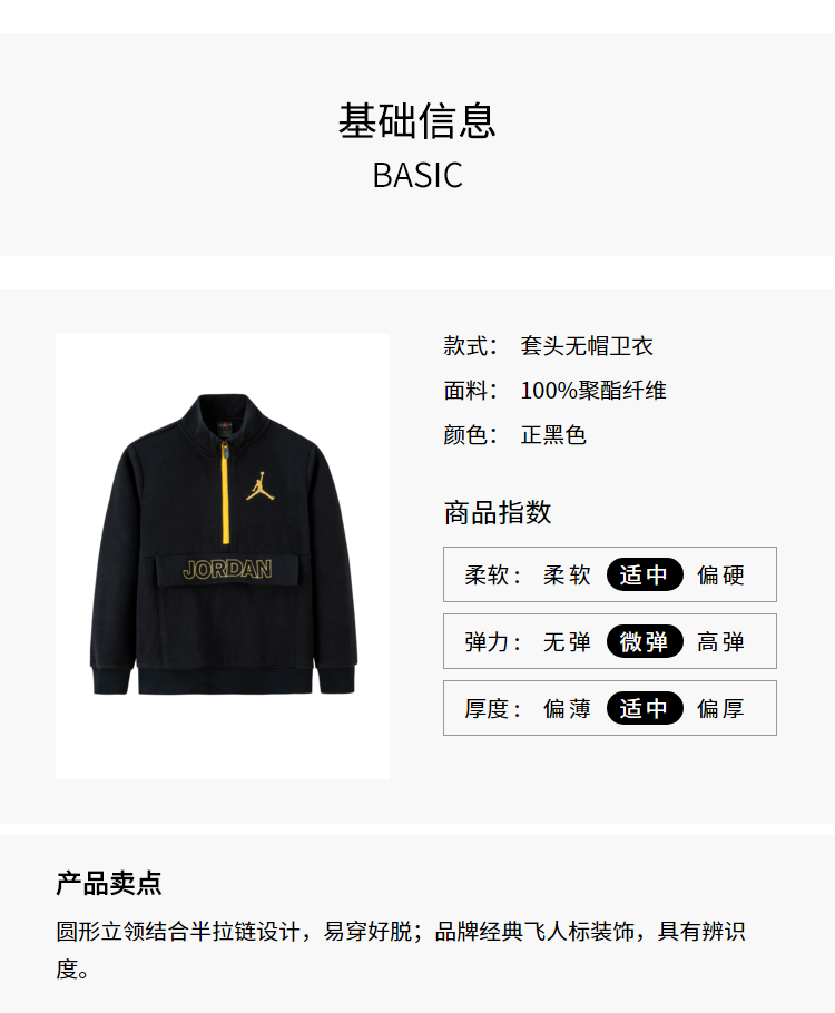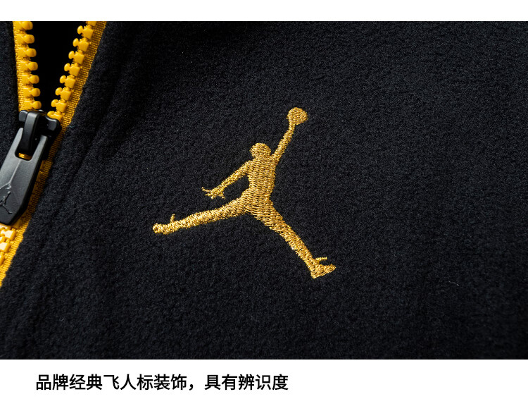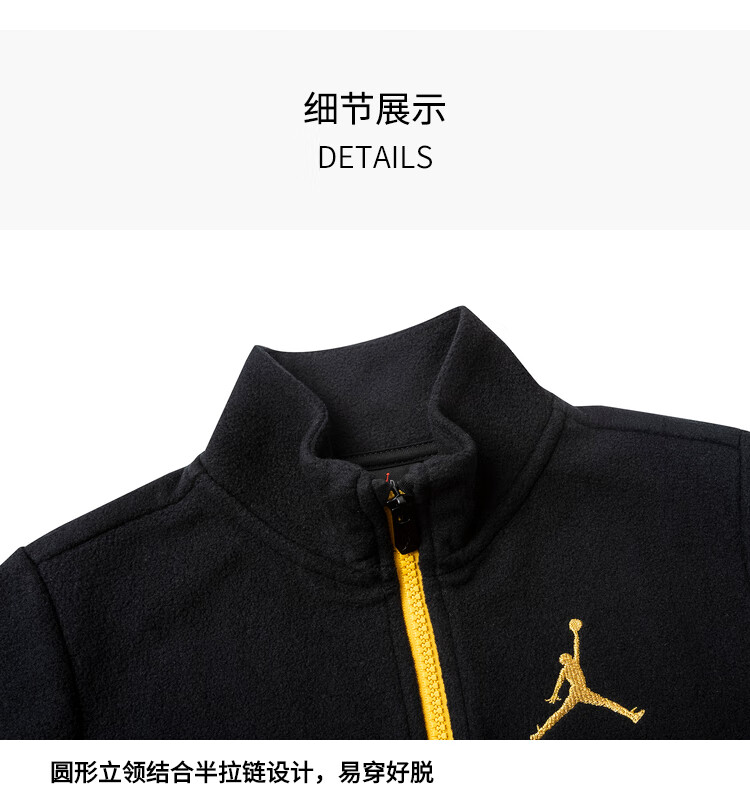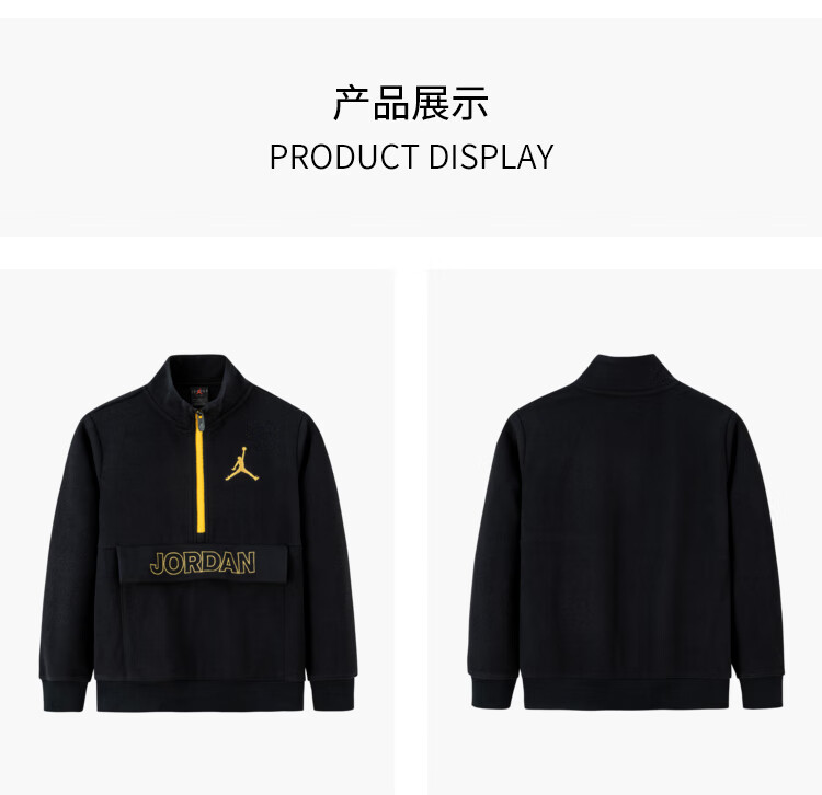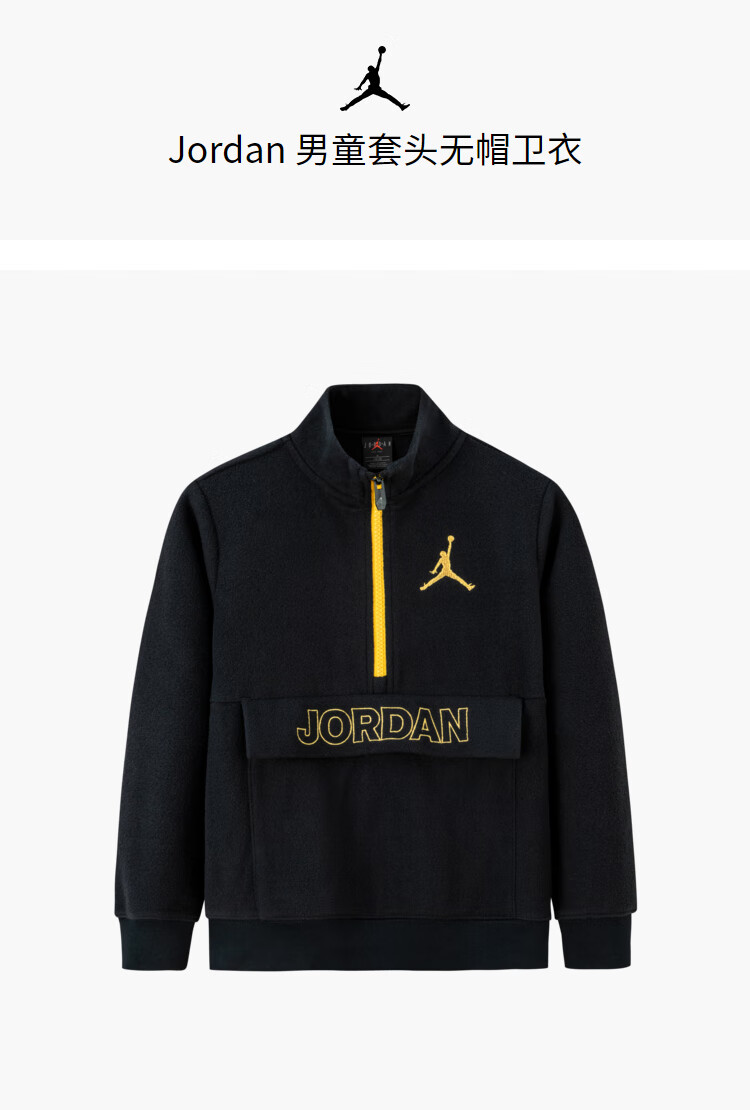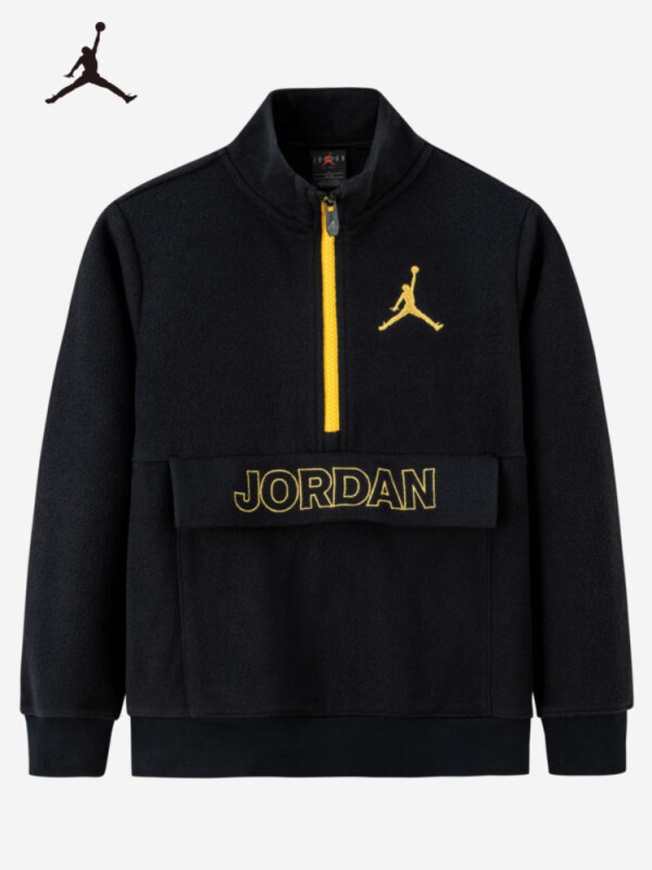 JORDAN童装冬新款男童AJ半拉链套头加绒金标卫衣外套JD2242048