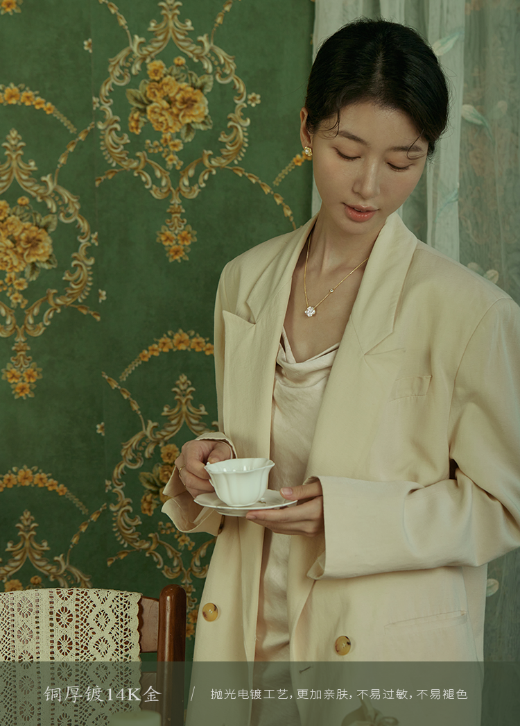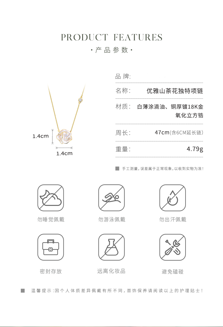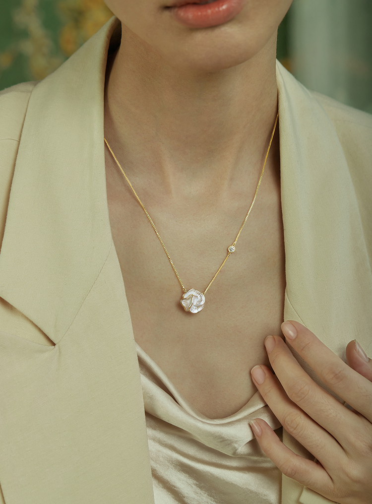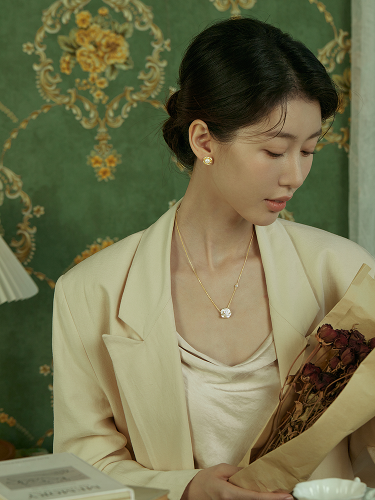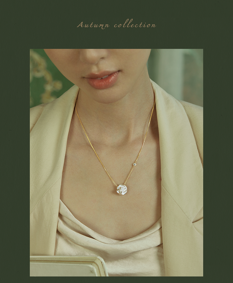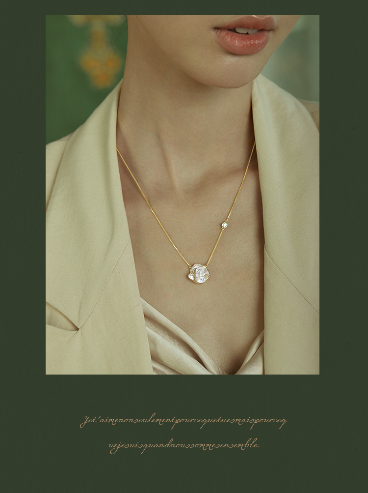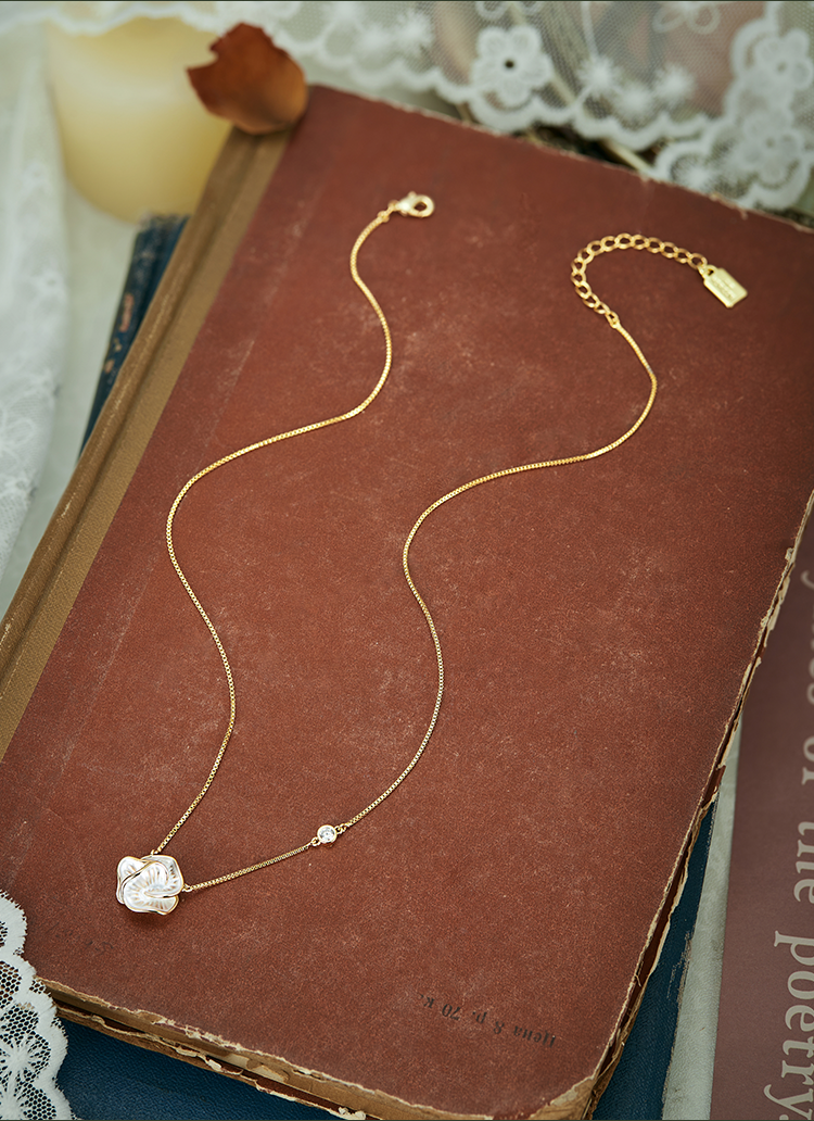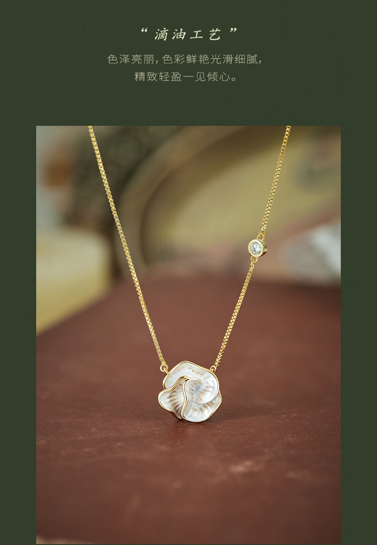 Oflye潮流饰品 简约山茶花复古滴油项链新款独特锆石轻奢高级感气质独特项链