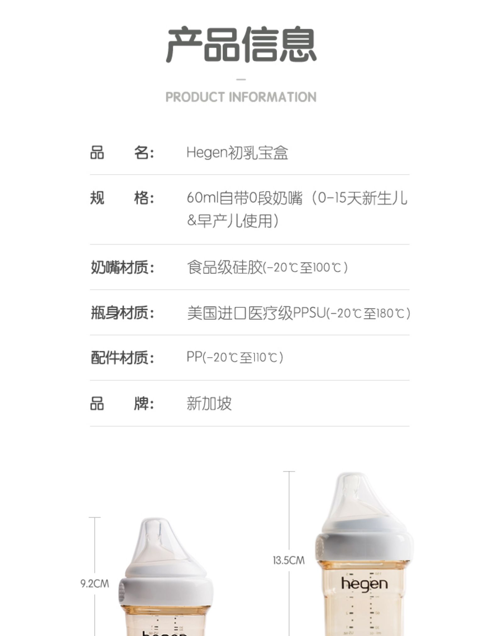 初乳宝盒60ml | 新加坡 Hegen 婴儿多功能PPSU奶瓶初乳宝盒宽口新生儿小奶瓶 60ml