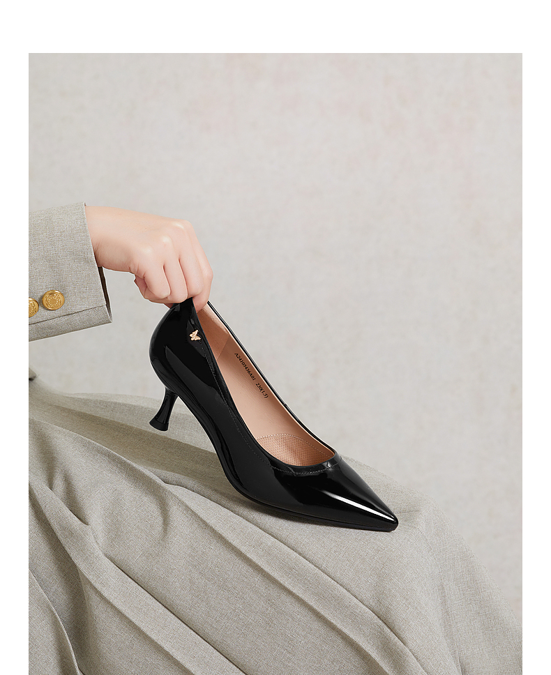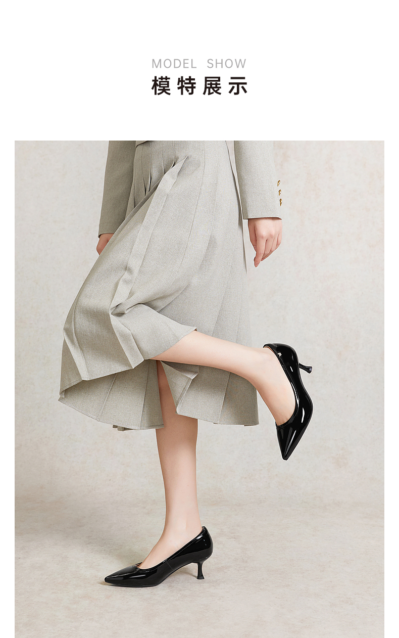 【静音系列】千百度细高跟鞋女春季法式单鞋通勤正装真皮A24105436