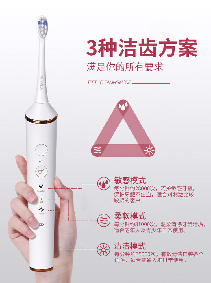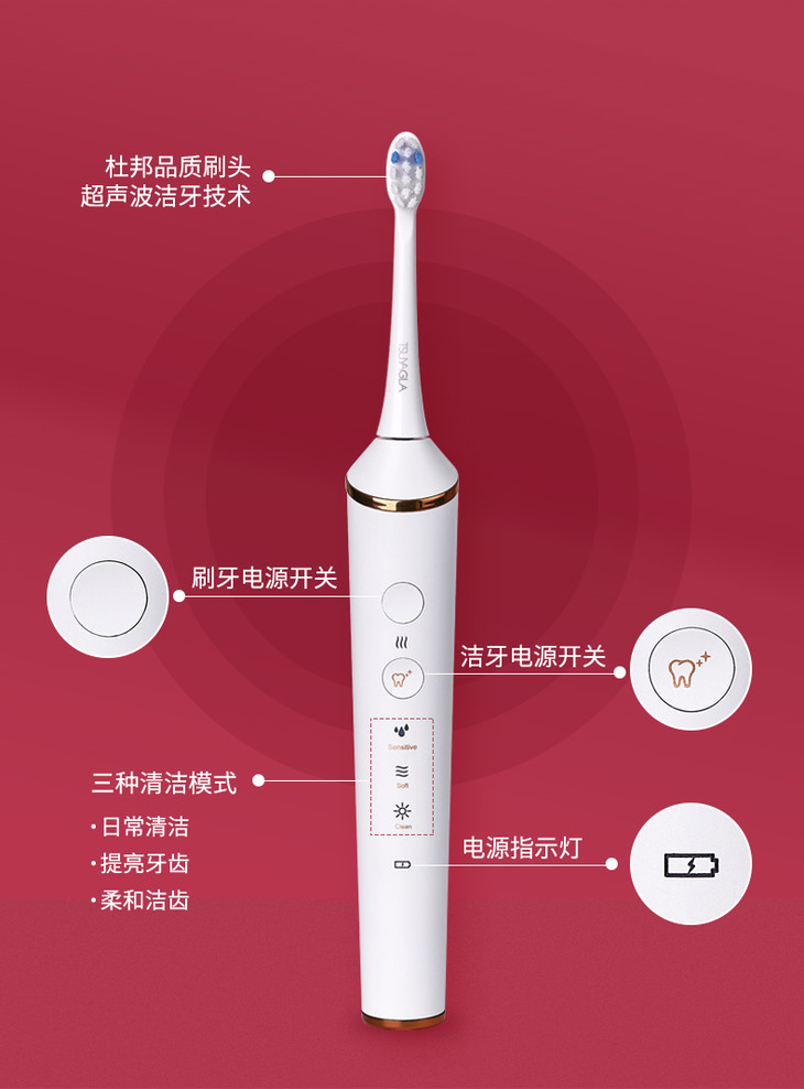 【会员专享】升级版带刷头-崔娅超声波电动牙刷牙结石去除器自动洁牙仪牙垢牙石清洁美牙神器