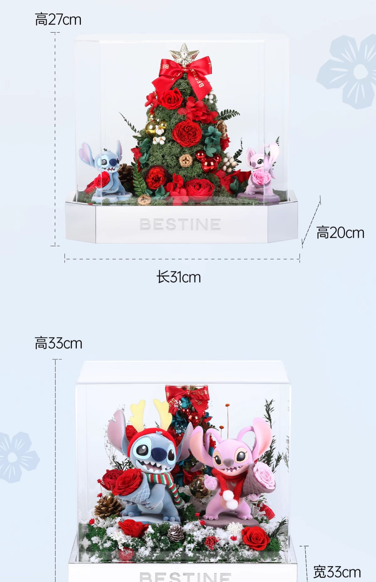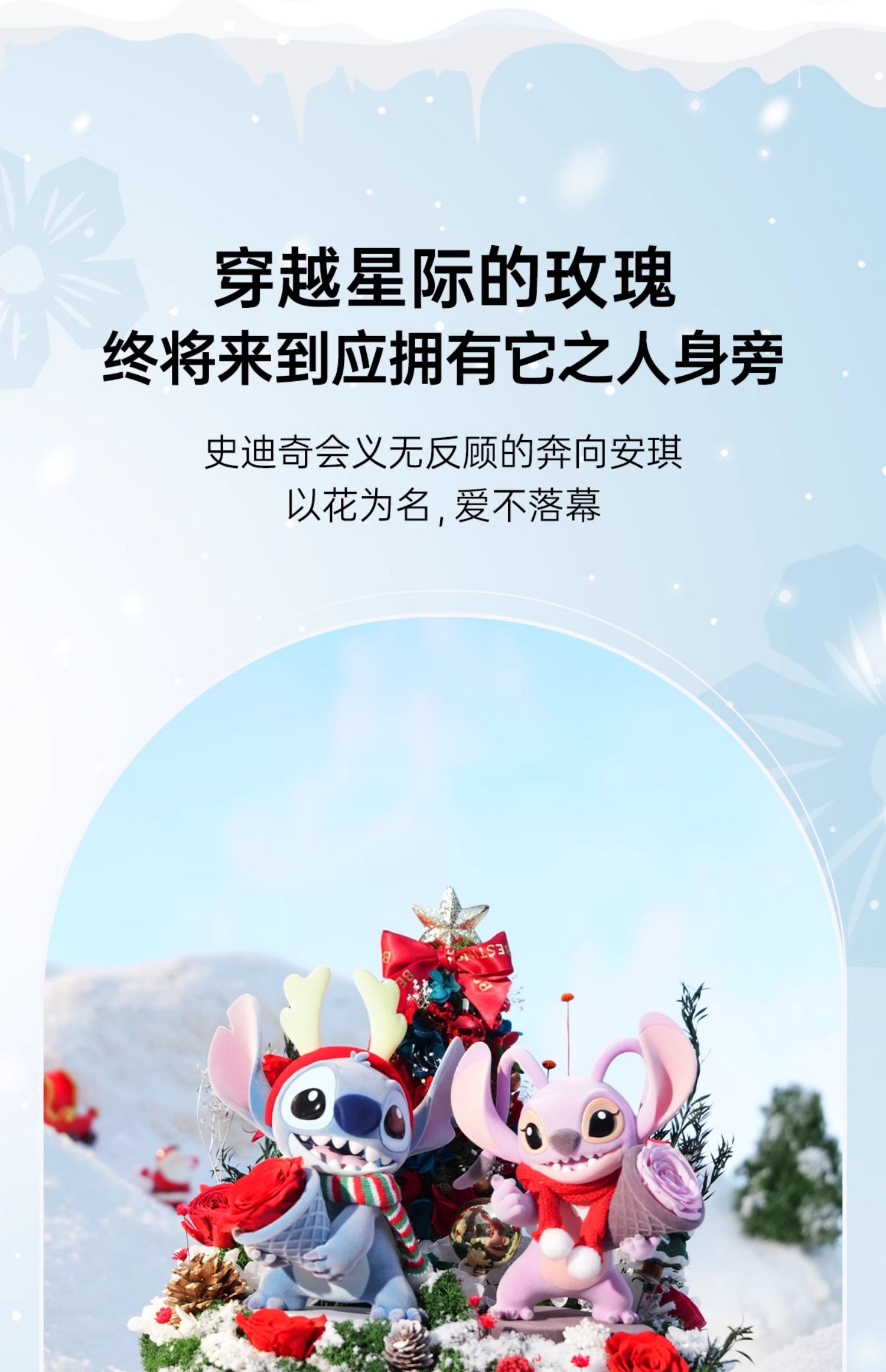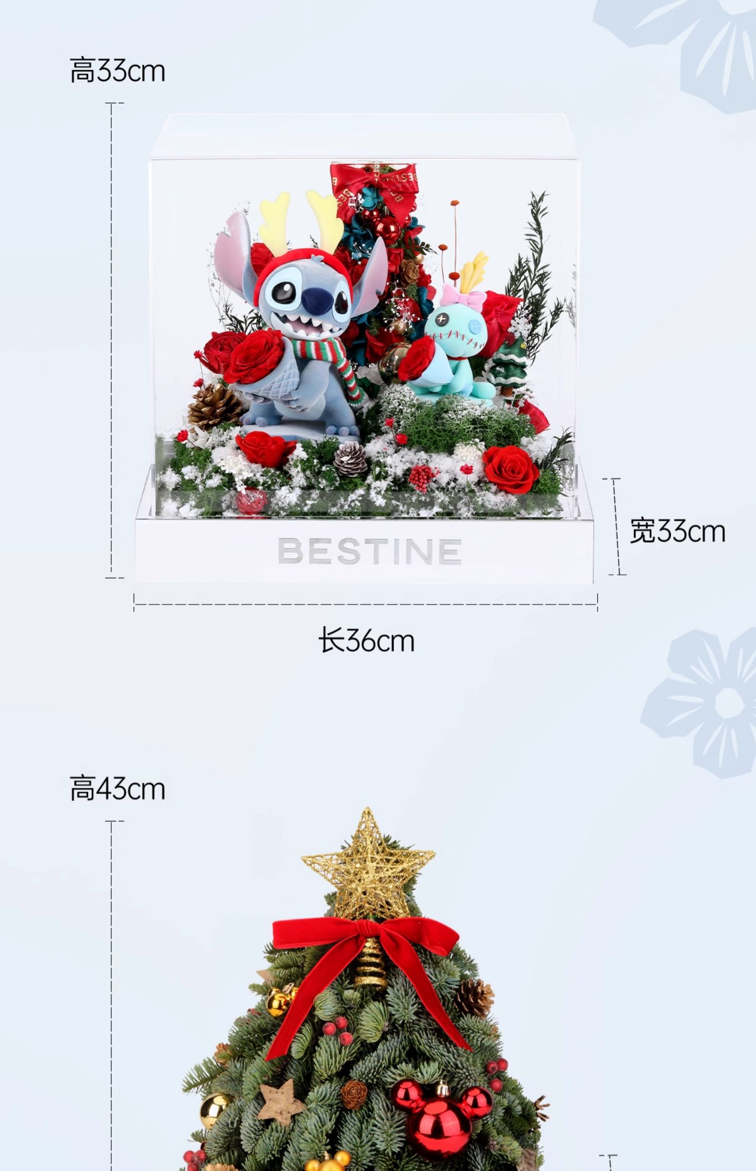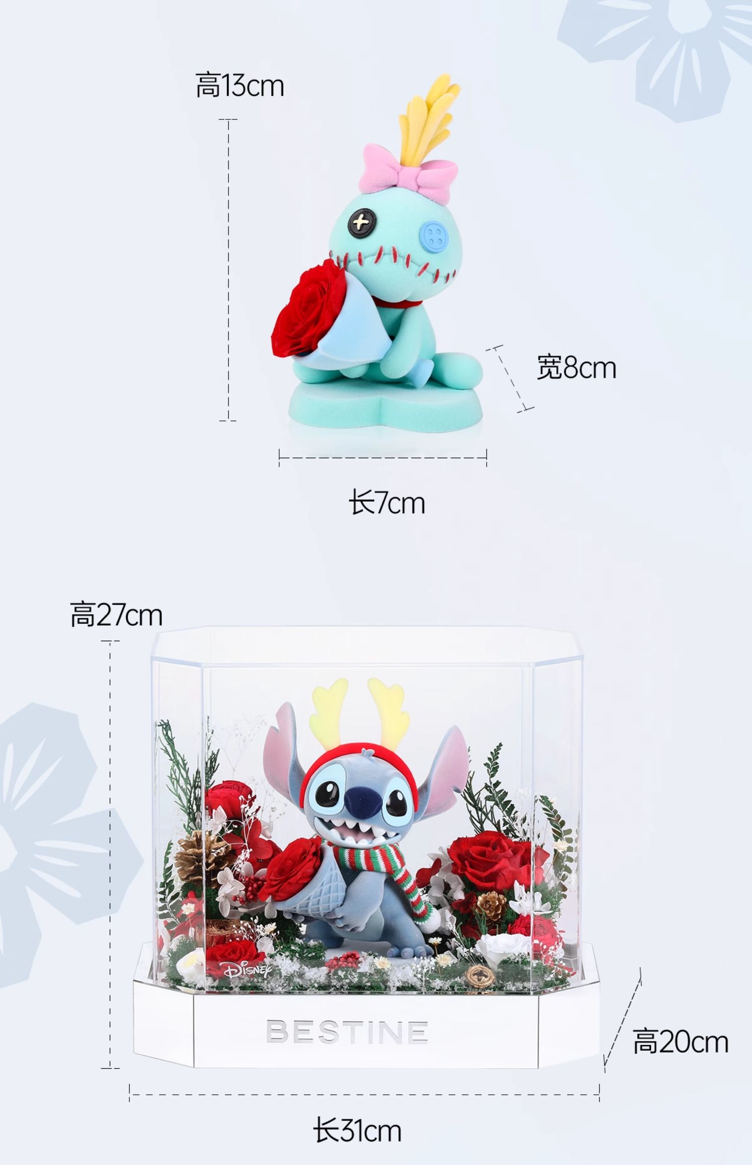 VBEINGS花语 圣诞礼物迪士尼史迪仔永生花史迪奇玫瑰花摆件花束生日礼物
